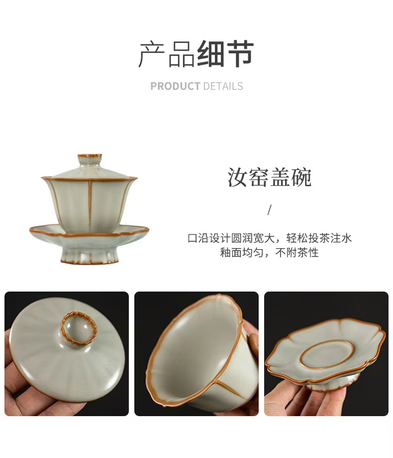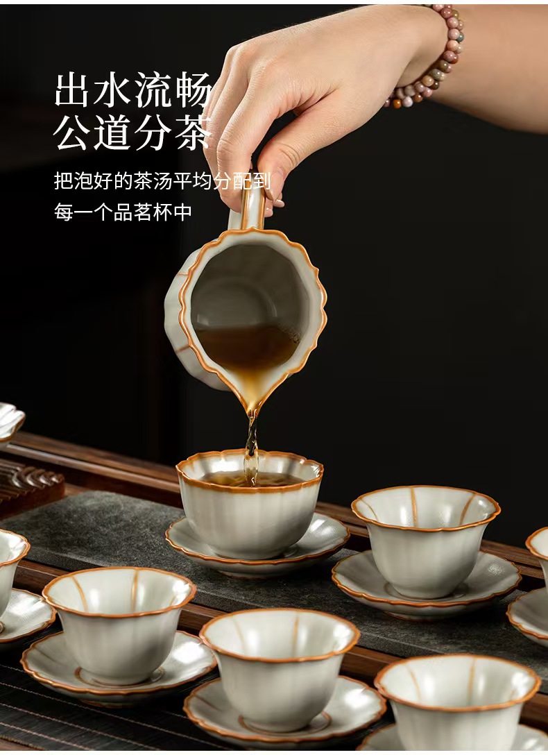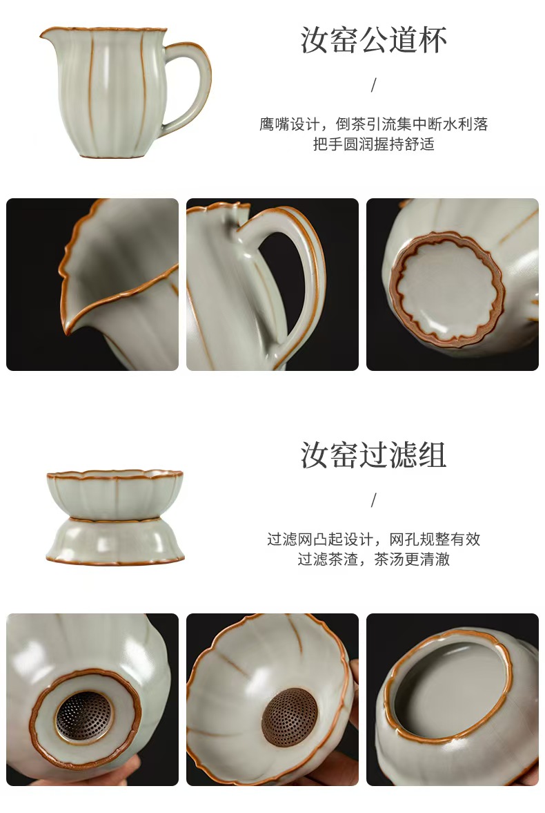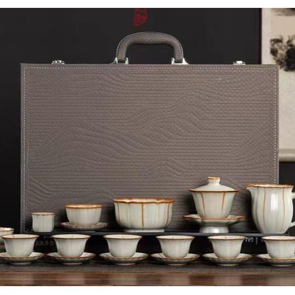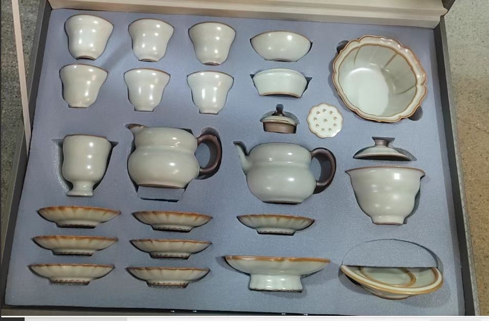 鹏翼22头亚黄汝瓷茶具