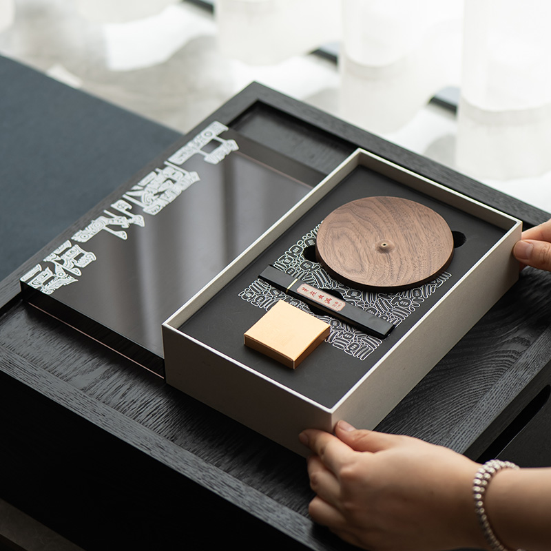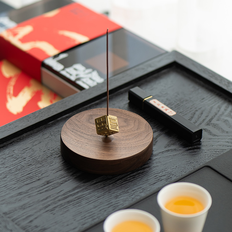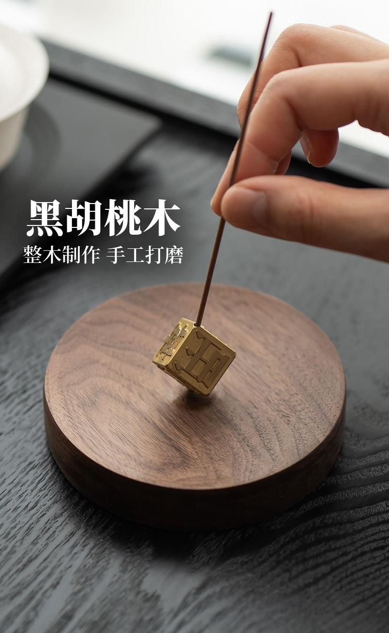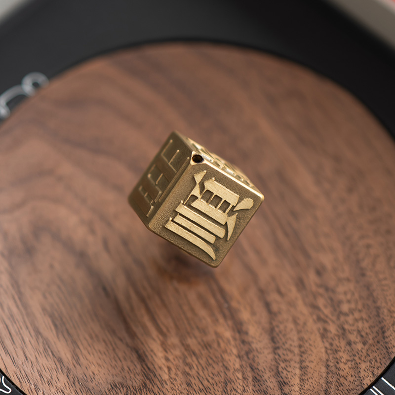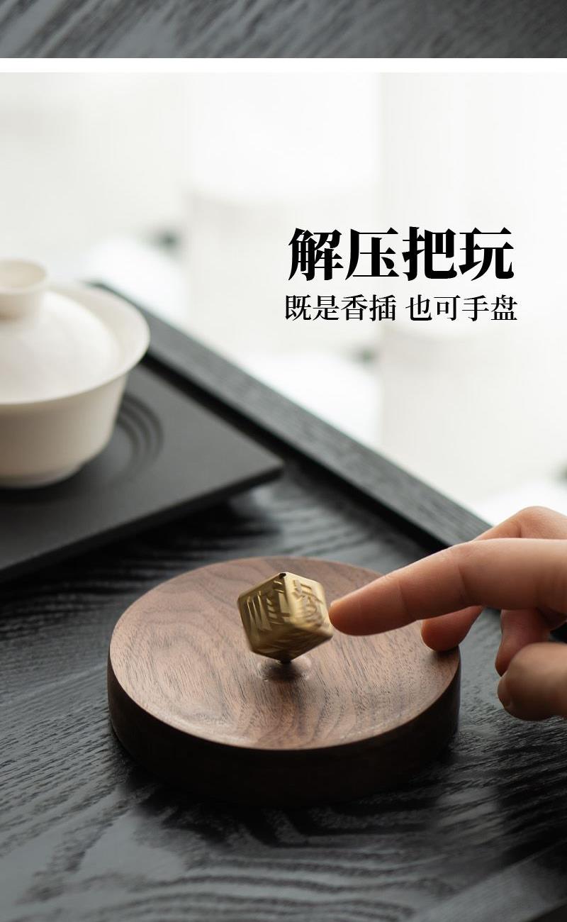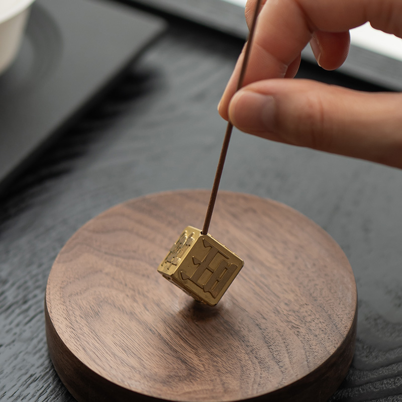 1:黄铜立方体,手工打磨制作,六面文字(旺顺发欢喜旺)祈福。 2:黑胡桃底座,精美流线设计,同香插浑然一体。 3:字立方既为香插也为把玩物件,既可组合也可单用 配置:黄铜香插*1 黑胡桃木底座*1 沉香线香*1 材质:黄铜 黑胡桃实木