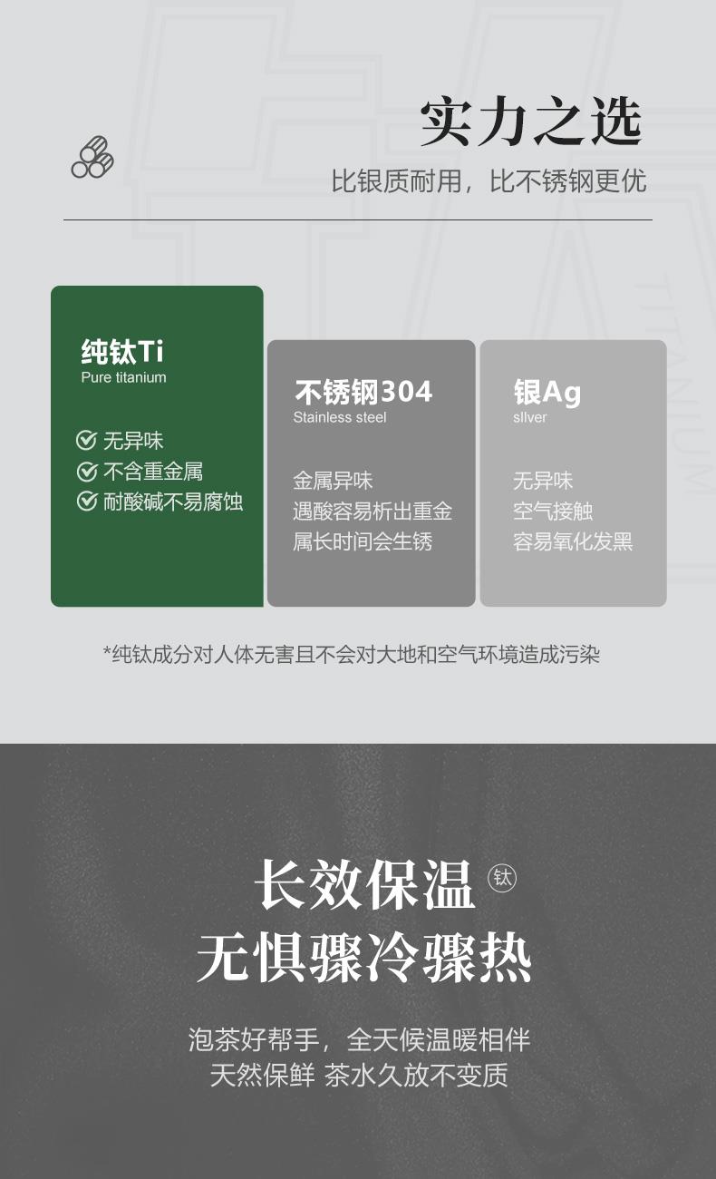 材 质:纯钛 规 格:205mm 容 量:480ml 装 箱 数:20pcs/箱 包装尺寸:110*260*85mm
