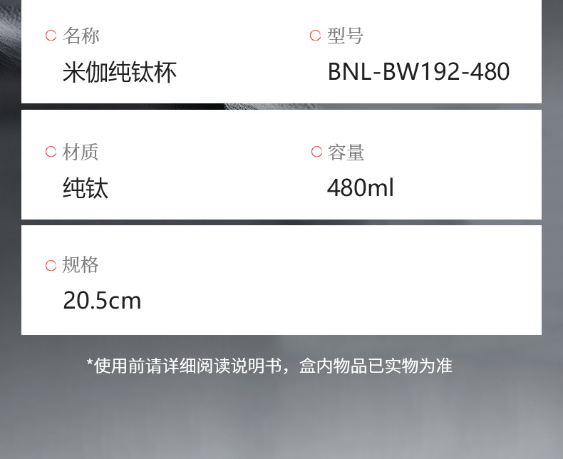 巴米樂米伽纯钛杯BNL-BW192-480