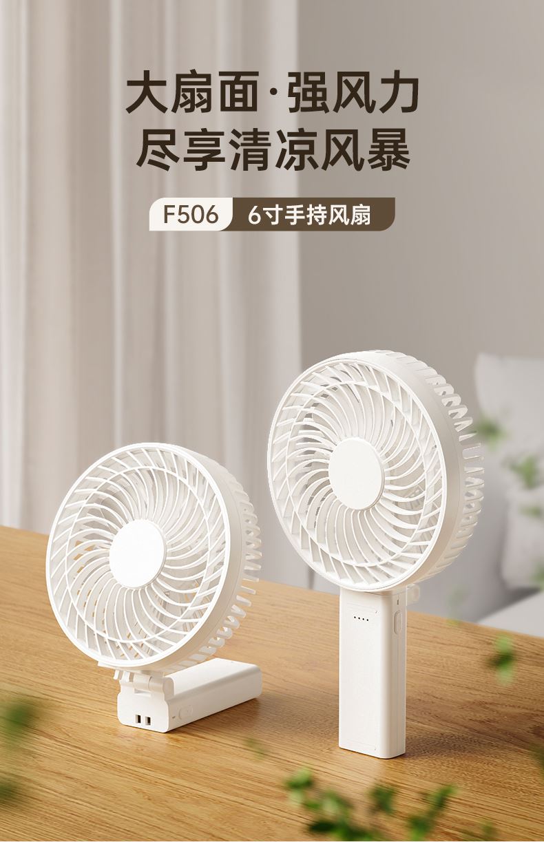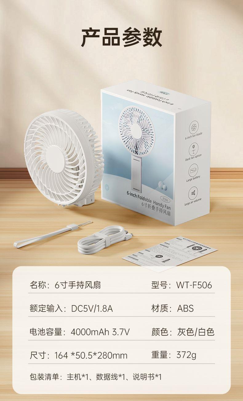 右心新款F506大扇面手持风扇可折叠桌面风扇6寸定制LOGO
