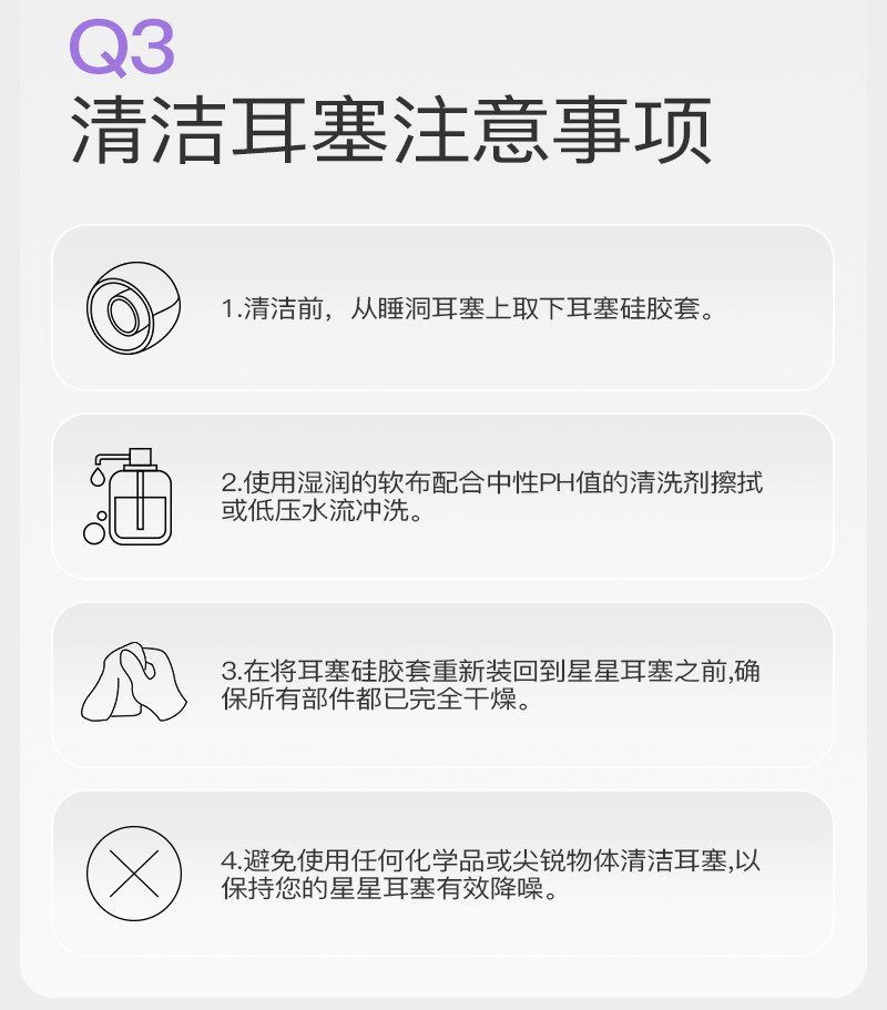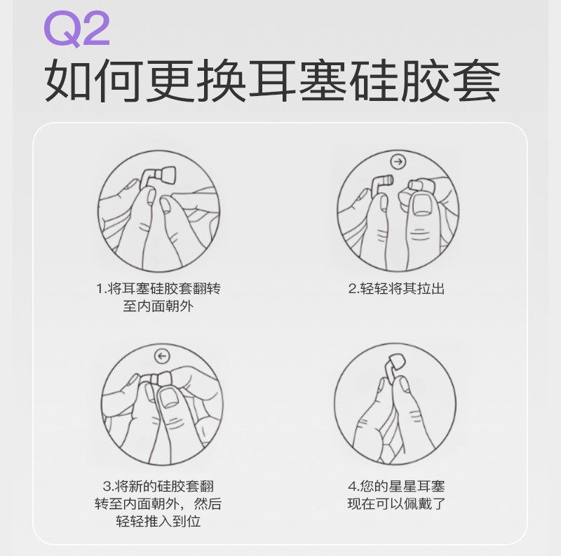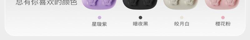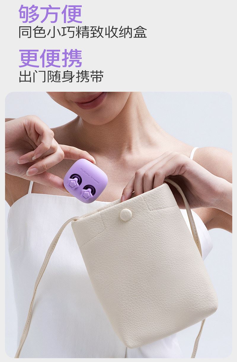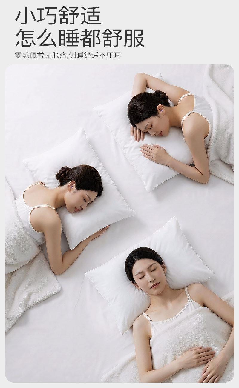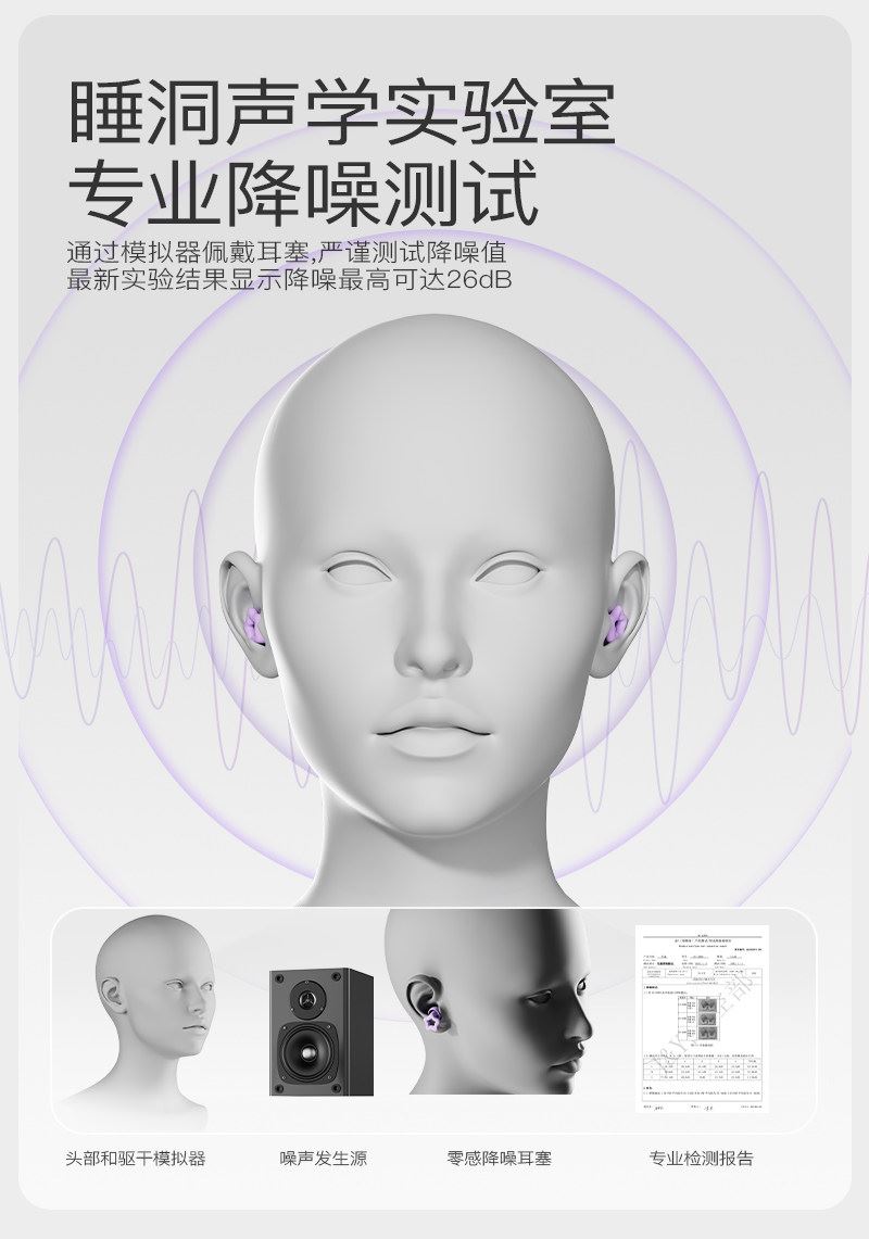 可选颜色: 星璇紫、暗夜黑、皎月白、樱花粉 功能特点: 无感佩戴,无惧侧躺,亲肤硅胶,柔软0压感 360°全场景降噪,消除噪音,自适应识别场景隔绝噪音 支持水洗,洁净如初 轻量化设计,兼顾舒适轻巧与降噪的平衡 单只耳塞轻至0.9g,轻盈无负担 隔绝各类嘈杂声音,大降噪26dB 久戴不涨耳,深睡到天亮 人体工学设计,零感佩戴,柔软贴耳不易脱落 同色小巧精致收纳盒,出门随身携带