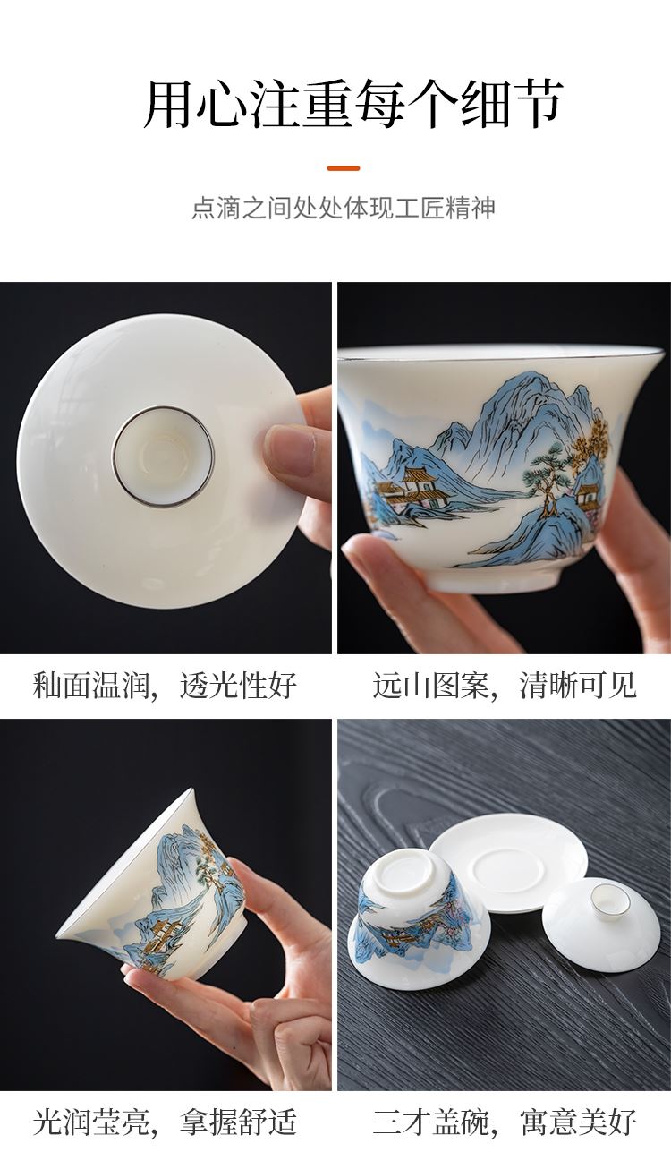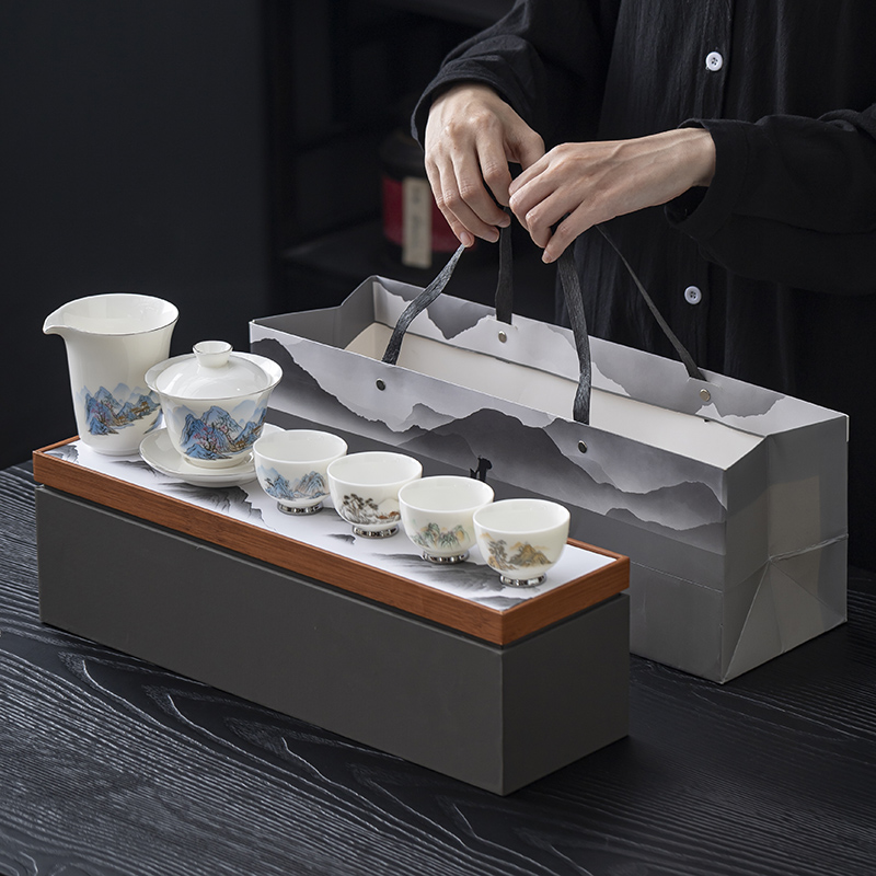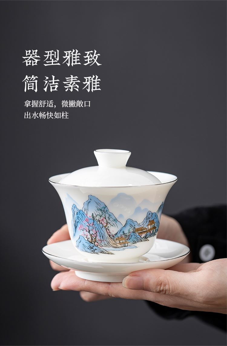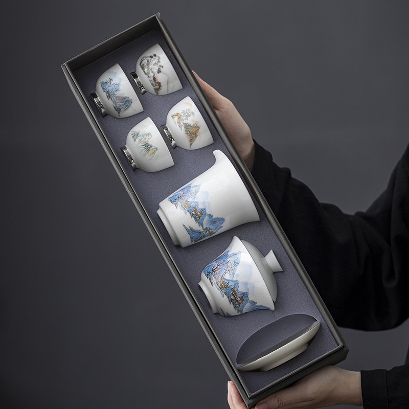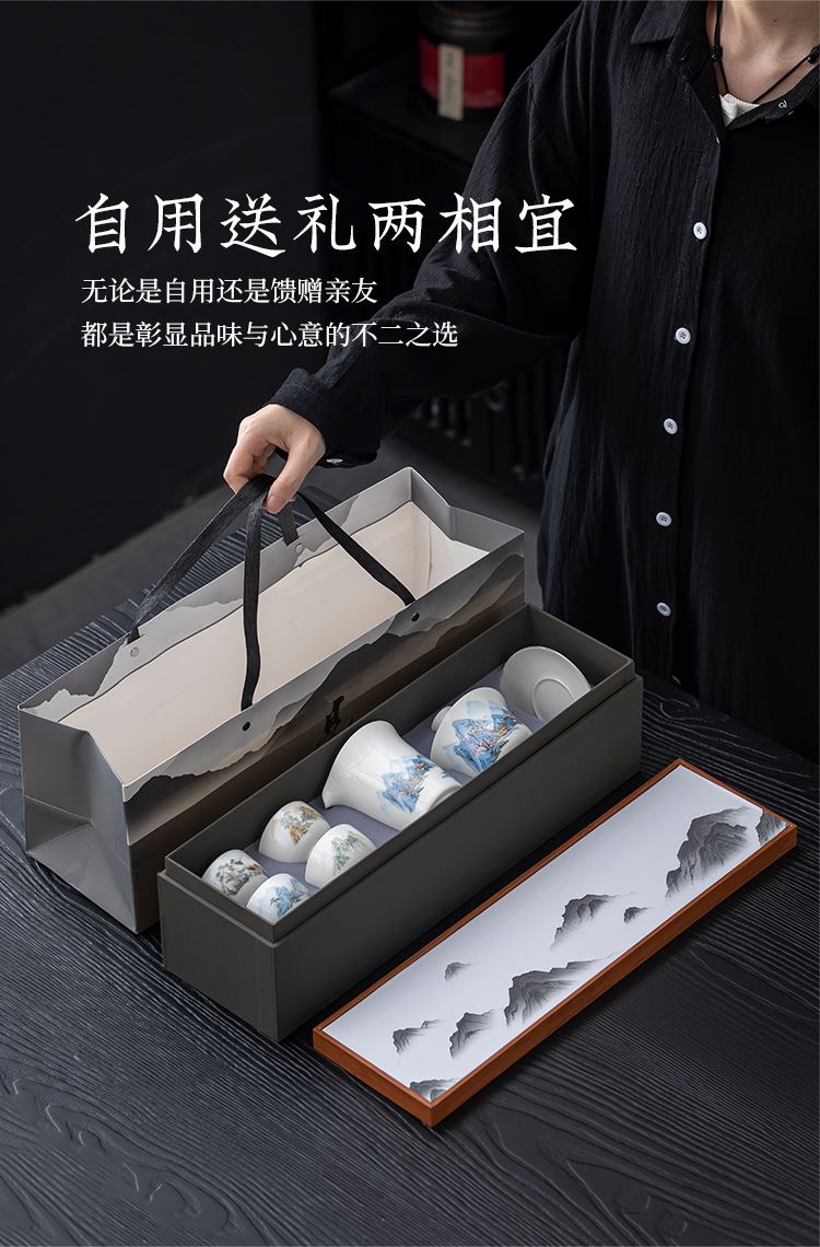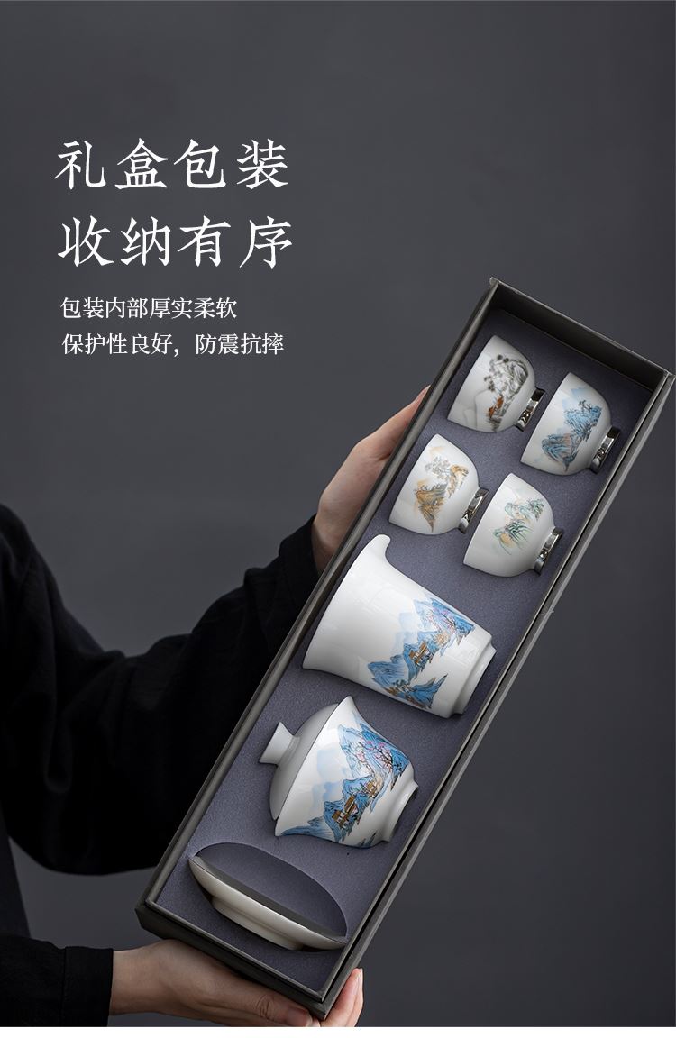云博陶瓷羊脂玉千里江山四季平安茶具中国风山水画旅行茶具伴手礼