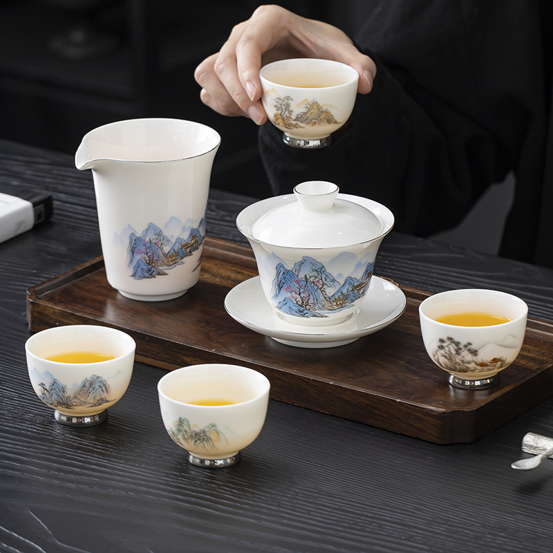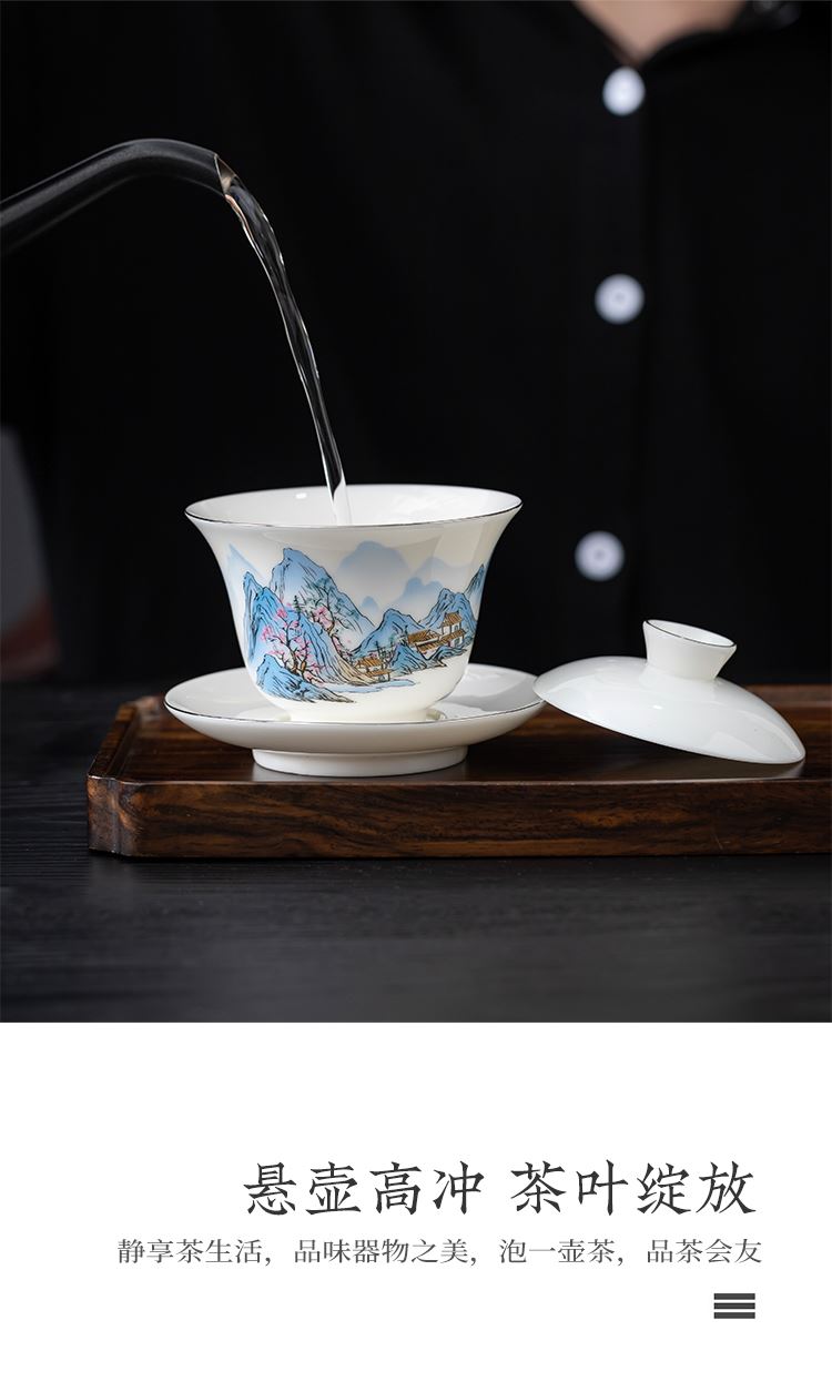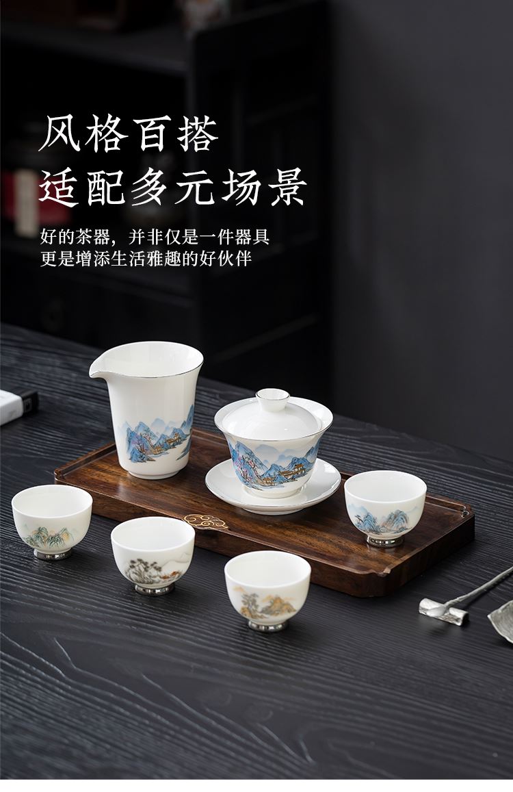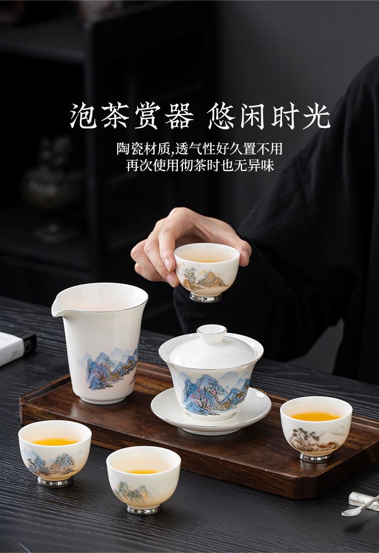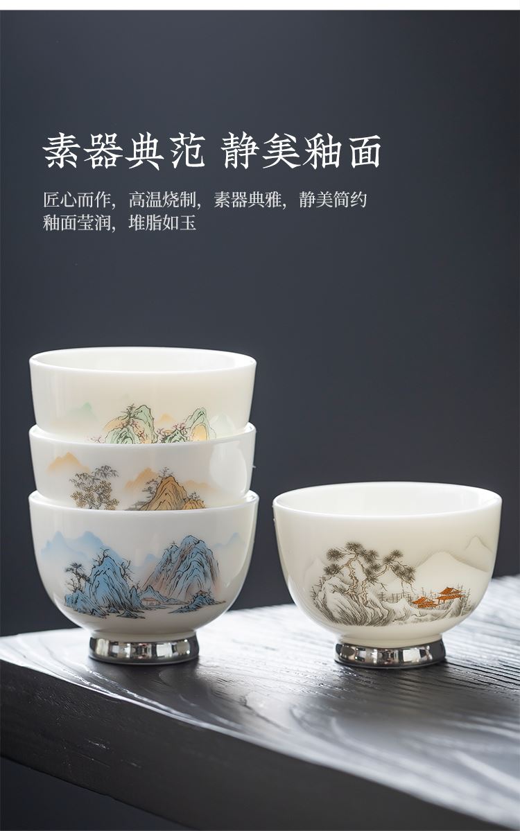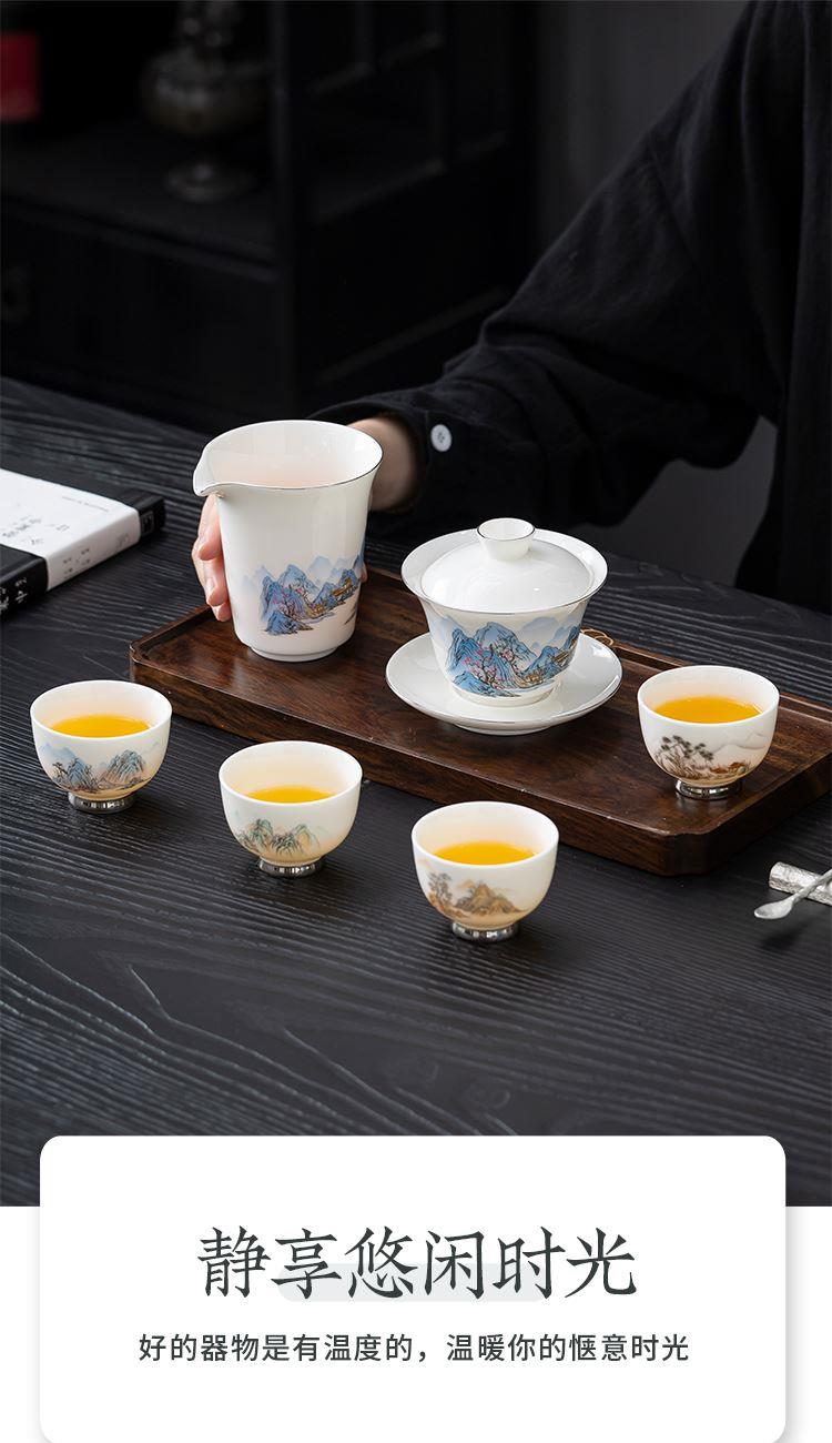 云博陶瓷羊脂玉千里江山四季平安茶具中国风山水画旅行茶具伴手礼