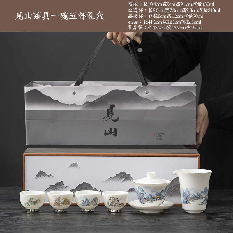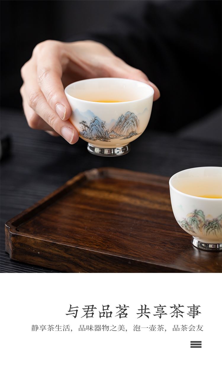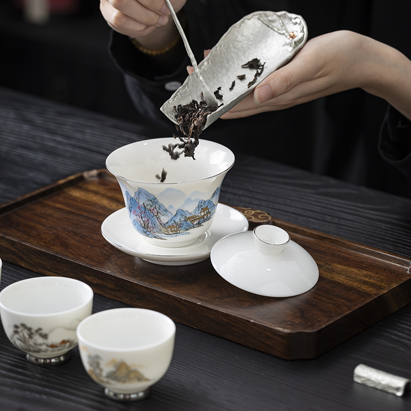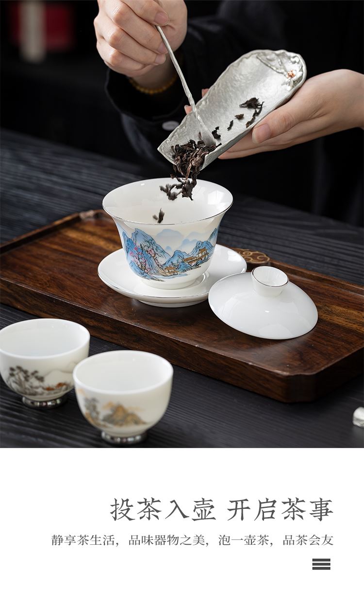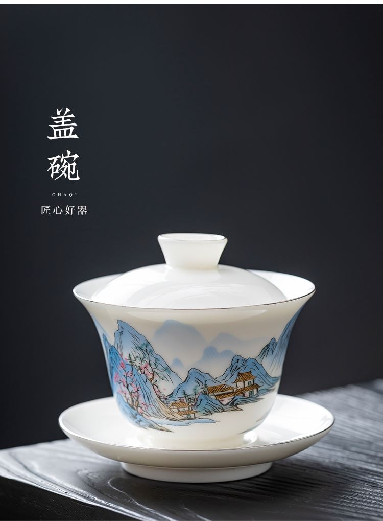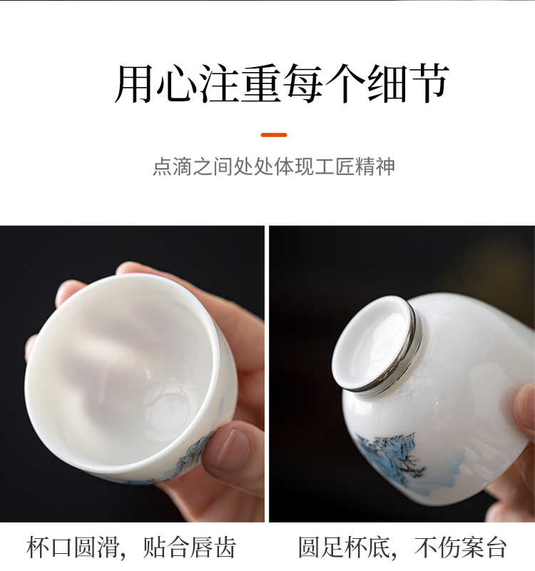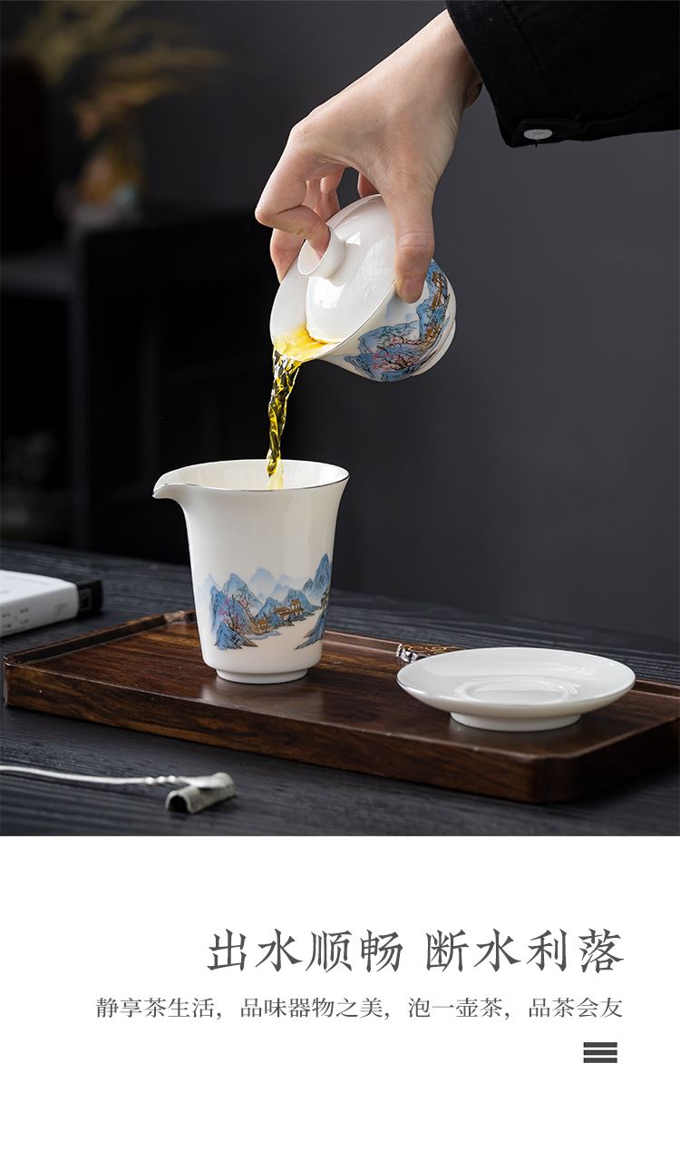 云博陶瓷羊脂玉千里江山四季平安茶具中国风山水画旅行茶具伴手礼