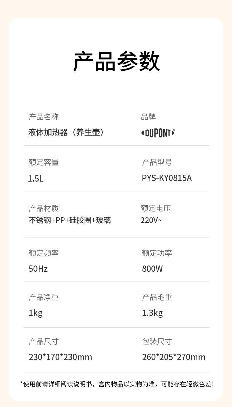 杜邦液体加热器(养生壶)PYS-KY0815A