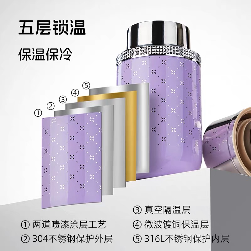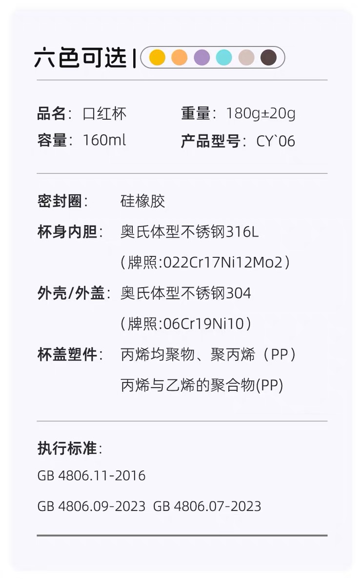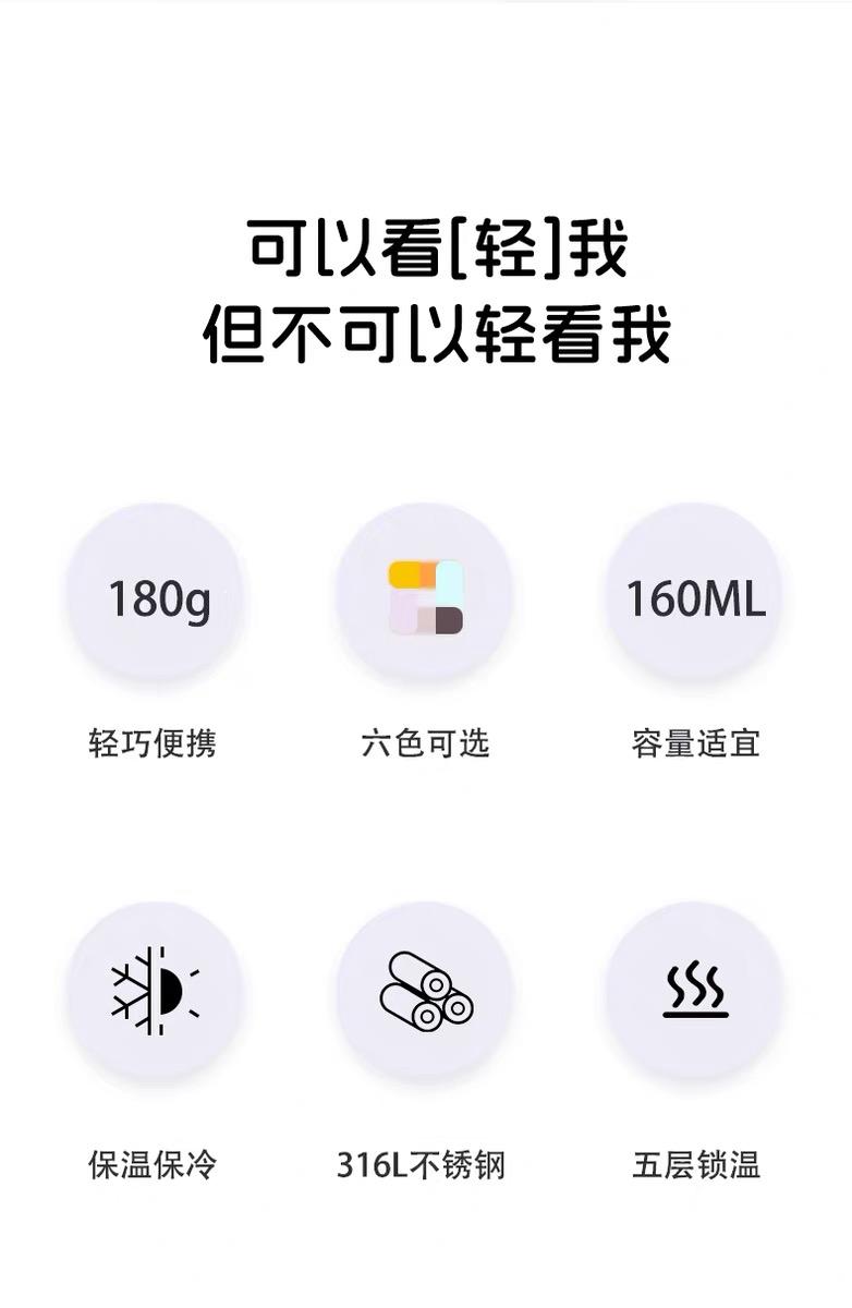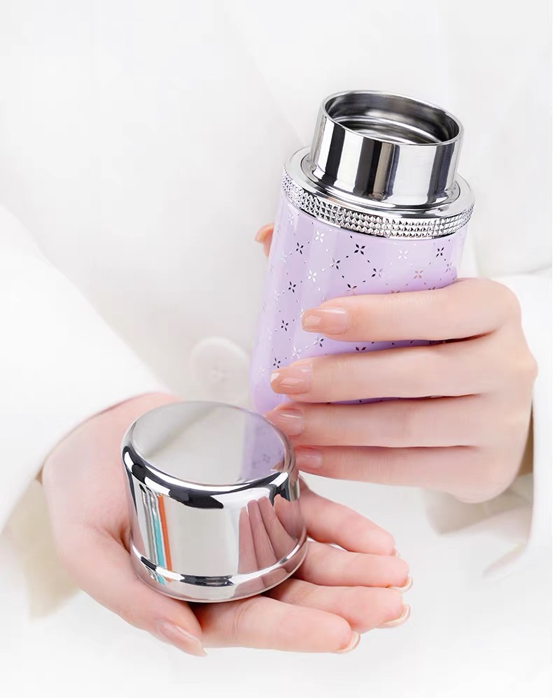 女神zui爱! 时尚口红造型,巴黎钉装饰圈, 内置口红境:内置不锈钢镜,口红随shi补 六色可选,随心搭配 容量160mL,轻量小体积, 轻巧便携, 316L不锈钢内胆,耐腐蚀更耐用, 五层锁温,保温保冷, 防滑硅胶垫, 精美彩盒包装,送人自用皆宜。