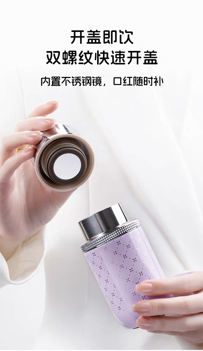 尚明便携保温杯内置口红境新款高颜值口红杯
