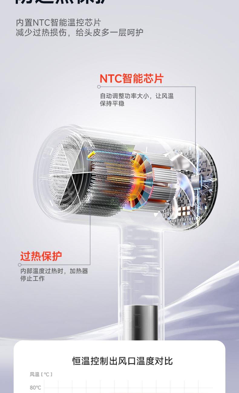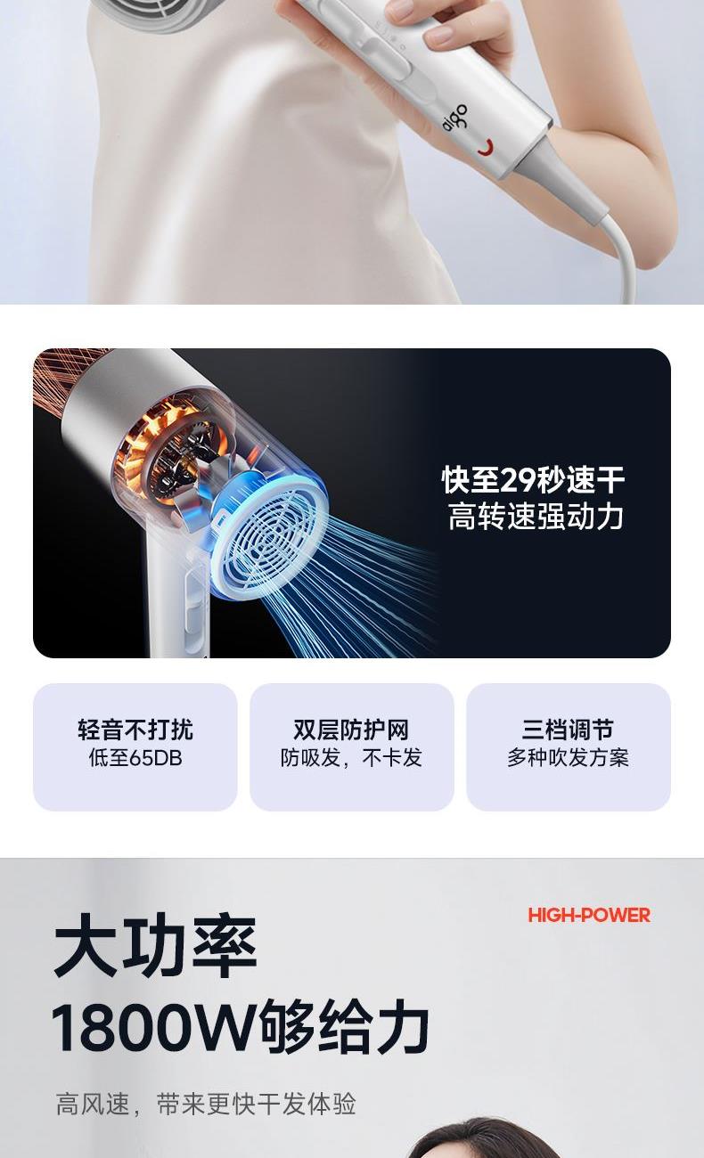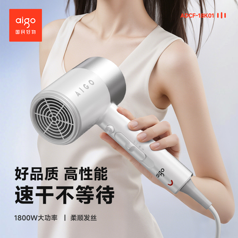 1800W大功率,有快速干发功能 独特的健康护发功能,防止头发过干而受损 柔和暖风,适合吹干头发或定型 本电吹风附赠风嘴,便于准 确定型 2档2温设计,贴合更多使用场景 带独立冷风按钮,一键切换 功率:1800W 包装尺寸:135*80*260mm 包装方式:彩邮外
