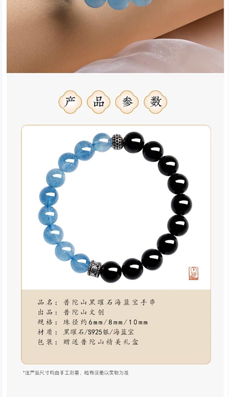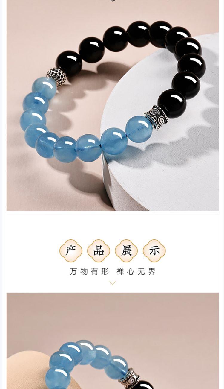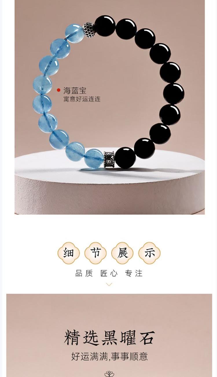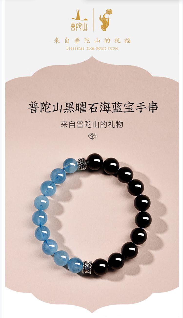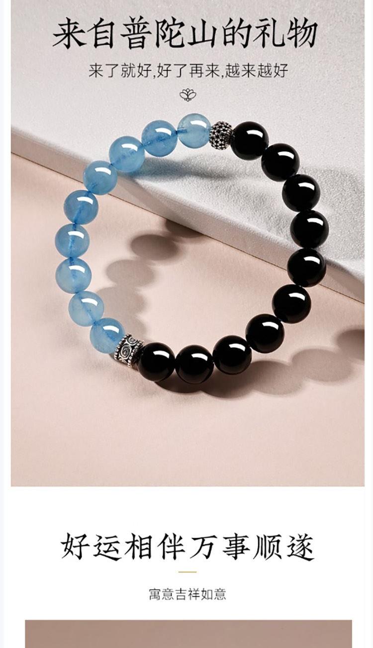 普陀山海蓝宝黑曜石拼接手串8mm