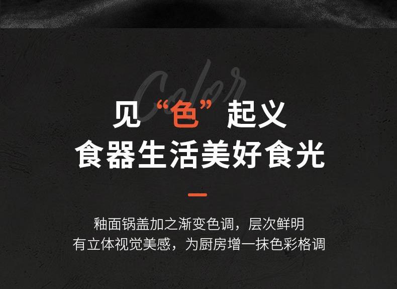 5、釉面锅盖加之渐变色调,层次鲜明有立体视觉美感,为厨房增一抹色彩格调。