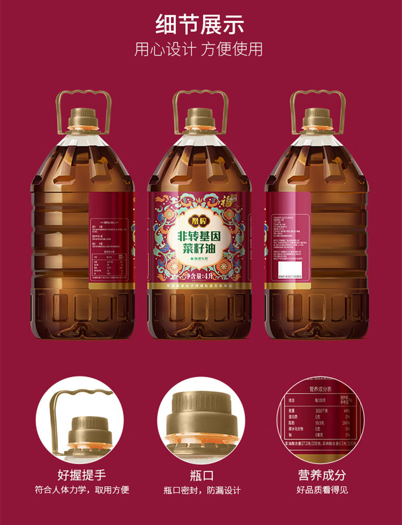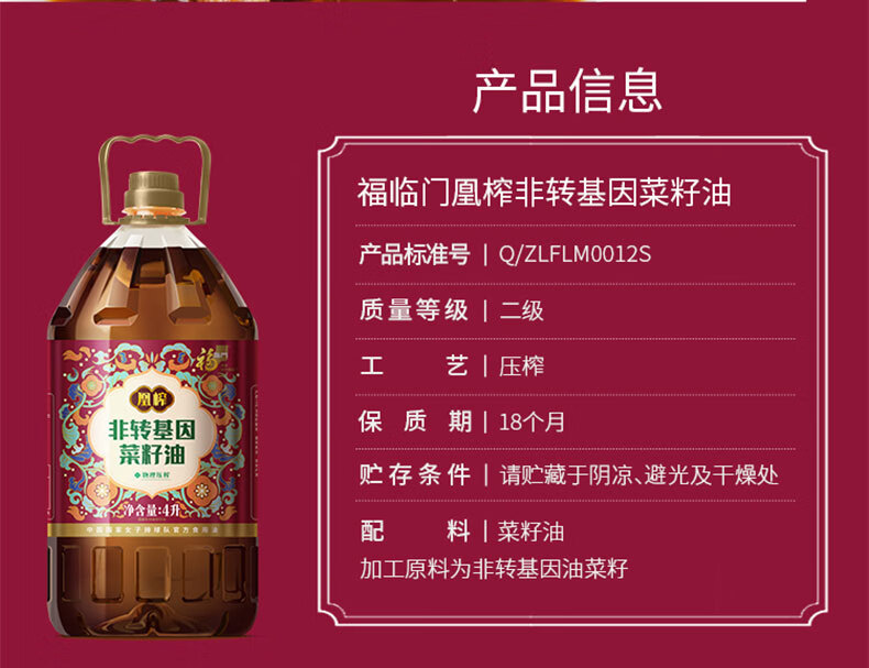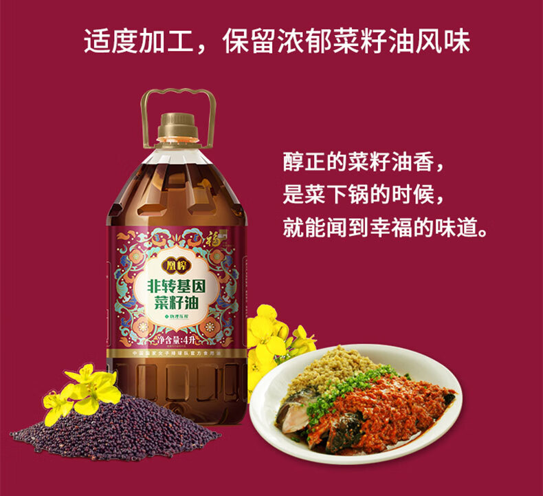 中粮福临门凰榨非转基因菜籽油4L