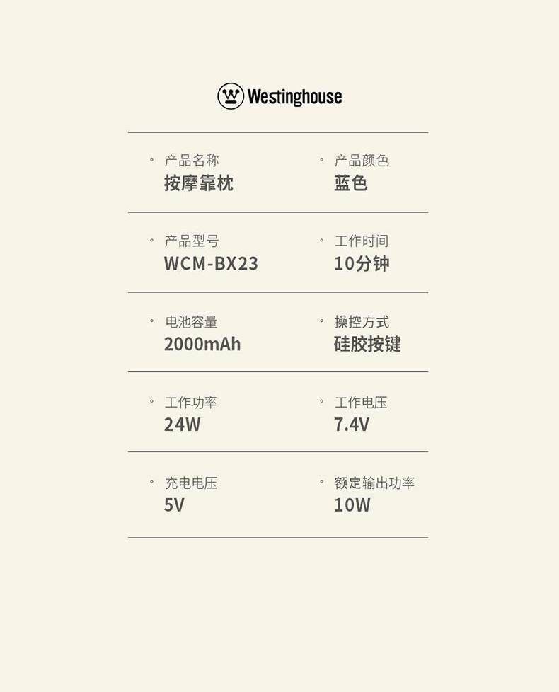• 西屋Westinghouse-按摩靠枕WCM-BX23