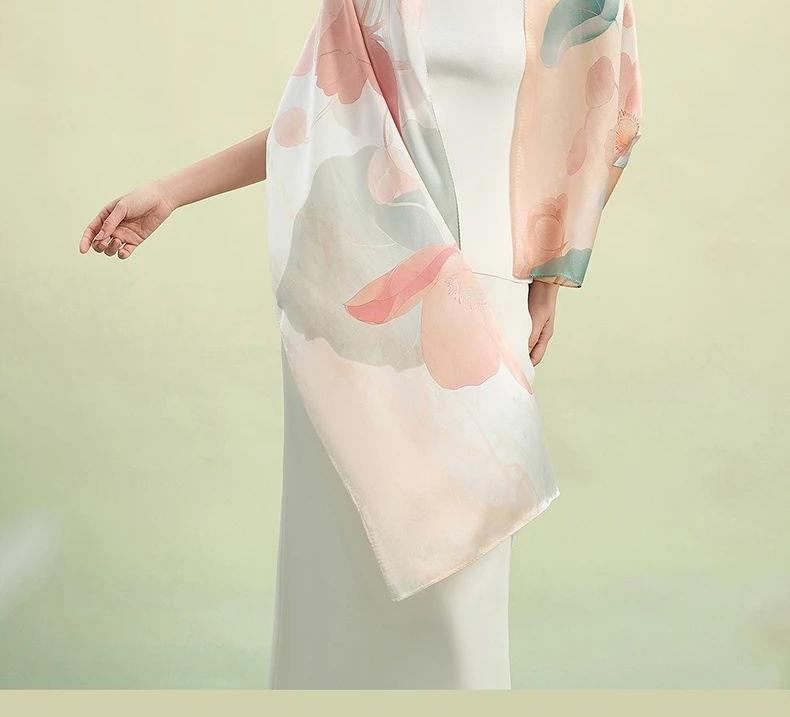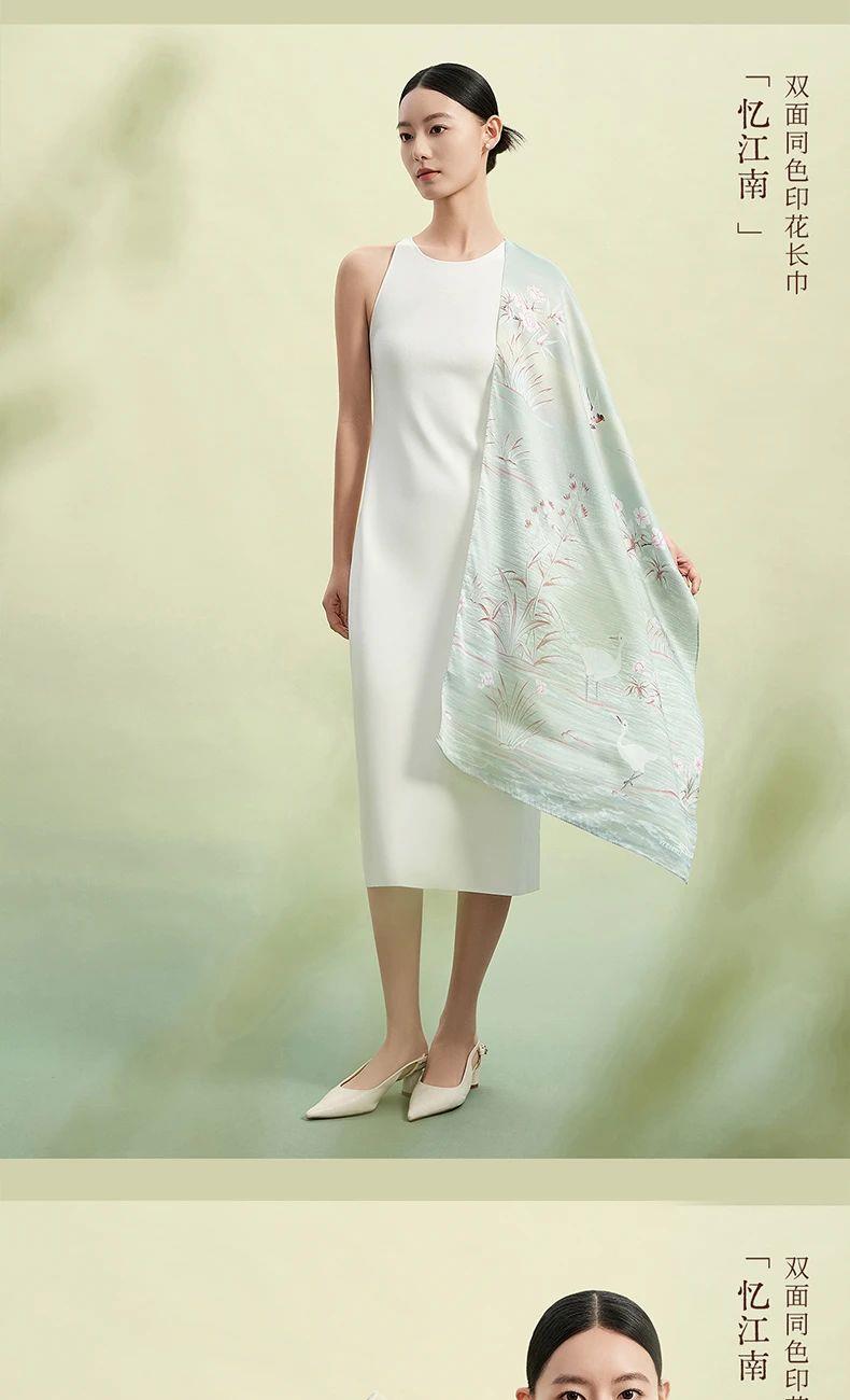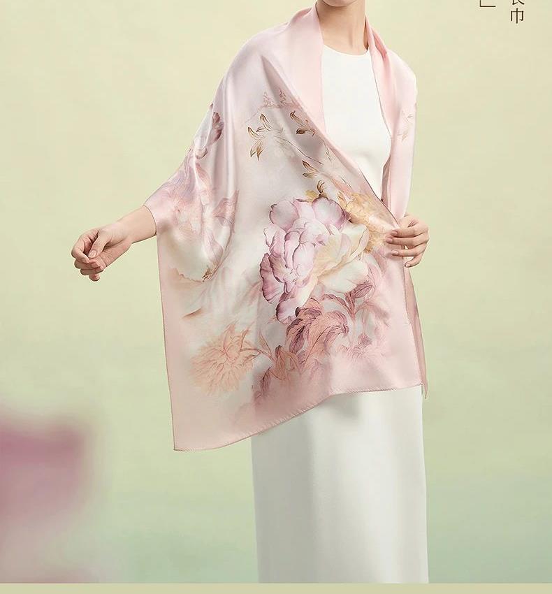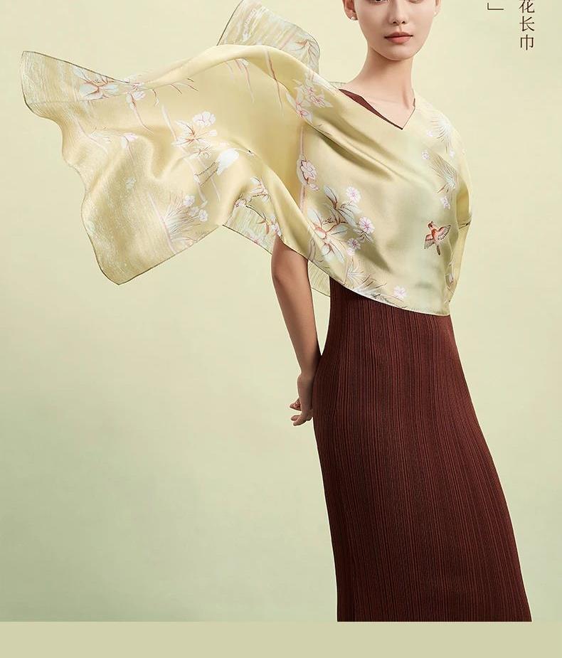 分类 暗香来/探春来/清平调/忆江南/采莲曲/西子妆/锦绣芍华 工艺:双面同色印花 面料:12姆米素绉缎 尺寸:175cm×50cm 材质:100桑蚕丝 卷边:机卷