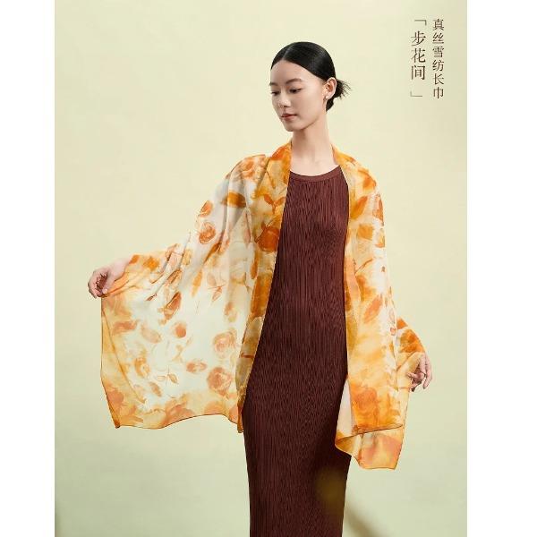 万事利×故宫文化联名款真丝丝巾女桑蚕丝长巾十二花神系列