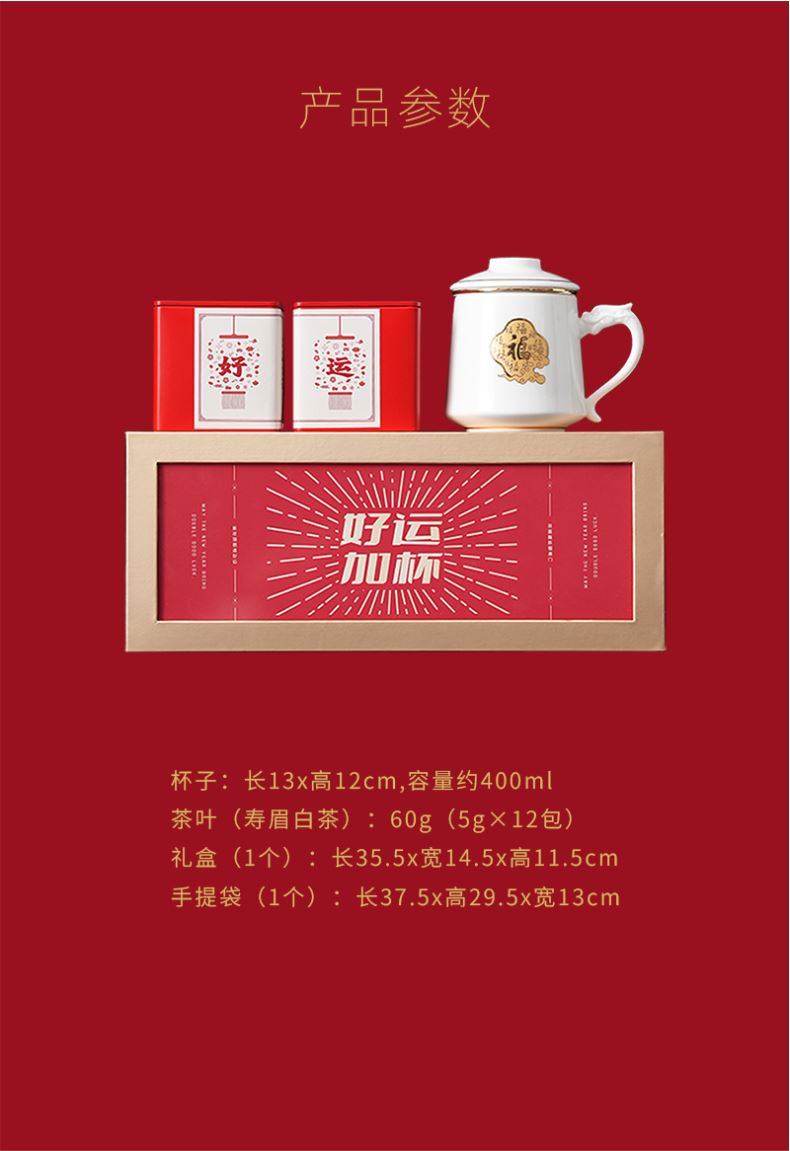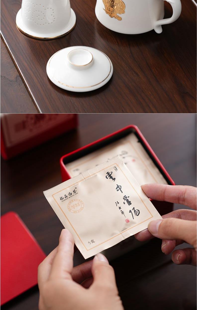定制:产品包装均可定制 包装规格:35.5*14.5*11.5cm 材质:高白瓷 茶叶:寿眉白茶 组件:办公杯*1+茶叶*24泡+精品礼盒