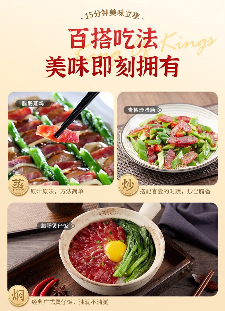 农家柴火腊肉200g*1 福多多腊肠150g*1 福味腊肠200g*2 香荔腊肠250g*1