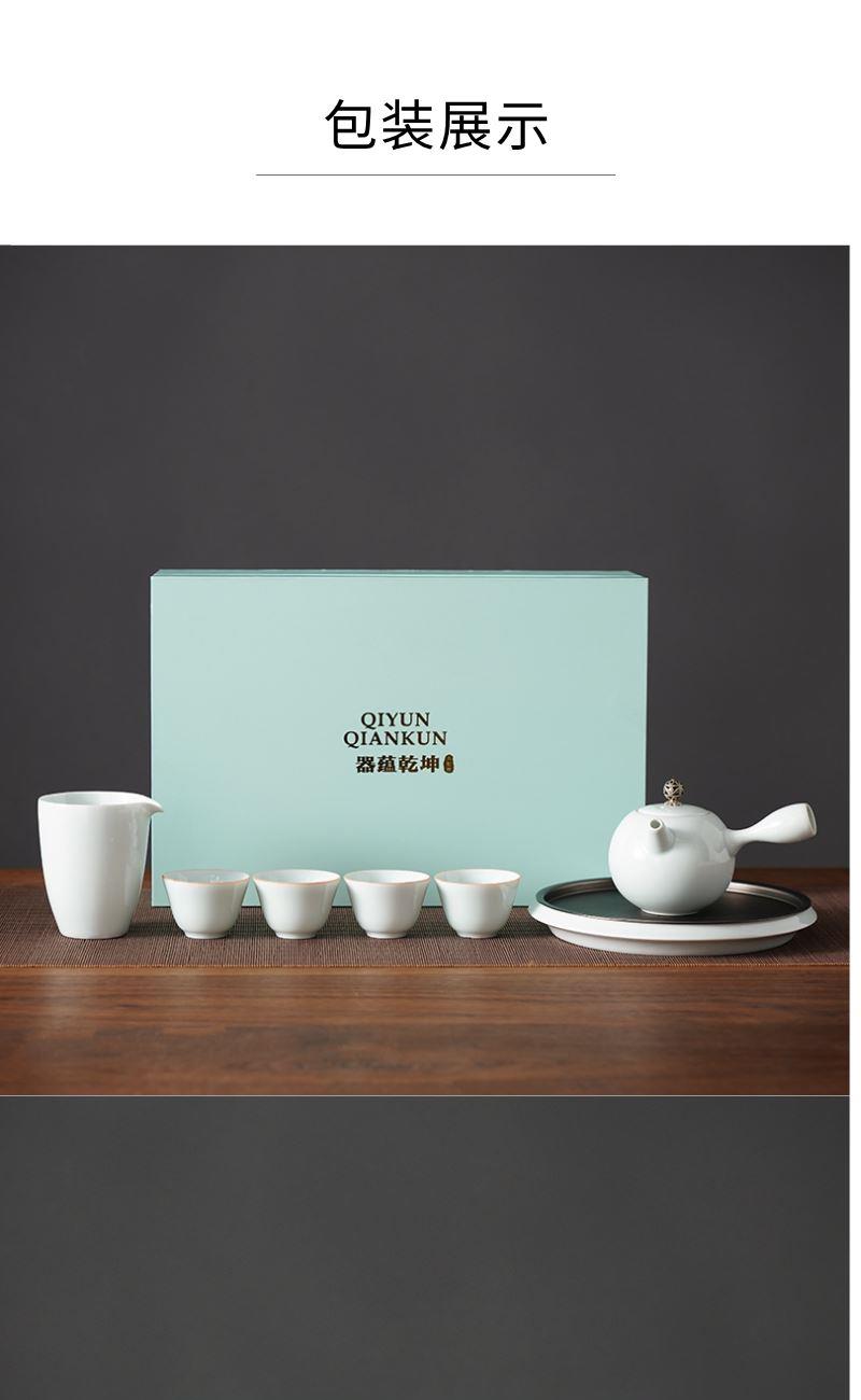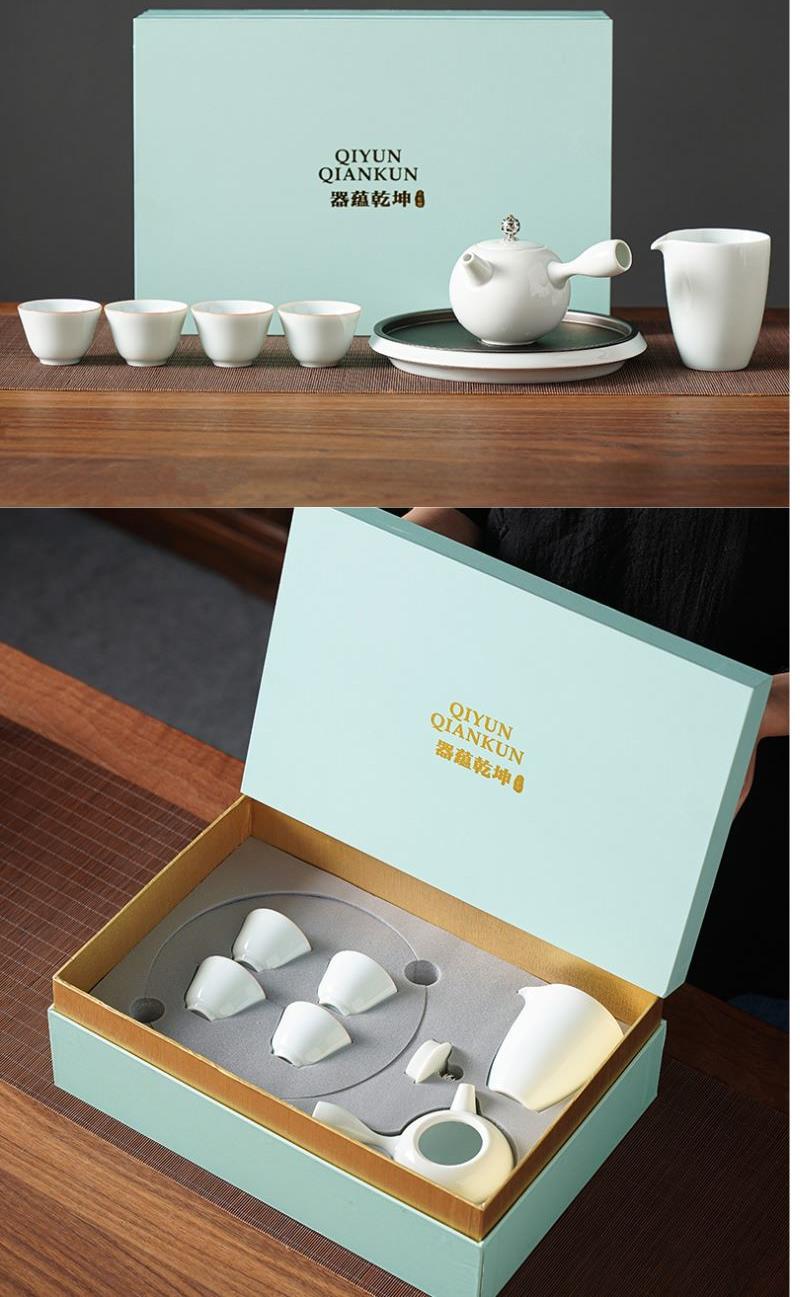规格:36*24*11.5cm 定制: 产品及包装可定制logo 组件: 7头茶具套组+精品礼,盒 釉色:青色 材质: 高白瓷