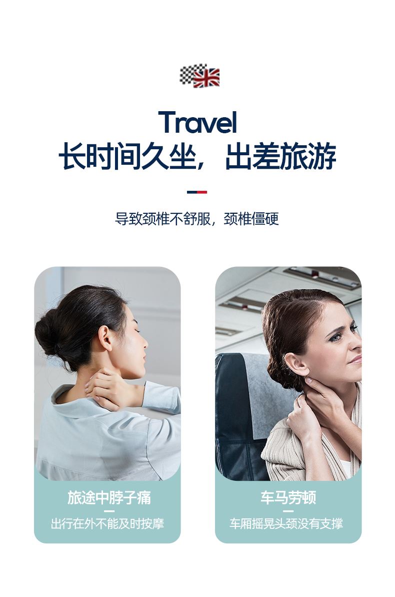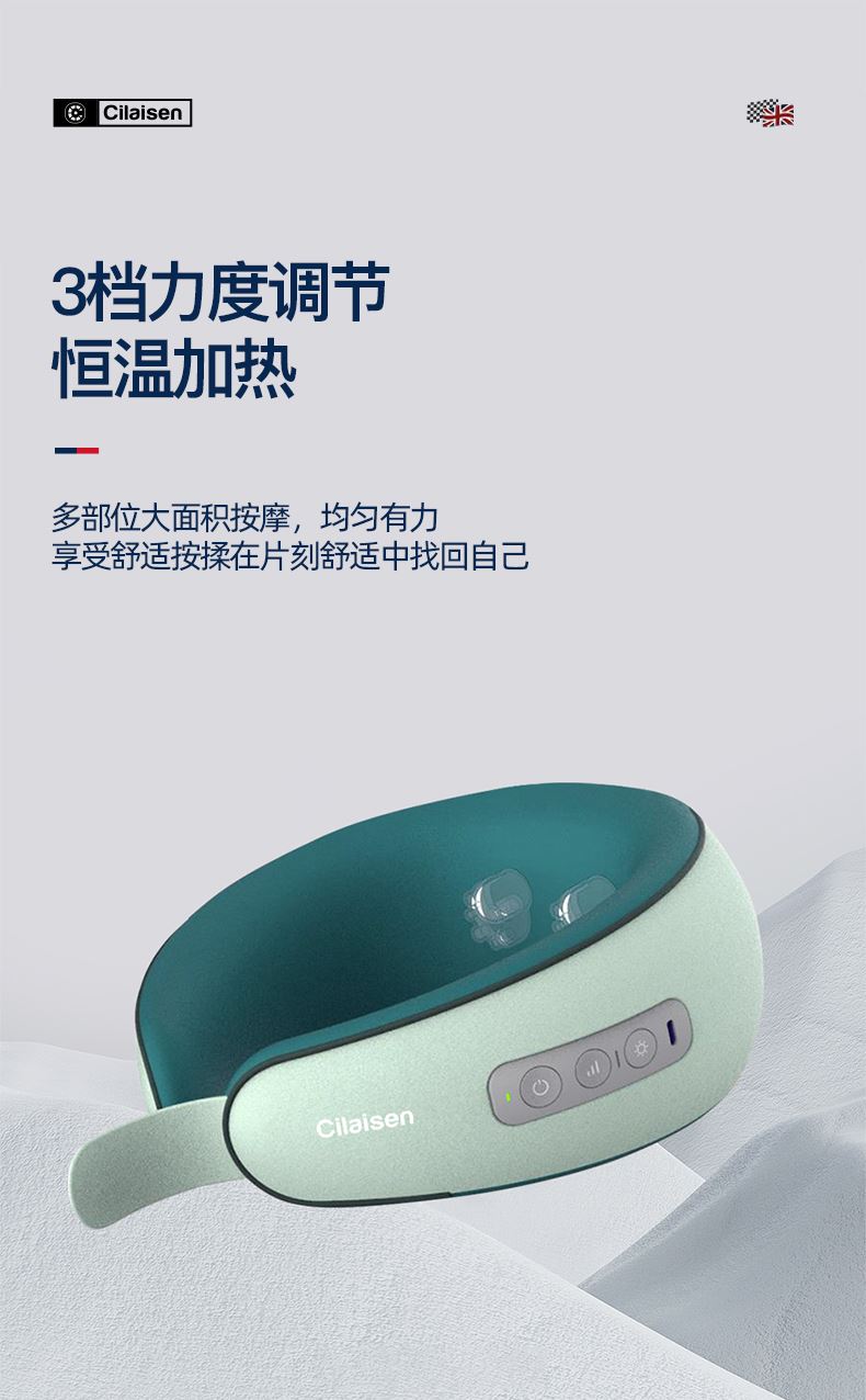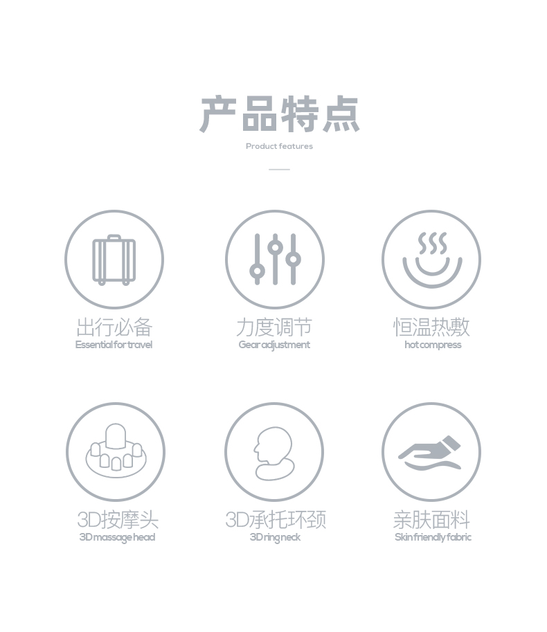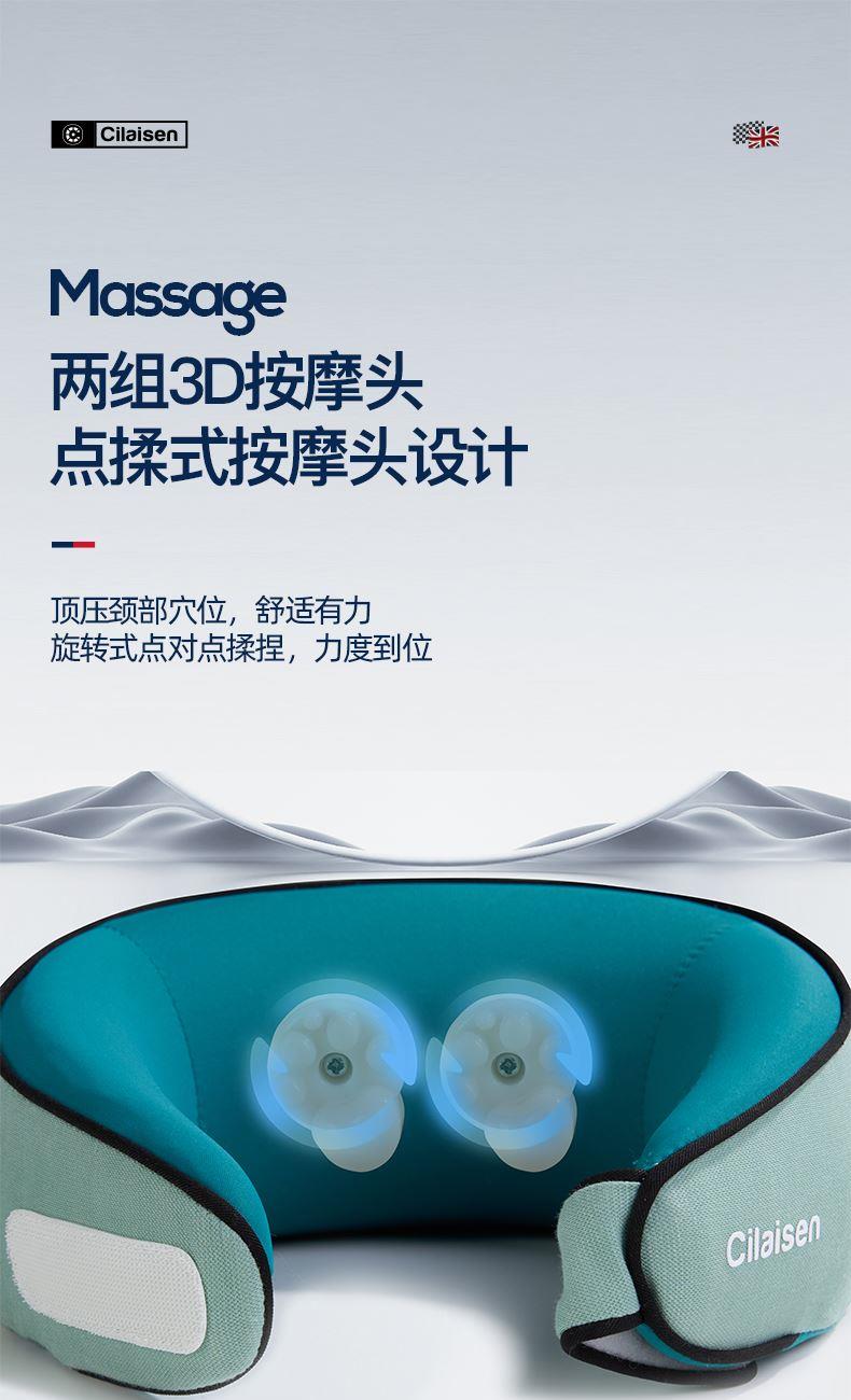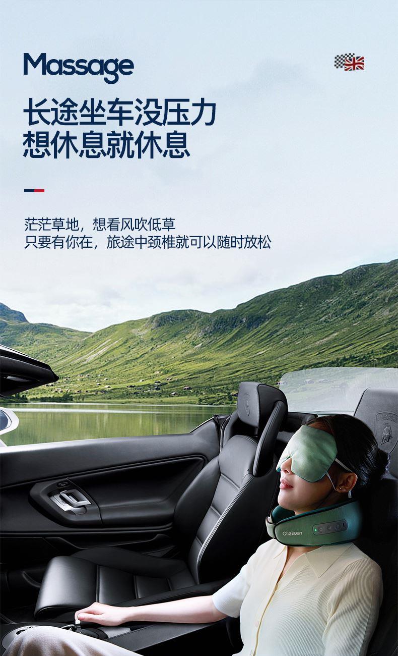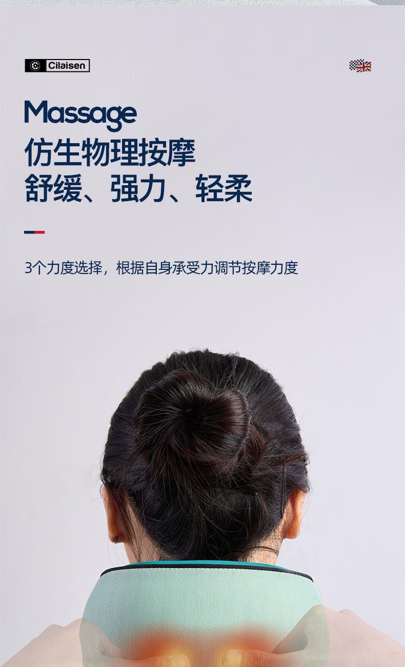 产品参数: 套装型号:CP-C6 商品条码 : 6972831860815 颈椎按摩仪型号:CP-MP2 定电压 : 5V ⎓ 颈椎按摩仪尺寸:230X230X110mm 额定功率:6W 眼罩尺寸:206X110mm 电池容量:1200mAh 产品毛重 : 505g 包装尺寸:215X95X200mm 外箱尺寸:550X470X480mm 包装清单:颈椎按摩仪x1、眼罩X1、充电线x1、说明书x1 1. 3档力度调节,舒缓、强力、轻柔,多部位大面积按摩 2、恒温热敷,放松僵硬肌肉 护颈保暖 3、两组3D按摩头,旋转式点对点揉捏,力度到位 4、立体舒适承托,给颈部全包裹的有力承托 5、充电便携,长续航,出差旅行好搭档 6、加宽大面罩,不勒耳不磨耳 轻盈更舒适