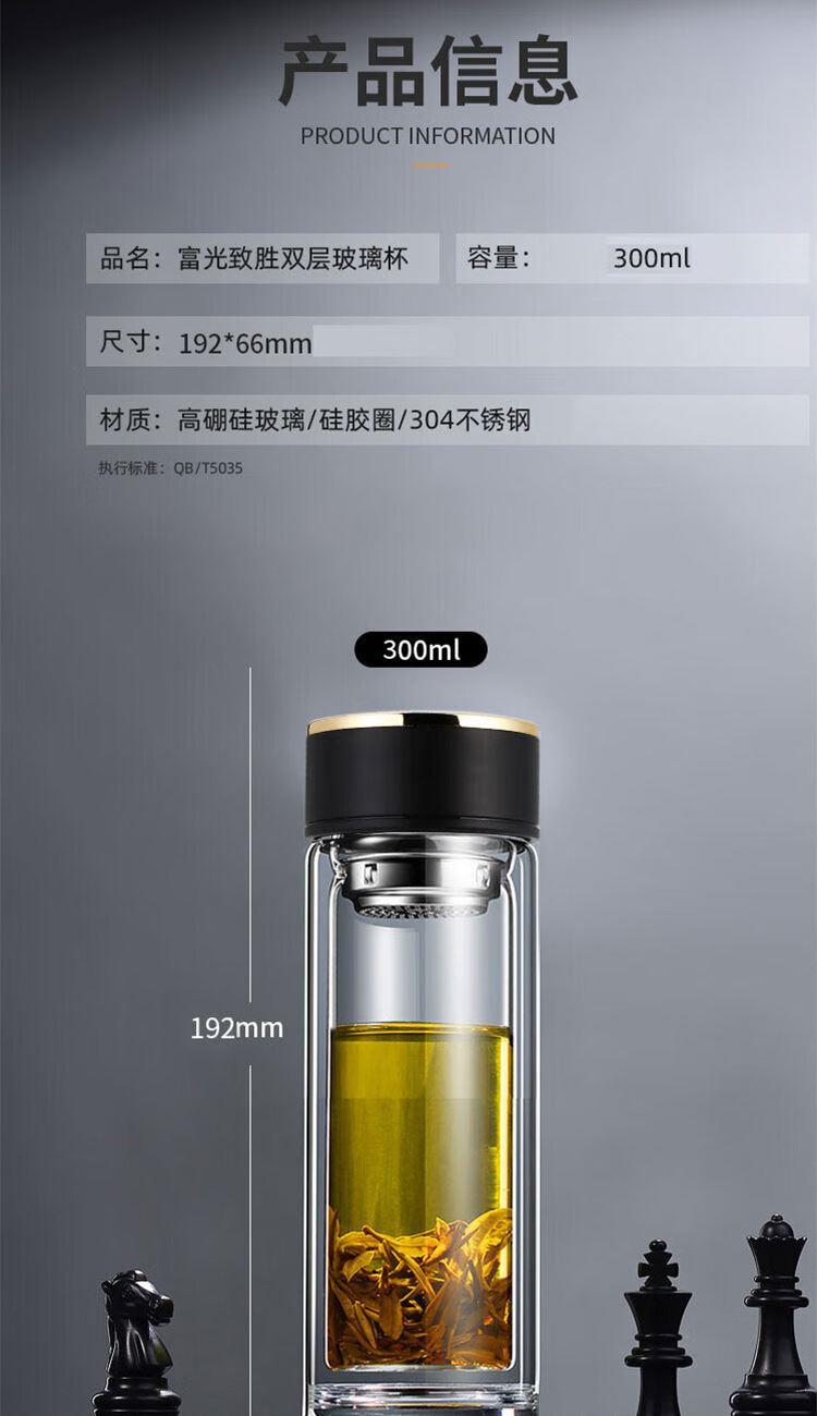 1.杯盖304不锈钢+磨砂手感工艺 2.杯体采用双层高硼硅玻璃 3.内置304食品级不锈钢滤网 4.杯盖密封圈:食品级硅胶圈(无异味) 5.一次成型加厚杯底 6.独立简盒包装.