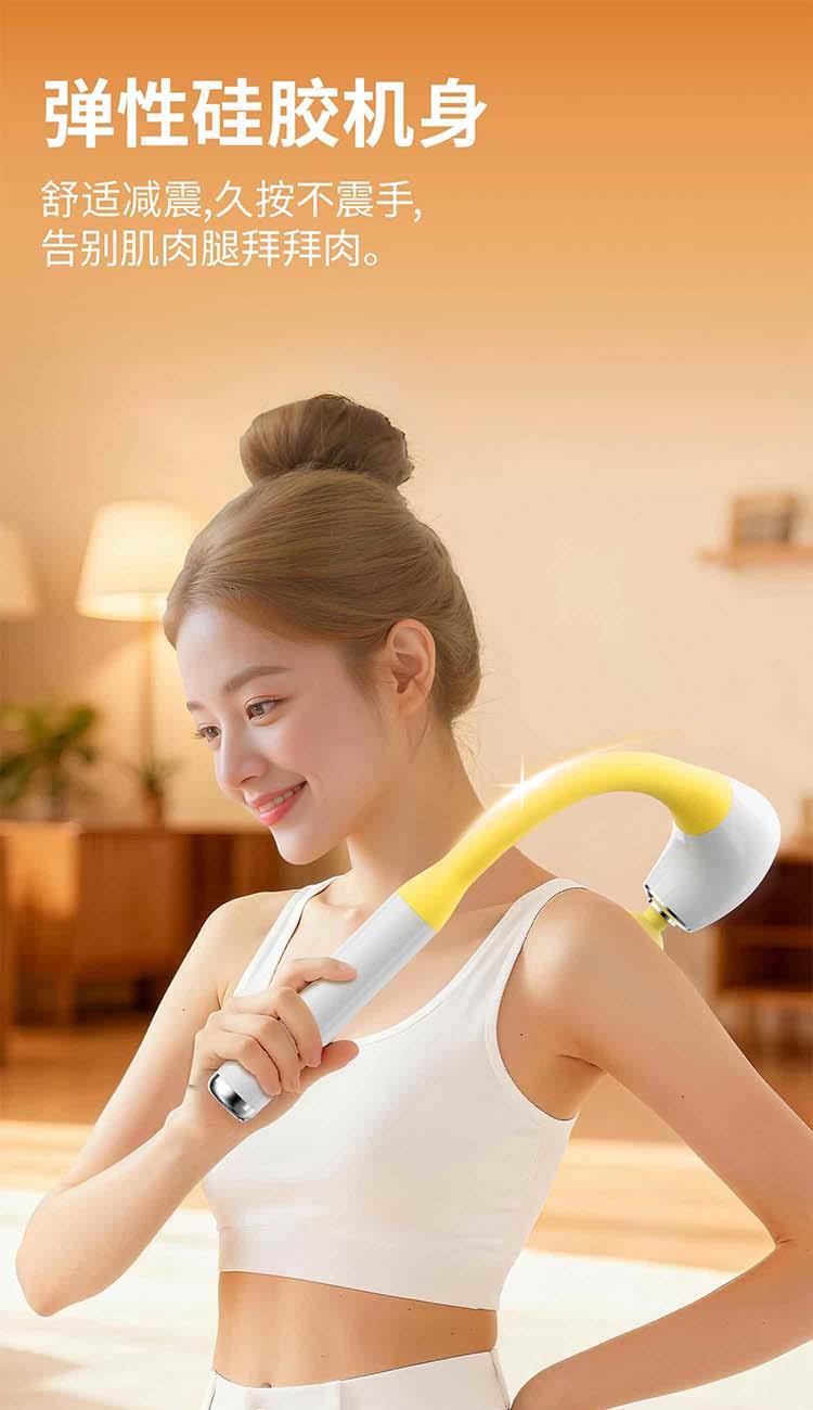 4. 弹性硅胶机身: 舒适减震,久按不震手,告别肌肉腿拜拜肉;