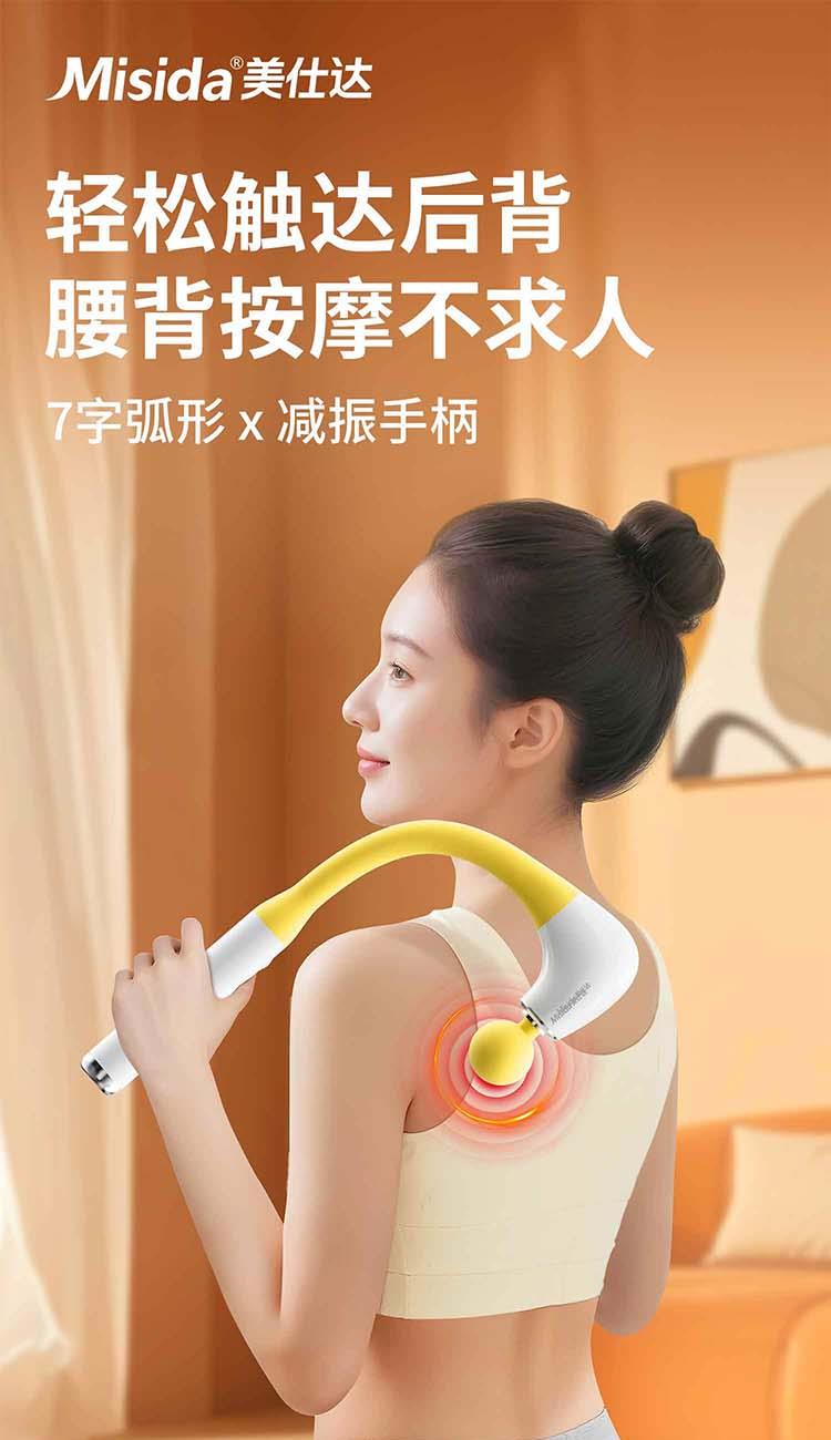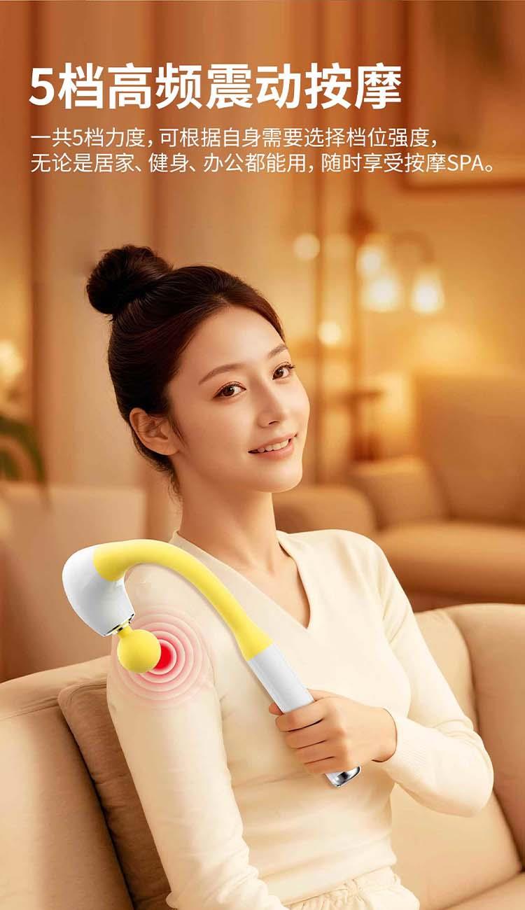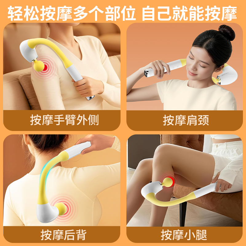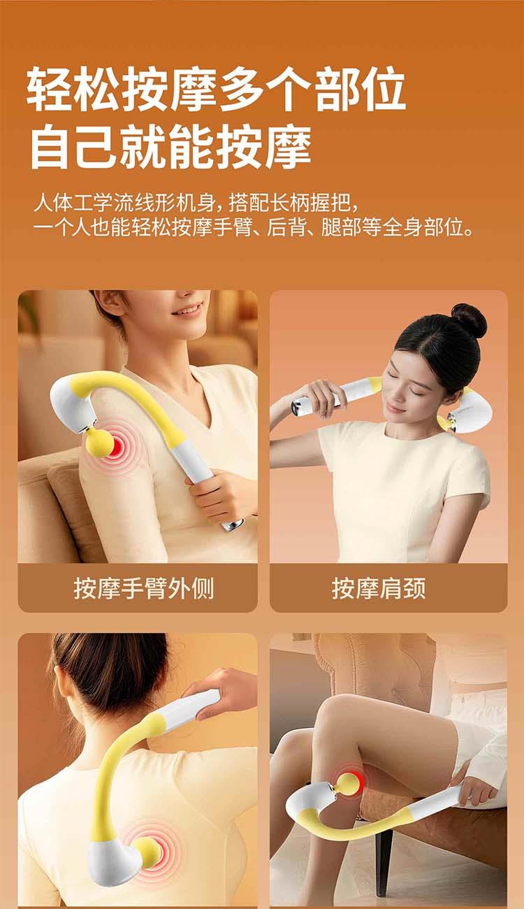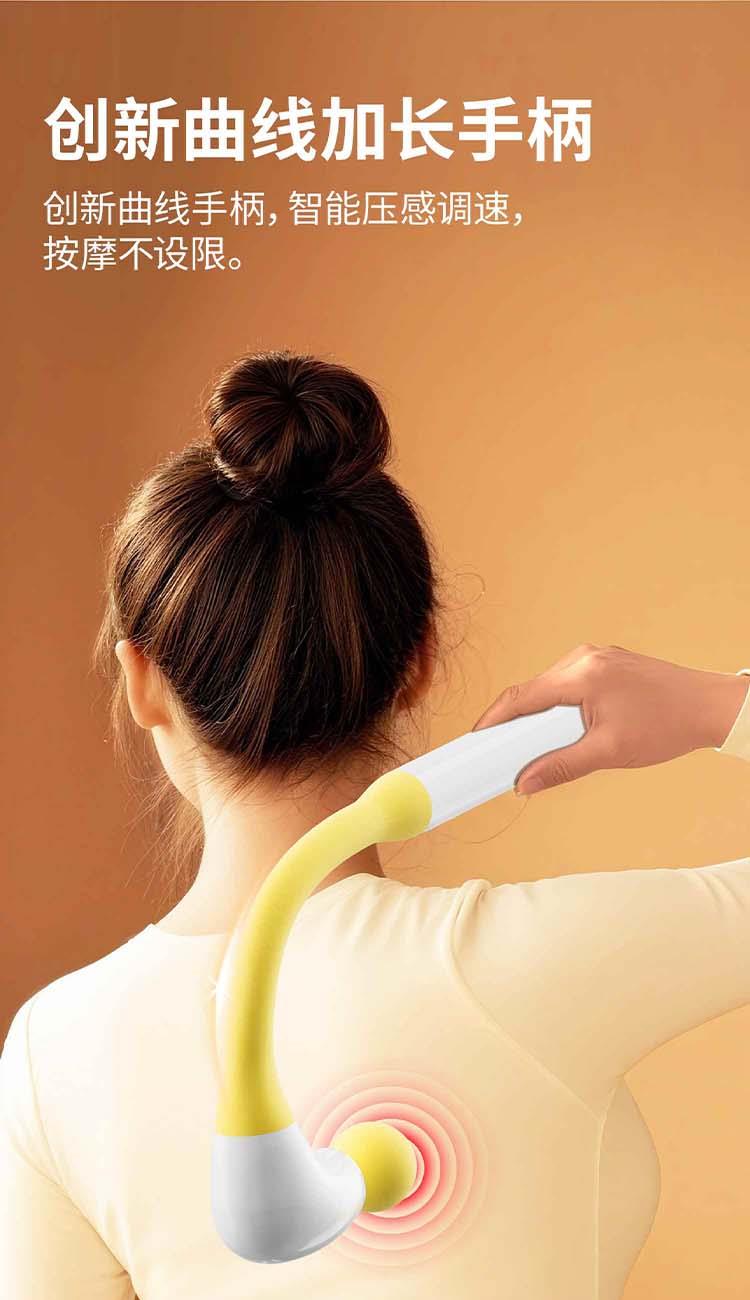 1. 创新加长曲线手柄: 轻松触达后背,腰背按摩不求人;