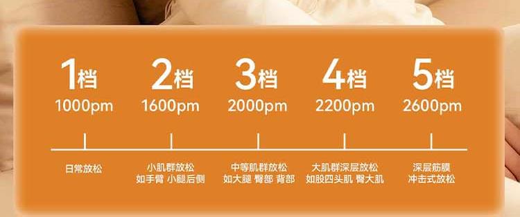 2. 5档高频震动按摩: 10mm专业振幅,深入渗透肌肉层,快速击溃肌肉酸痛,身体由内到外大放松;