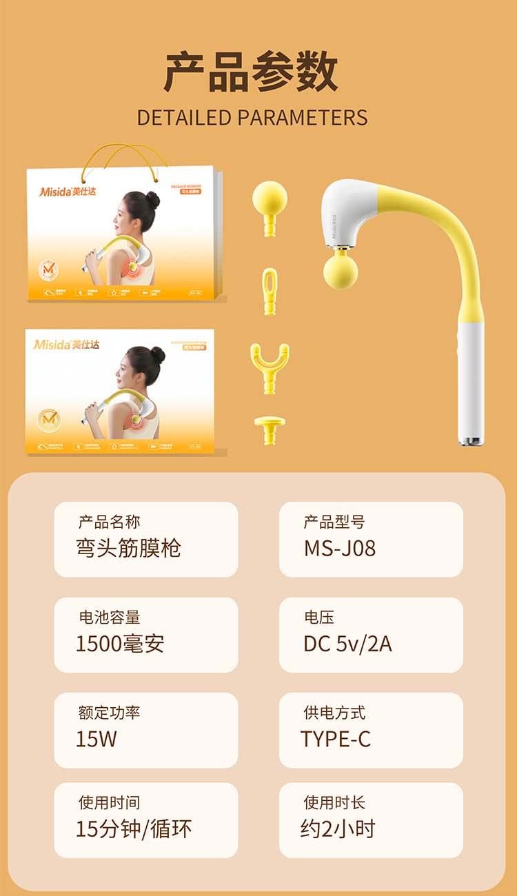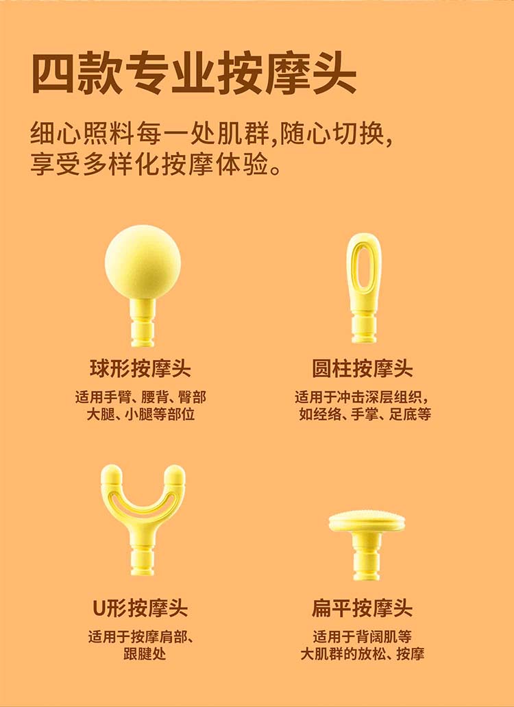 7.四款专业按摩头: 细心照料每一处肌群,随心切换,享受多样化按摩体验。