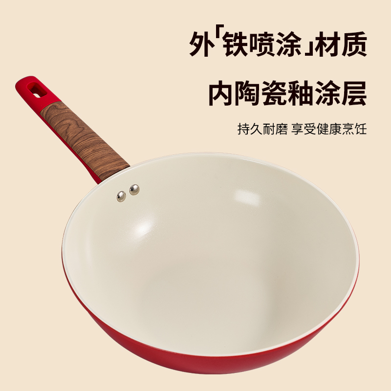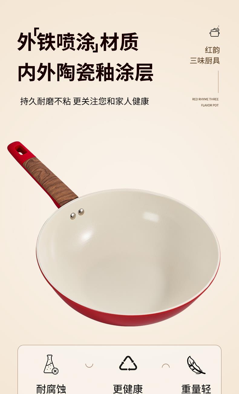 产品参数: 材质:食物接触用精铁 产品规格:炒锅30cm汤锅18cm煎锅24cm 彩盒尺寸:64*33.5*12.5 外箱尺寸:65*64.5*35cm 净重/毛重:3.4/4.2kg 产品卖点: 1.材质铁喷涂 2.不粘效果好,焖煮,煲汤 3.木手柄,木盖珠,手感好防烫耐用. 4.食品级硅胶盖