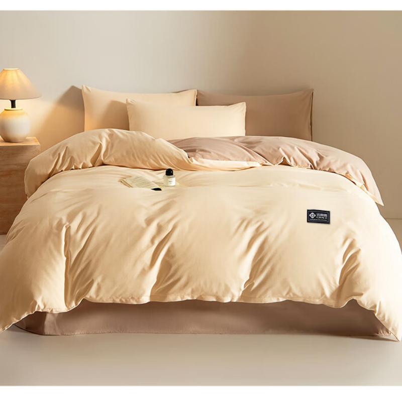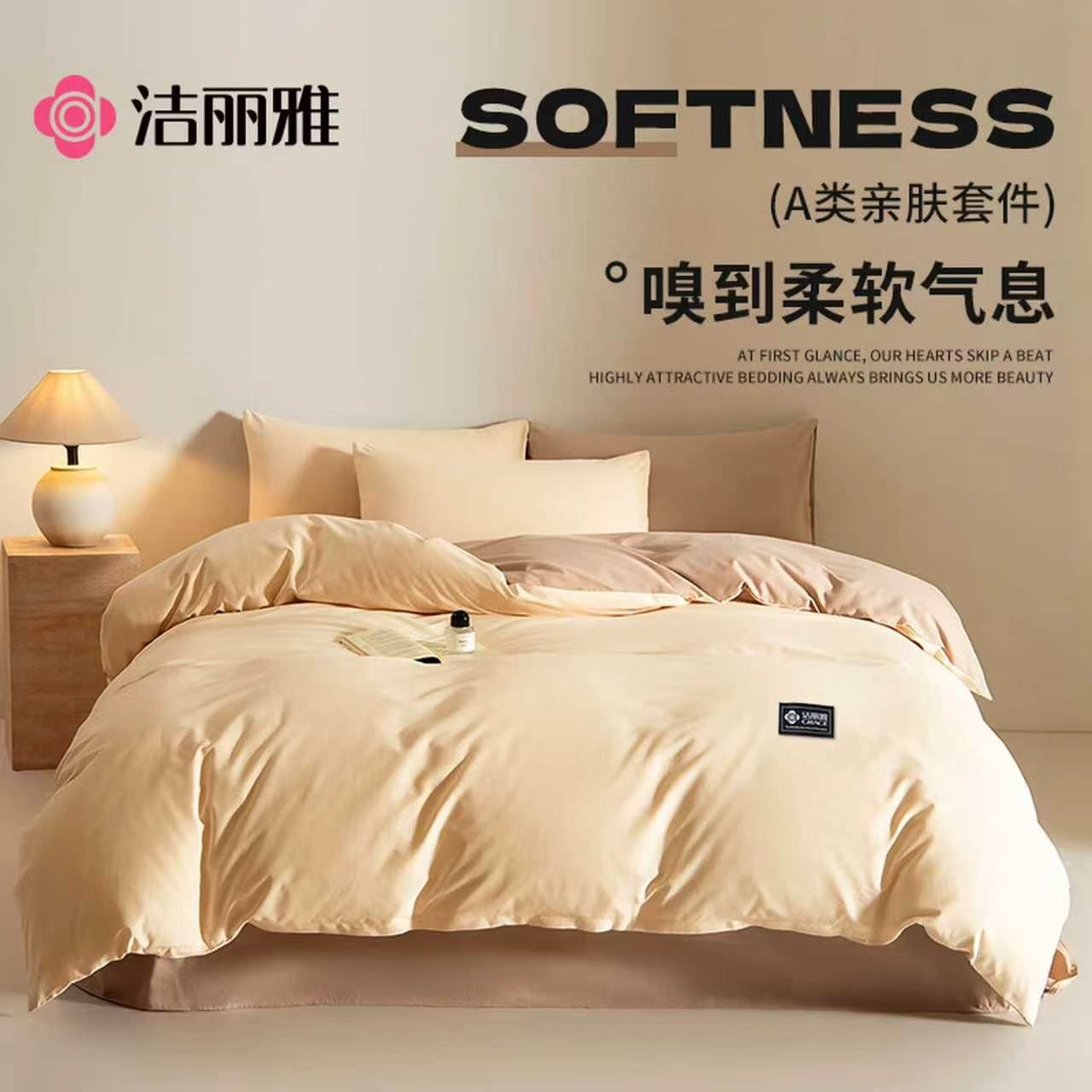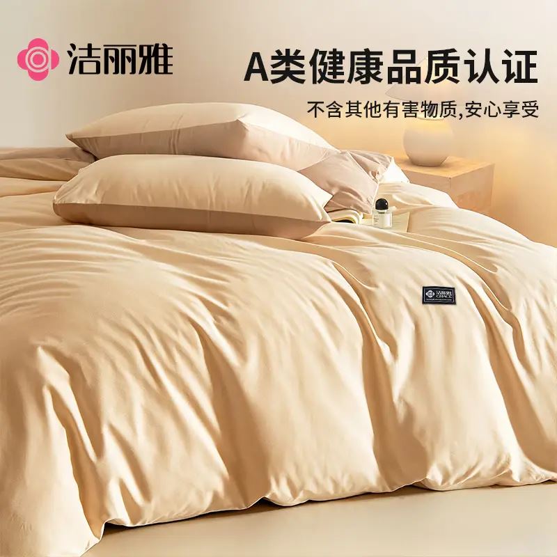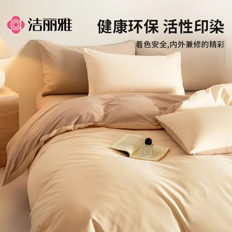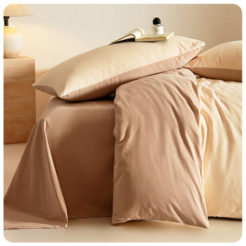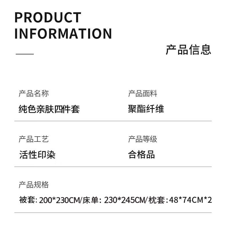 被套:200*230cm 床单:230*245cm 枕套:48*74cm*2 面料:聚酯纤维 执行标准:GB/T22796-2021 安全类别:GB18401-2010 B类 1.以阳光般的天然柔润质感,打造会呼吸的睡眠体验。采用高支高密精梳工艺,触感柔软细腻却不失挺括,面料经纬交织间形成天然透气孔洞,睡眠时能自动调节湿度,保持肌肤整夜干爽舒适。