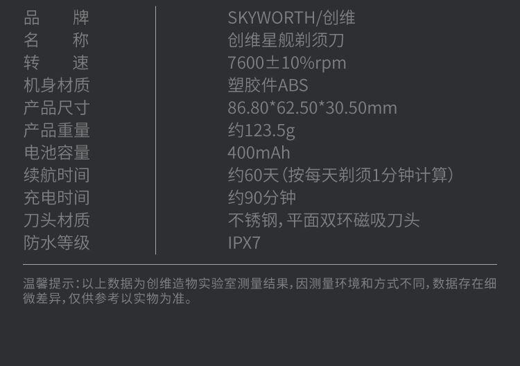 创维SKYWORTH星舰剃须刀冰霜白XJ32