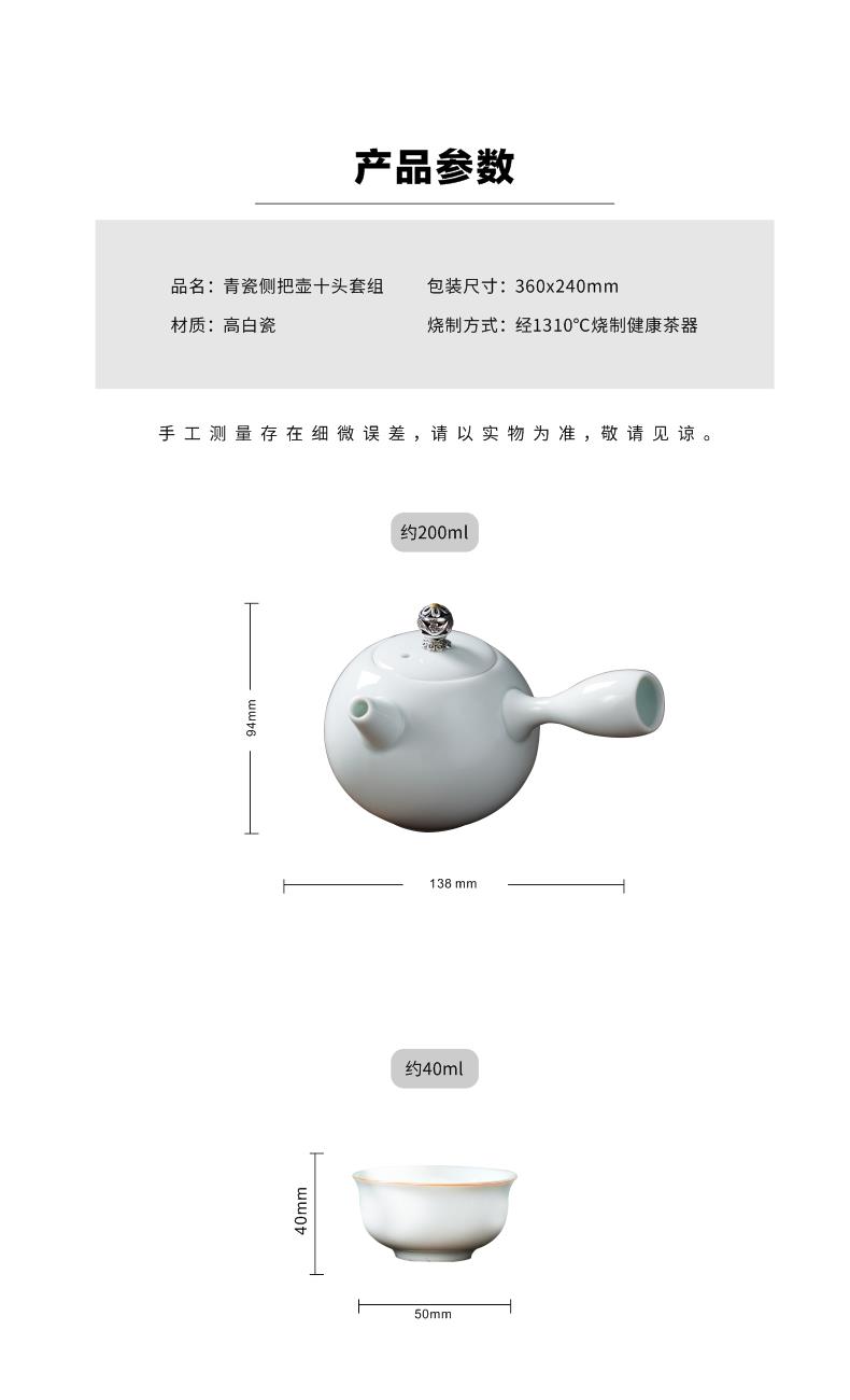 规格:36*24*11.5cm, 釉色:青色, 定制:产品及包装可定制logo, 材质:高白瓷, 组件:10头茶具套组+精品礼盒