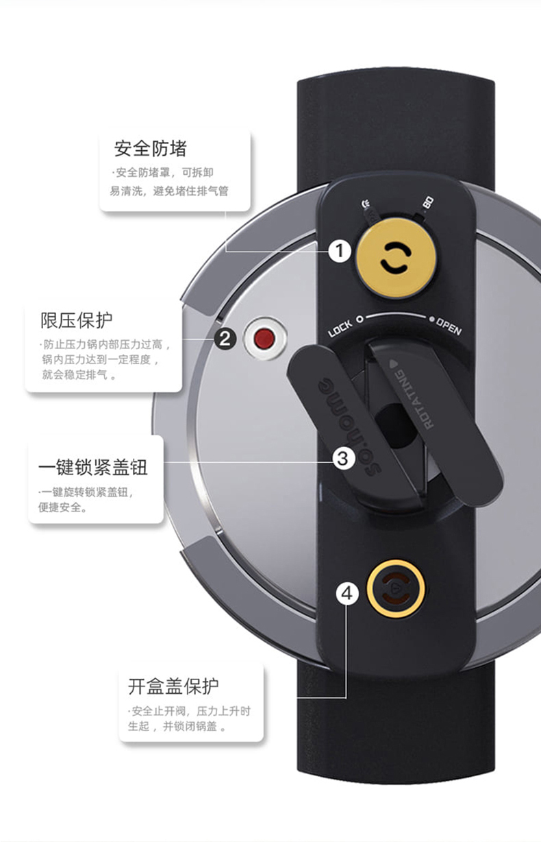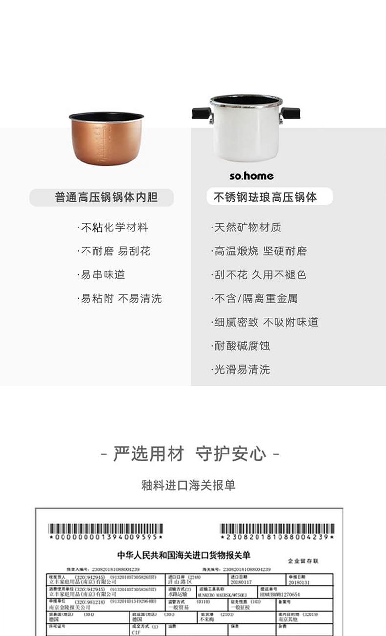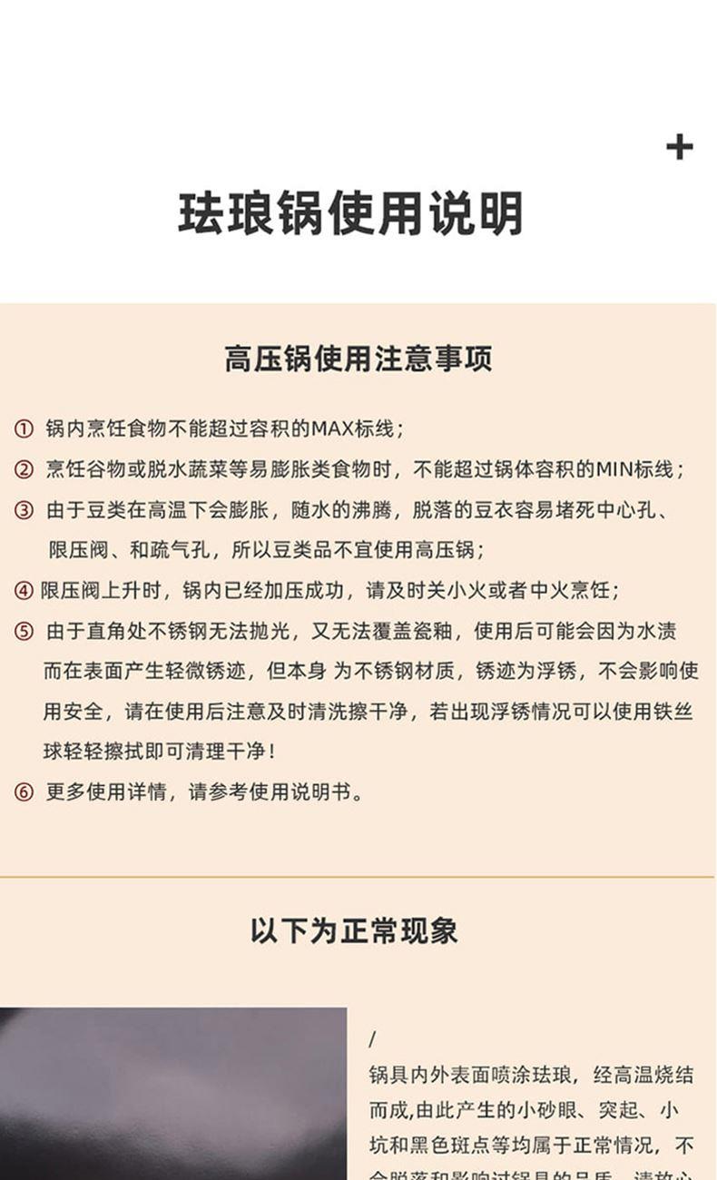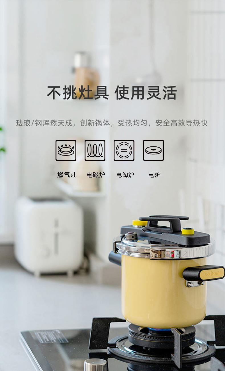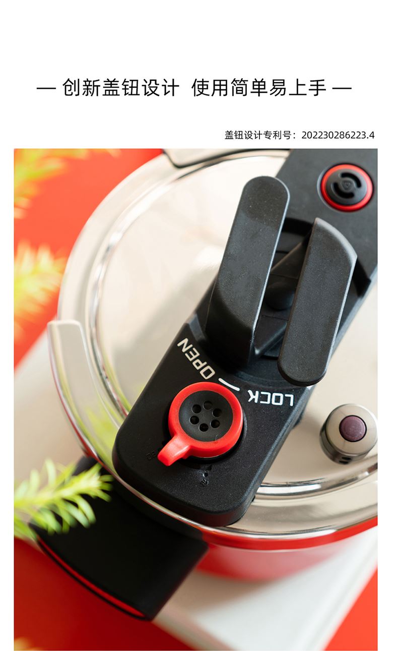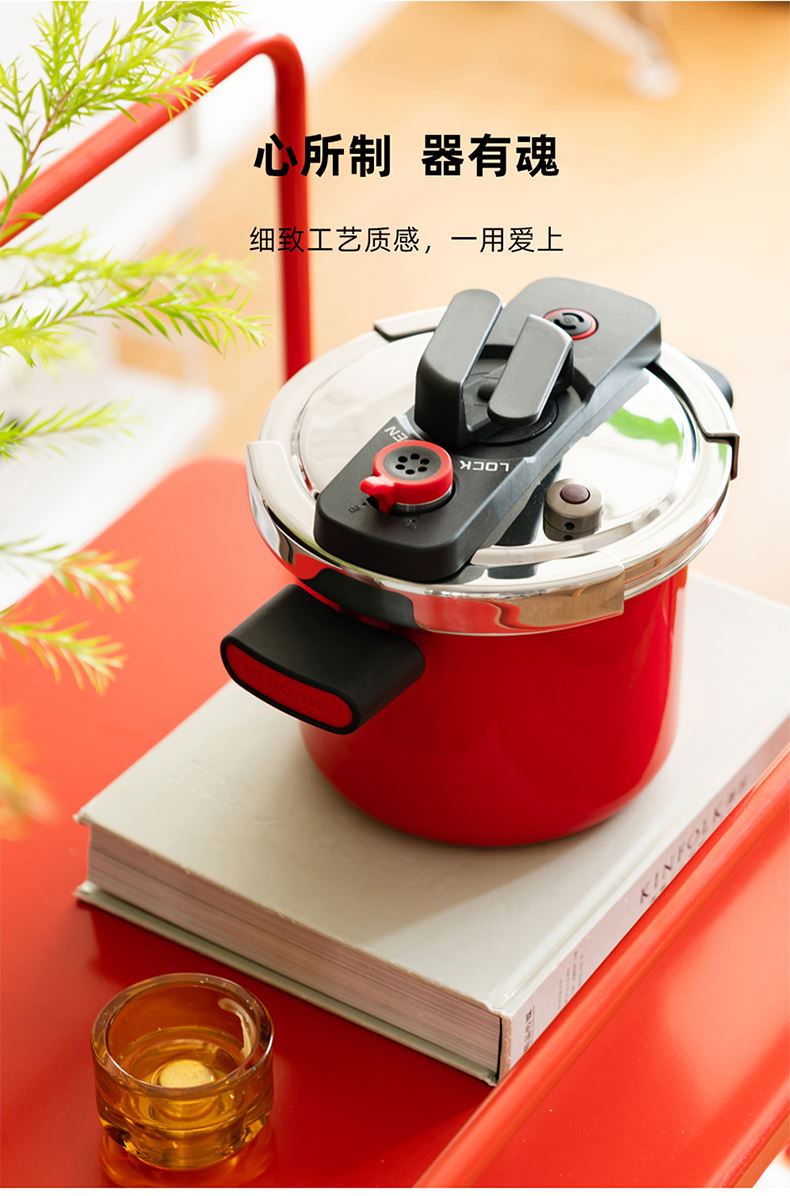 产品容量:2.5L 产品材质:10Cr17不锈钢、珐琅、电木、PP、硅橡胶、尼龙、 钢化玻璃 产品颜色:茉莉黄、红色 1、小肚子大能量,80kpa的压力,旋转开关设计,省时省力,轻松掌握使用超简单; 2、一锅双盖,高压烹饪硬菜,玻璃锅盖日常料理,一锅多用,尼龙耐高温把手,高颜值硬实力,不怕烈火炙烤; 3、430不锈钢锅体,可用于煤气灶、电磁炉、电陶炉、烤箱的烹饪; 5、德国进口珐琅釉彩涂装,耐腐蚀抗酸碱,保持食物原始风味; 6、四重840℃高温窑炉烧制, 坚固耐用,久烧不黑 ,靓彩永不褪色。