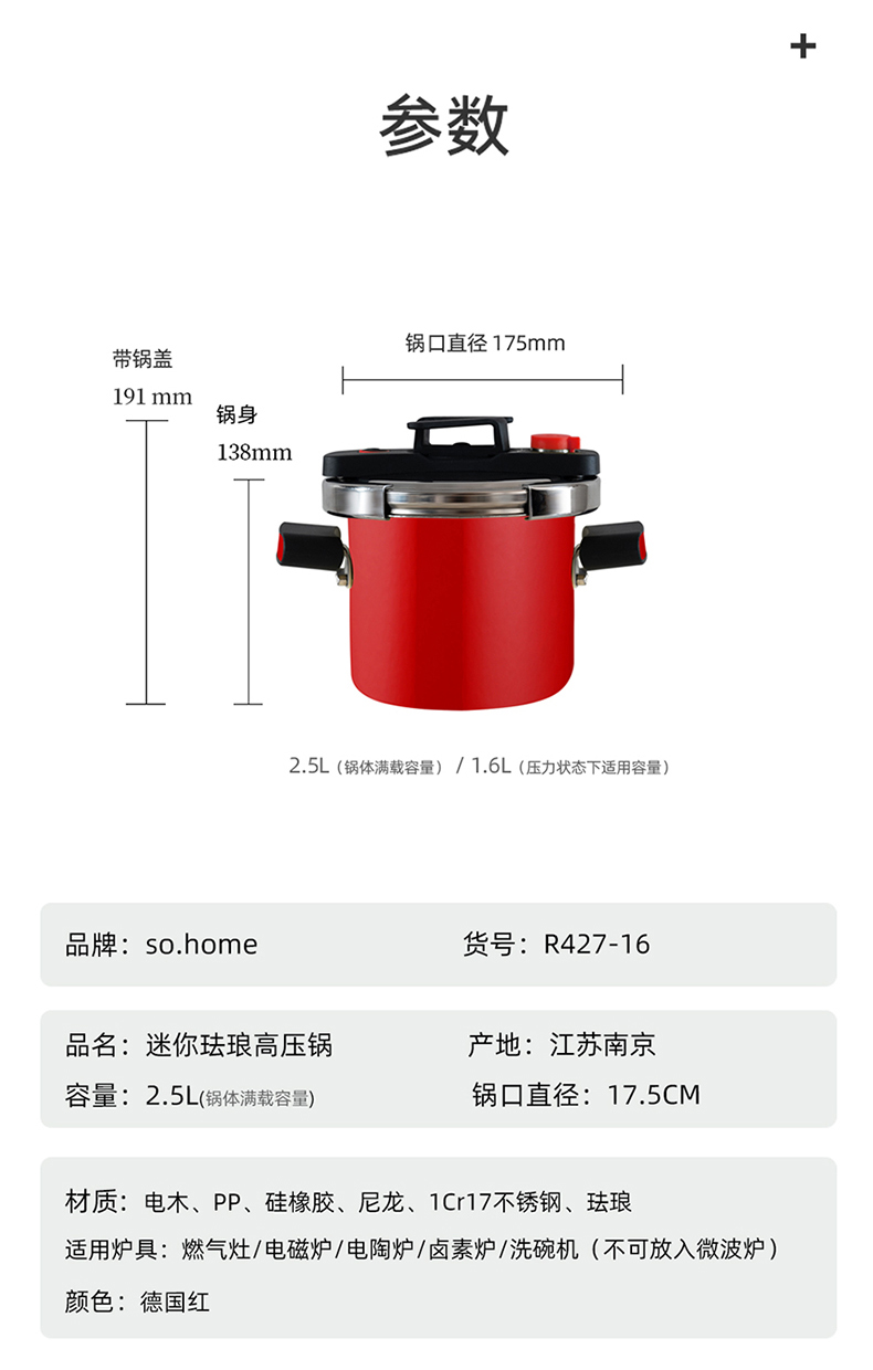 • so.home迷你珐琅高压锅(双盖)R427-16