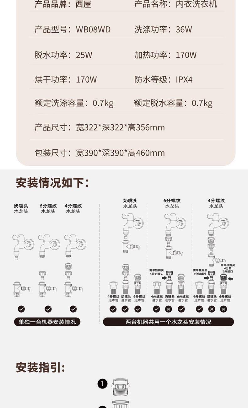 西屋内衣洗衣机WB08WD奶酪白