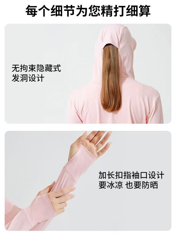 主推配色: 浅粉、米杏、浅紫 产品卖点: UPF50+、阻隔紫外线+ 冰凉防晒不闷热.完整包覆头部、颈部、脸部、帽身一体、颈面兼顾 一件顶N件、防护更全面! 产品尺寸:M/L/XL/2XL/3XL/4XL