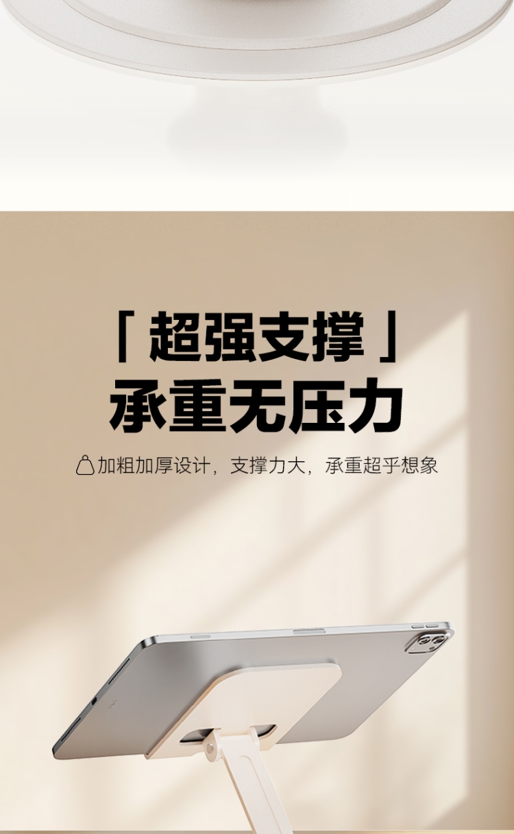 产品尺寸:56*79*82mm 包装尺寸: 84*104*32mm产品重量:107g 颜色:米色 材质:碳钢金属喷漆+硅胶防滑垫 使用场景:把支架平稳放置在桌面上,调节好舒适角度就可以放置手机,不使用的时候可以折叠起来,随身携带方便实用。 360度任意变换角度 可折叠方便携带 自由升降,支撑力大 金属材质,硅胶垫防滑垫。