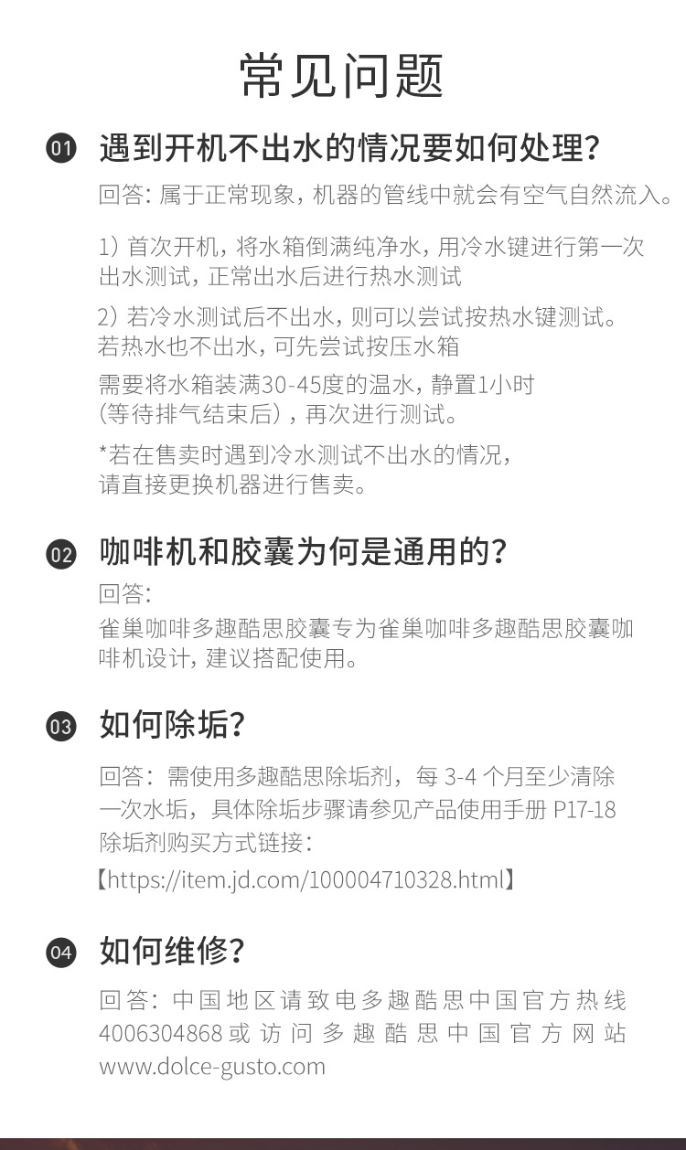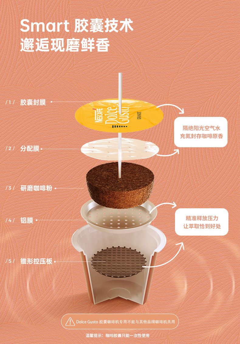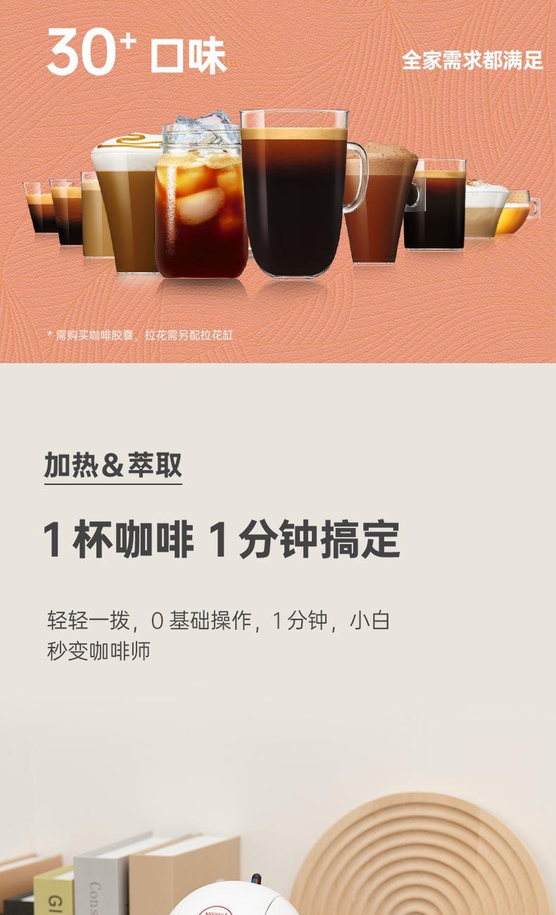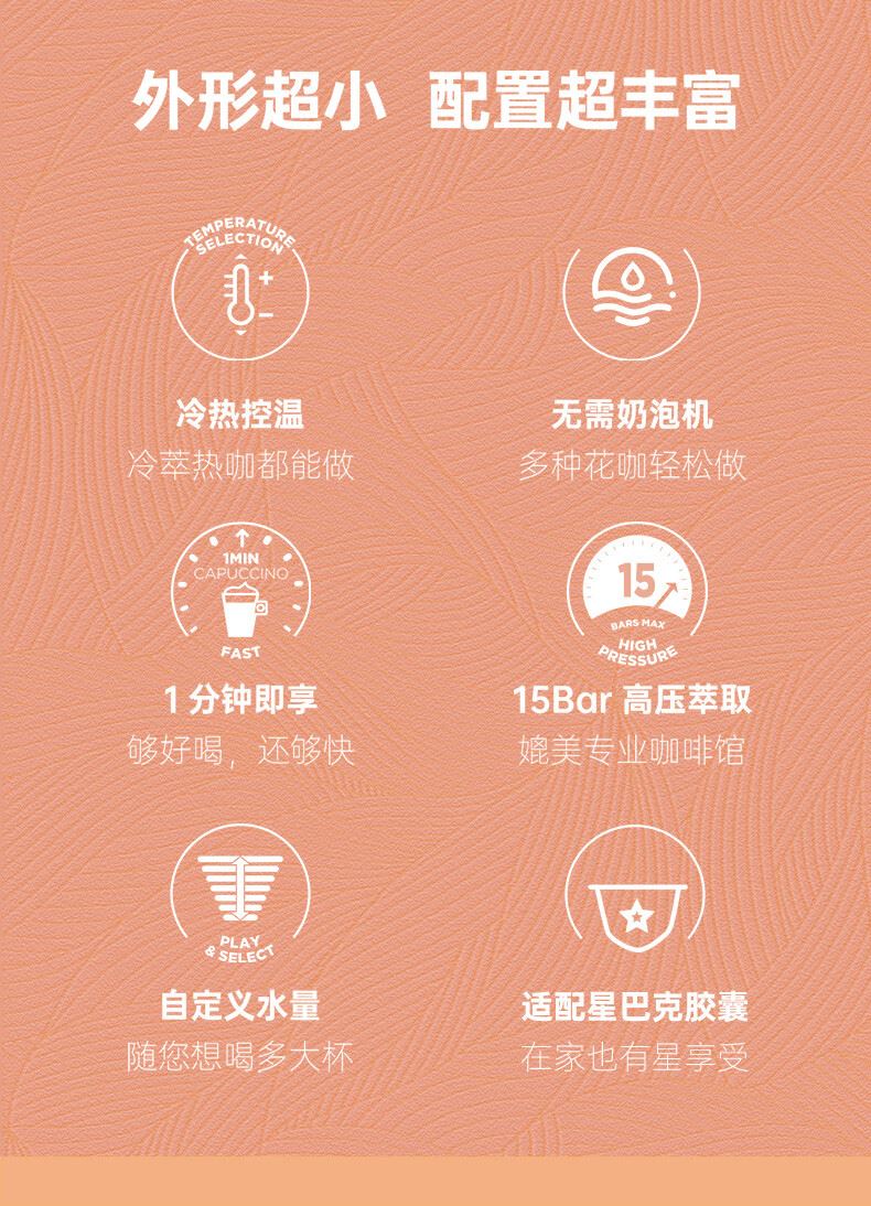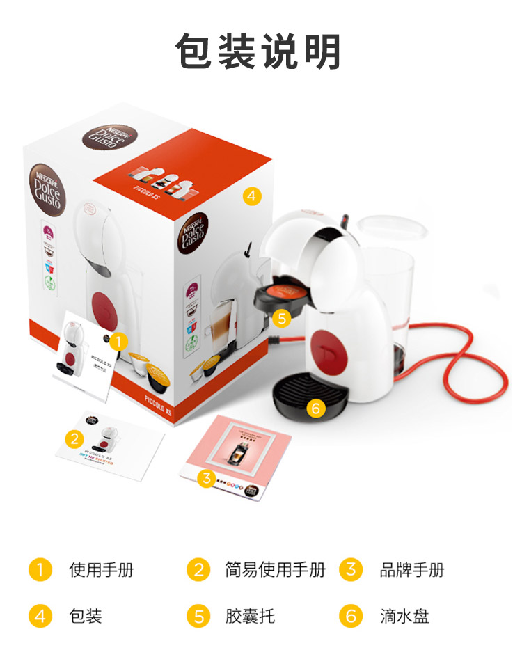 产品:雀巢多趣酷思Piccolo XS 胶囊咖啡机 产品型号:小星星单机 水箱容量:800ML 颜色:白色系 压力:15bar 强劲高压