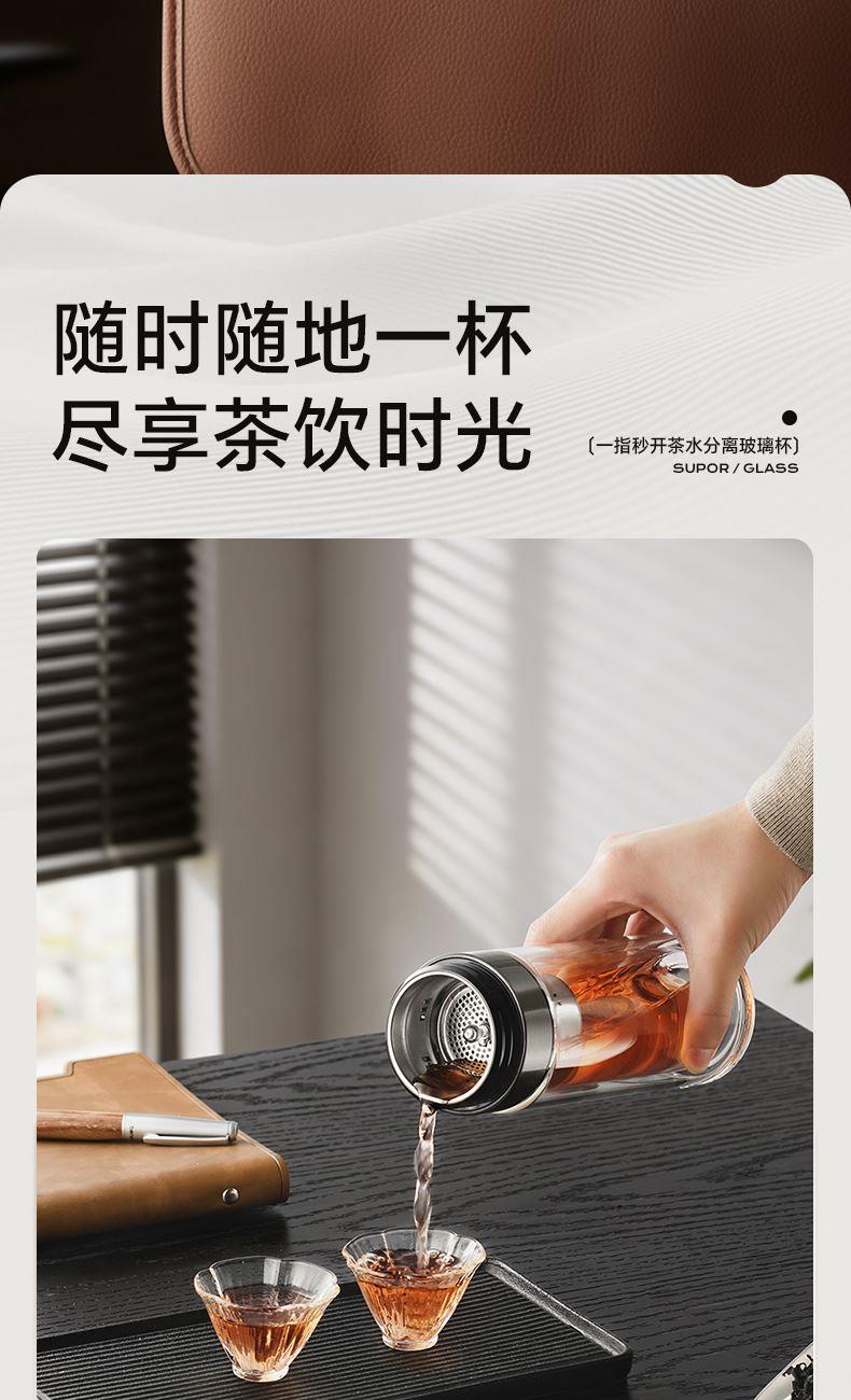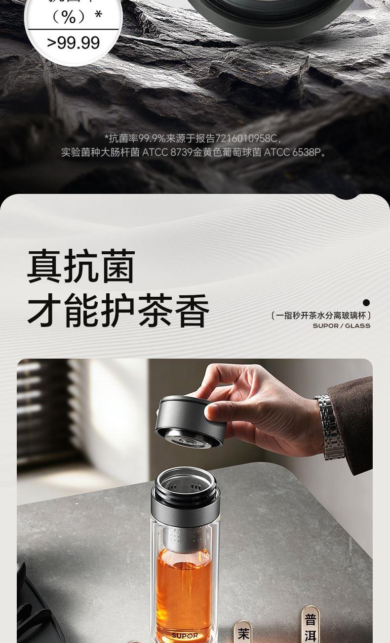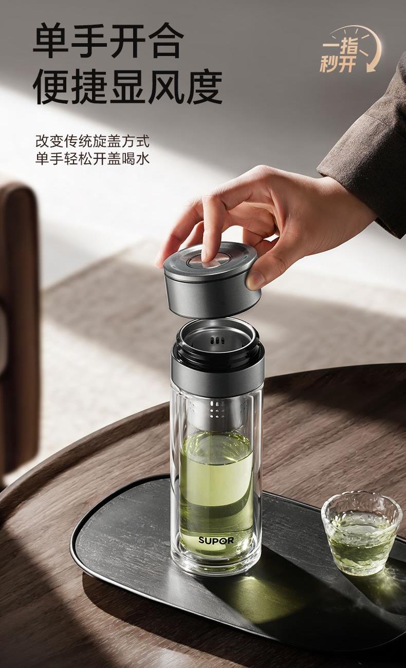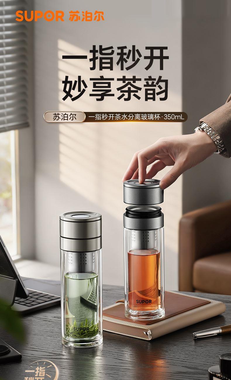 苏泊尔一指秒开茶水分离玻璃杯