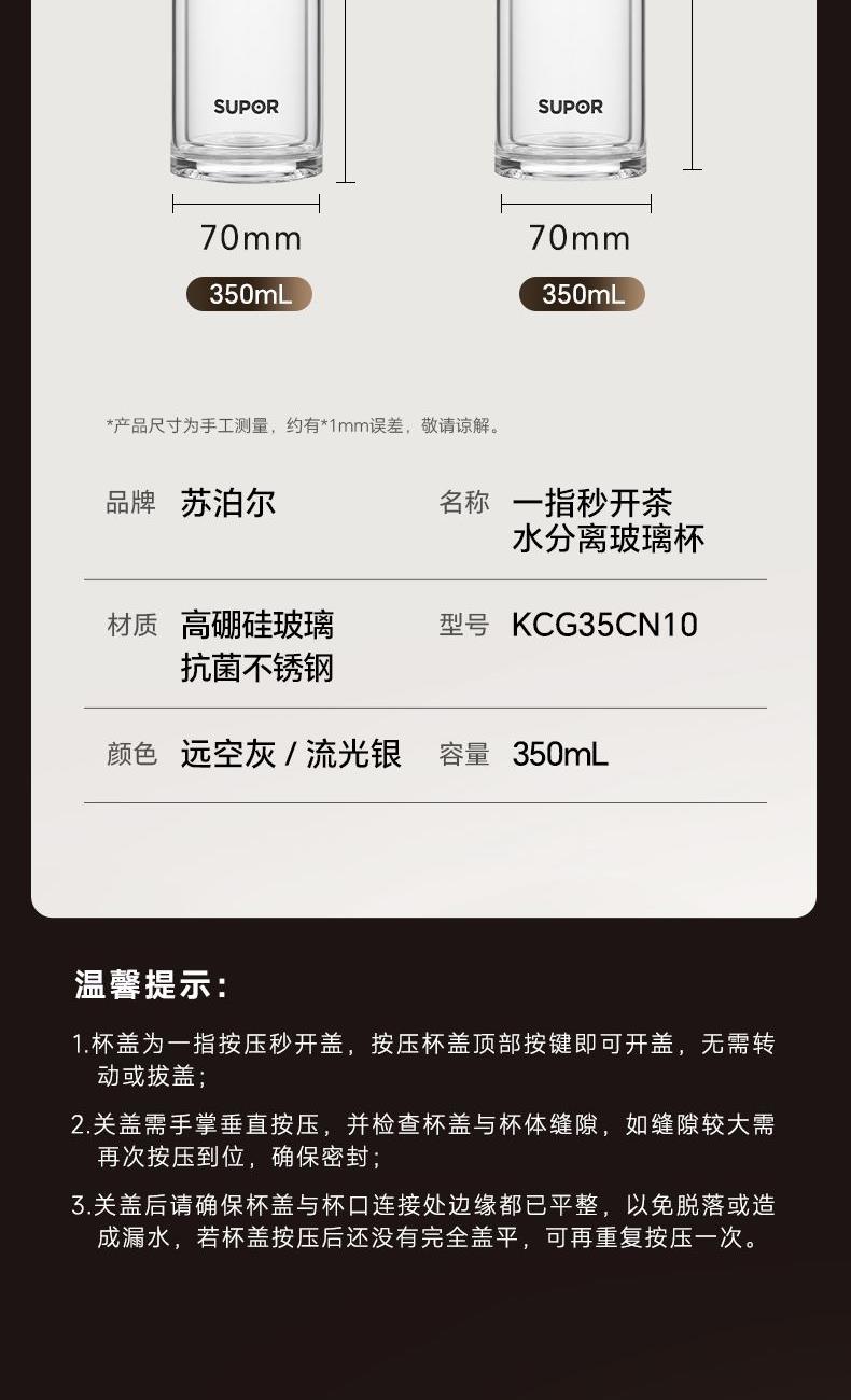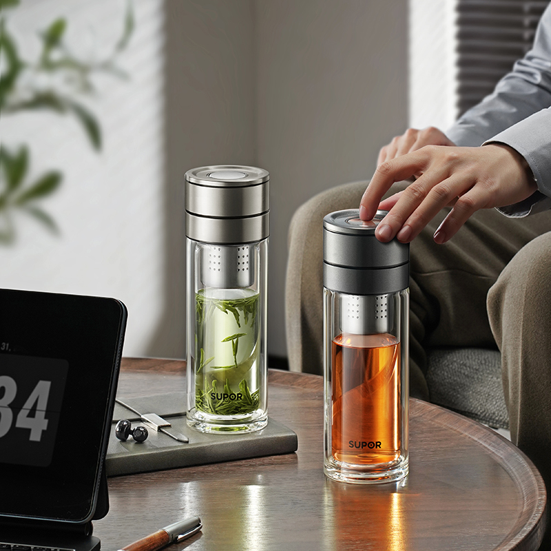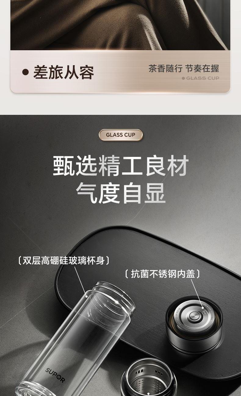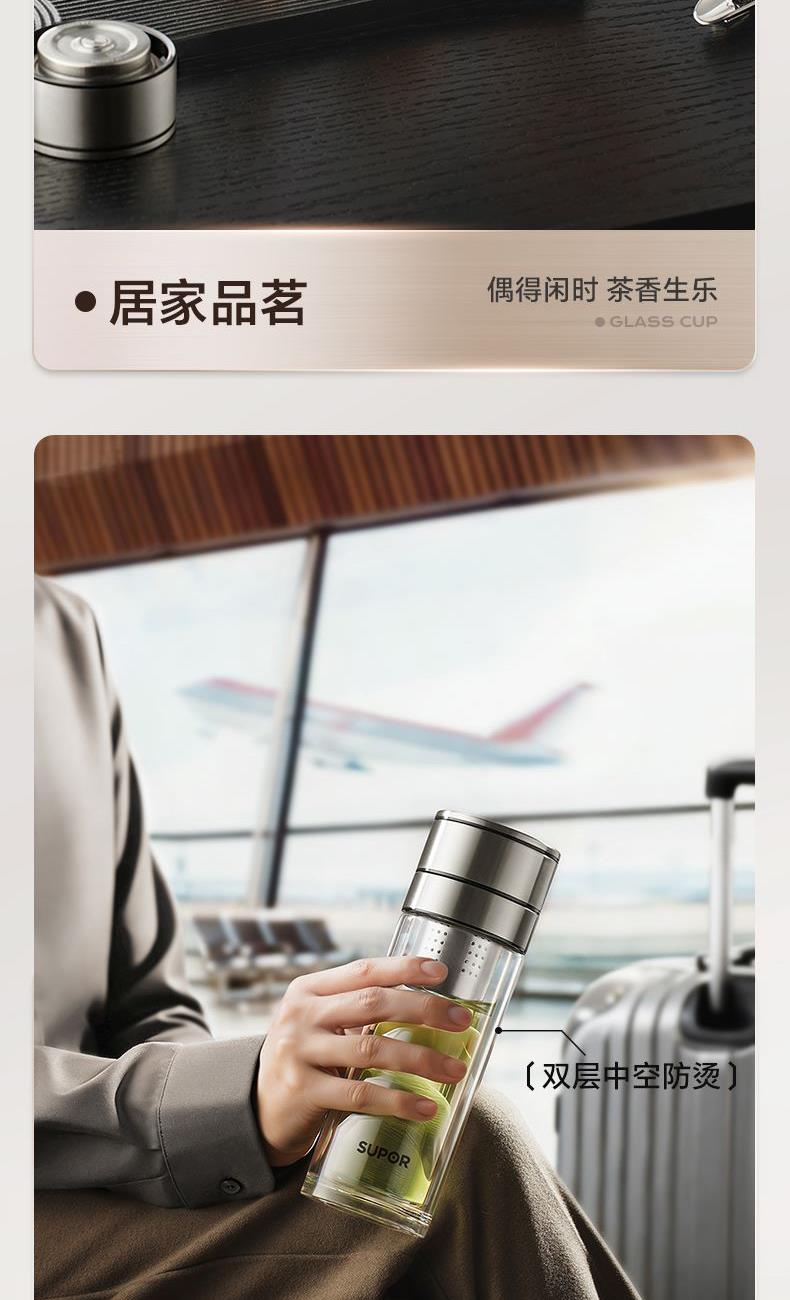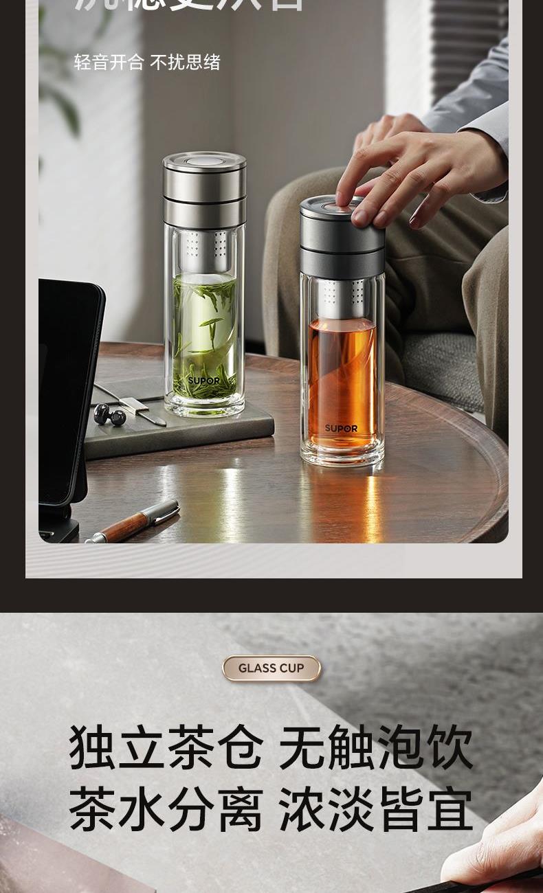 苏泊尔一指秒开茶水分离玻璃杯