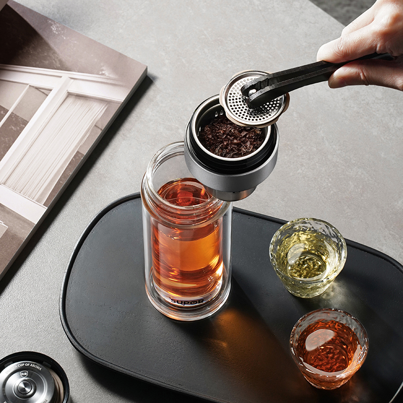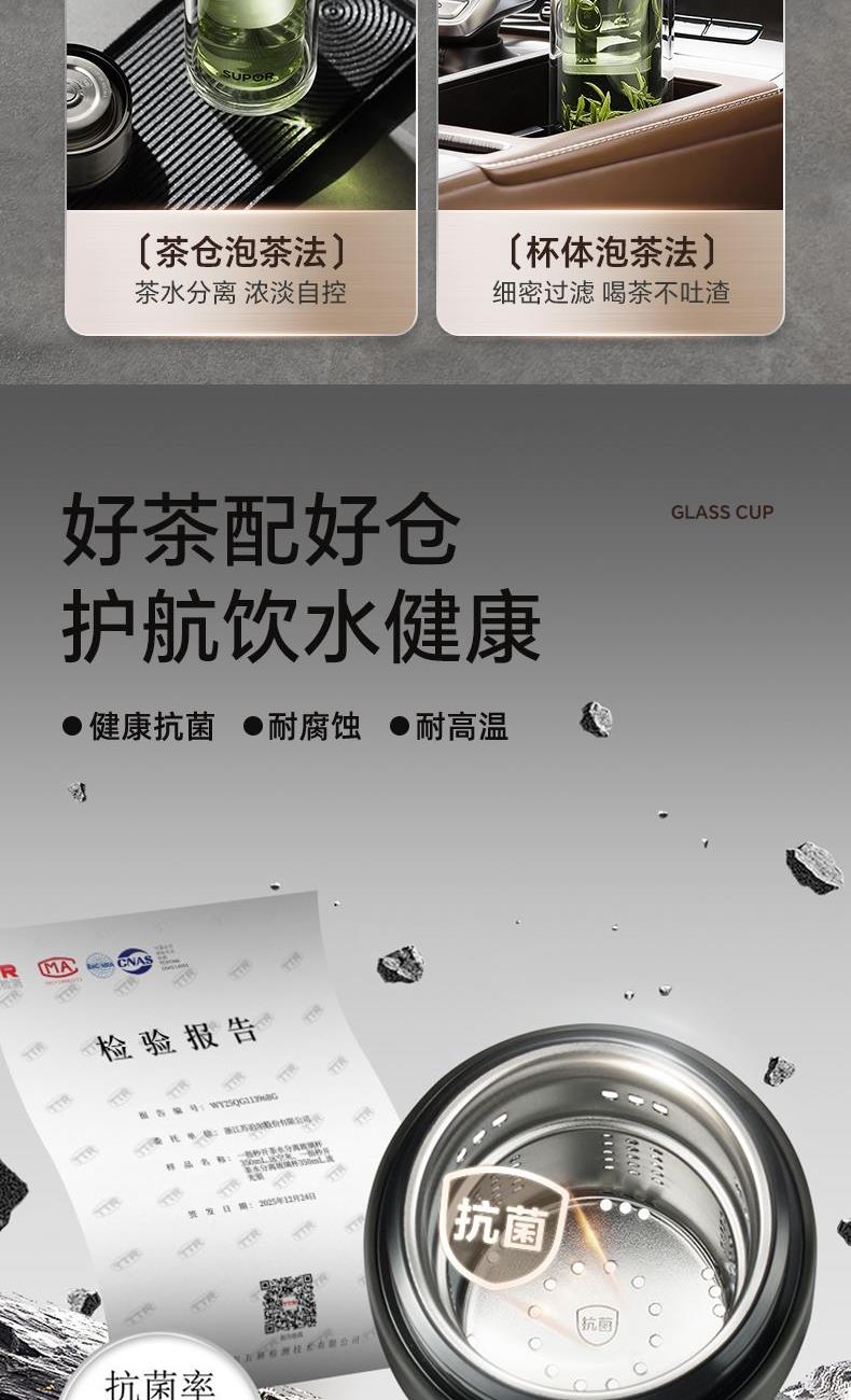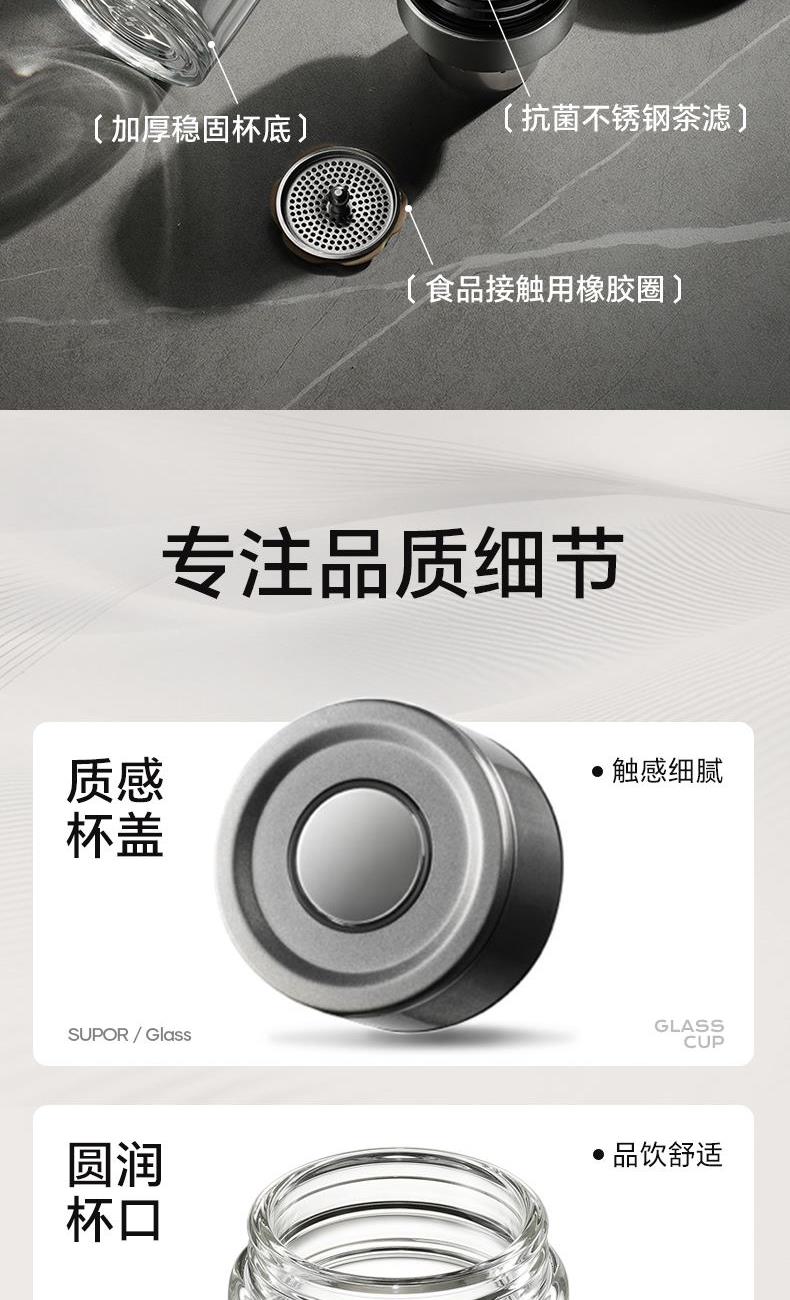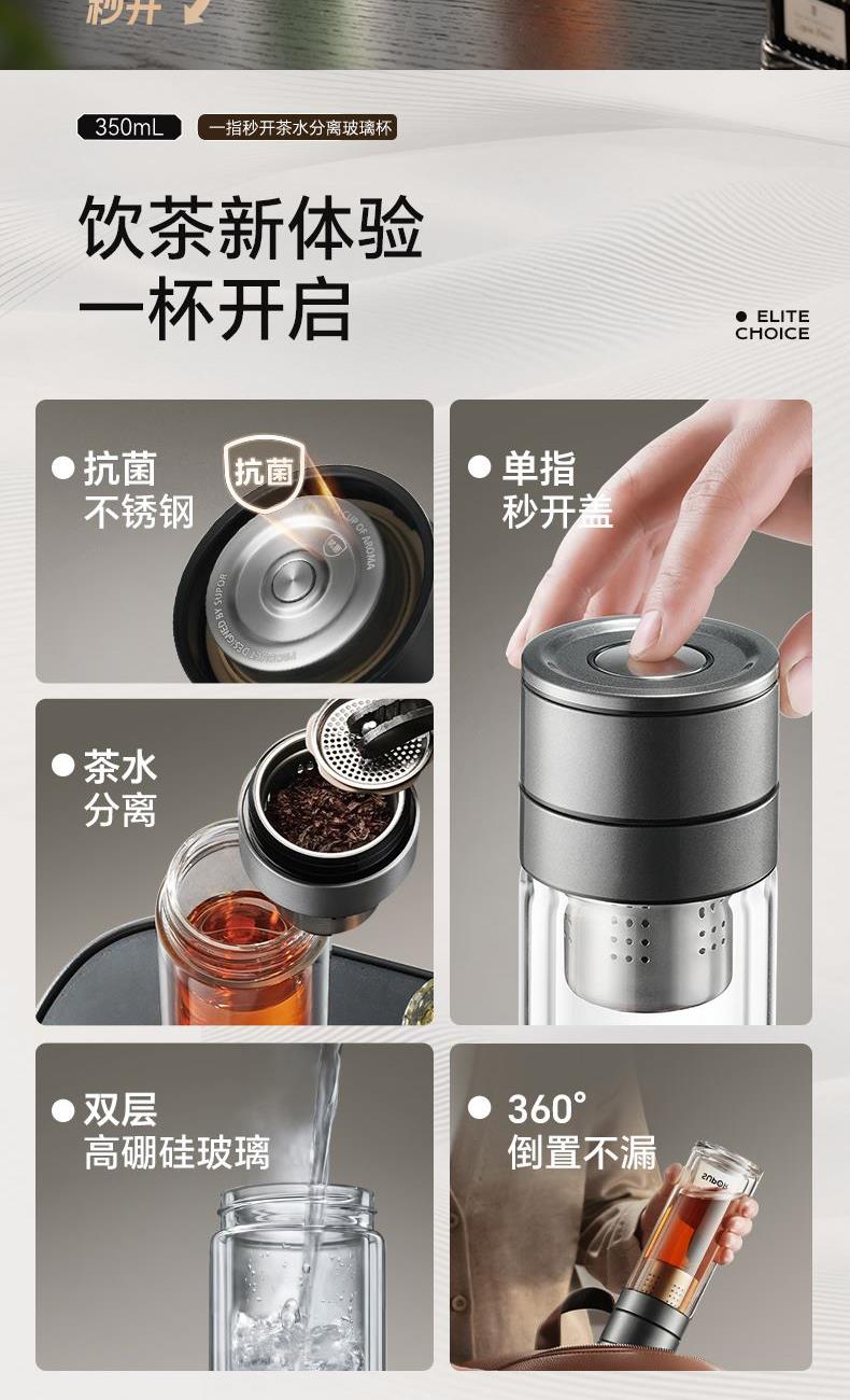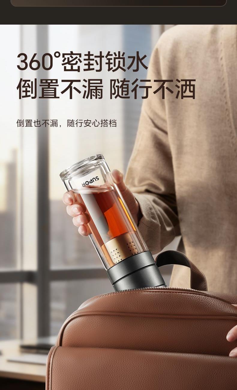 苏泊尔一指秒开茶水分离玻璃杯
