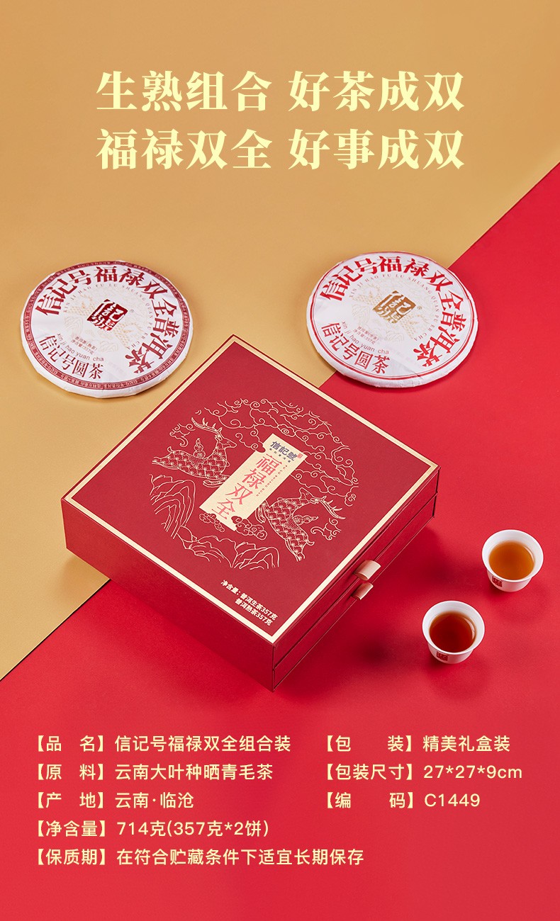 八马茶业信记号信记号福禄双全组合装357g*2饼