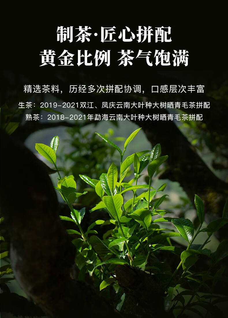编码:C1449 净含量:714g(357g*2饼) 保质期:在符合贮藏条件下适宜长期保存 包装尺寸:27*27*9cm 原 料:云南大叶种晒青毛 产 地:云南·临沧 产品卖点:
