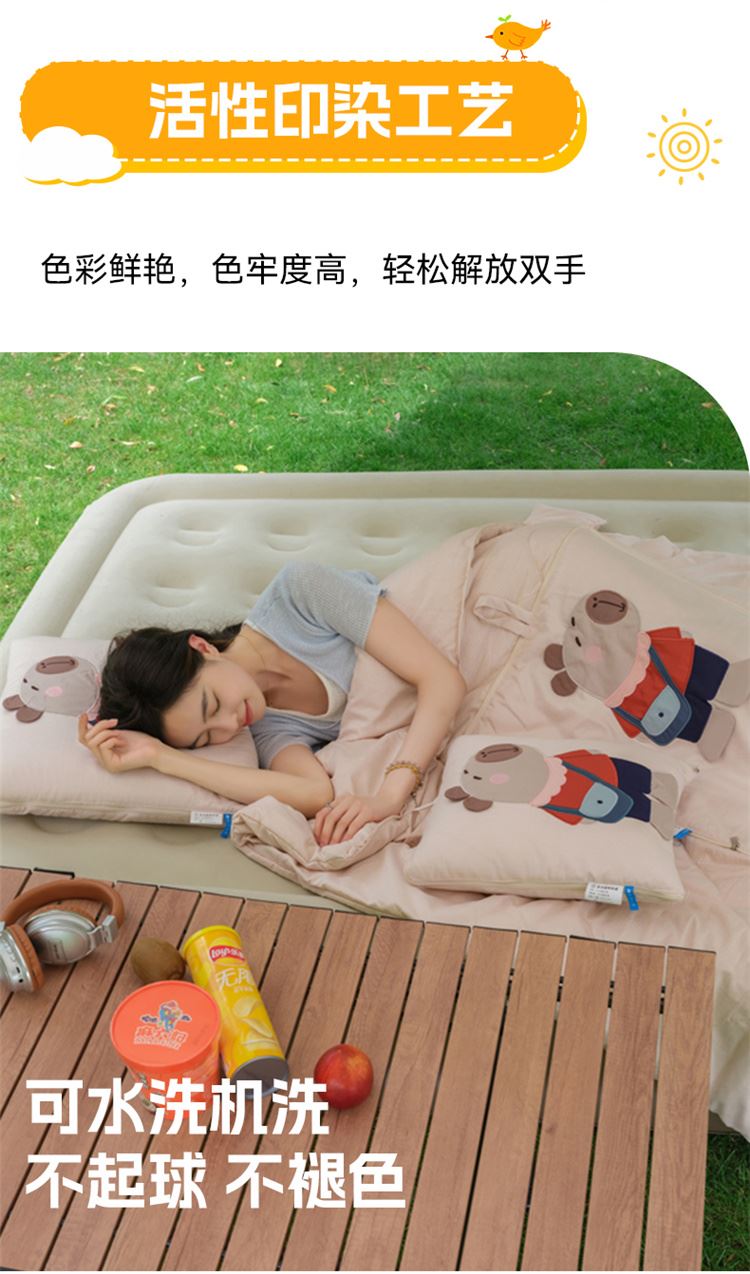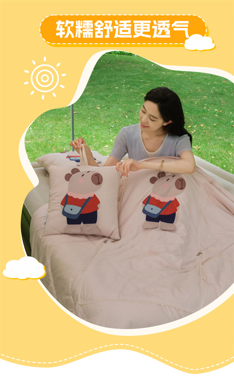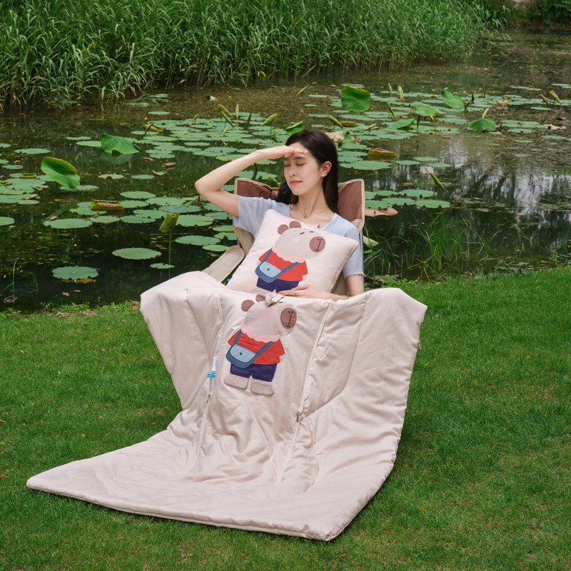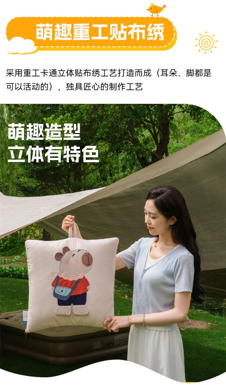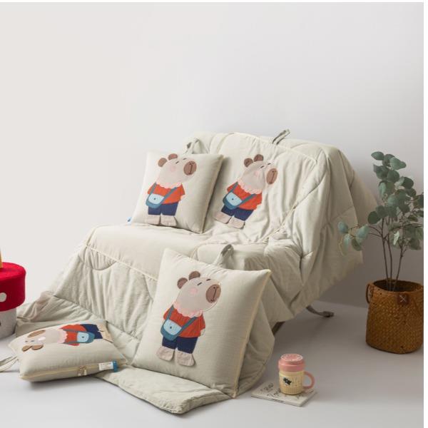 本品采用水洗糯糯棉面料,立体贴布绣设计给消费者带来不一样的感官体验,糯糯棉面料具有保暖舒适、蓬松透气、吸湿排汗、亲肤柔软舒适等特点! 面料:糯糯棉 工艺:立体贴布绣 规格:被子100*150cm 抱枕:40*40cm