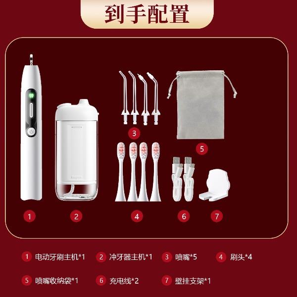 电动牙刷+冲牙器 口腔护理套装 产品型号:V1SE+O16 颜色:白色、粉色、黑色 配置:声波电动牙刷*1、便携式冲牙器*1 原装牙刷头*4、冲牙器喷嘴*4 刷头水晶盒*2、充电线*2 牙刷壁挂*1、礼品袋*1 支持logo定制 现货批发