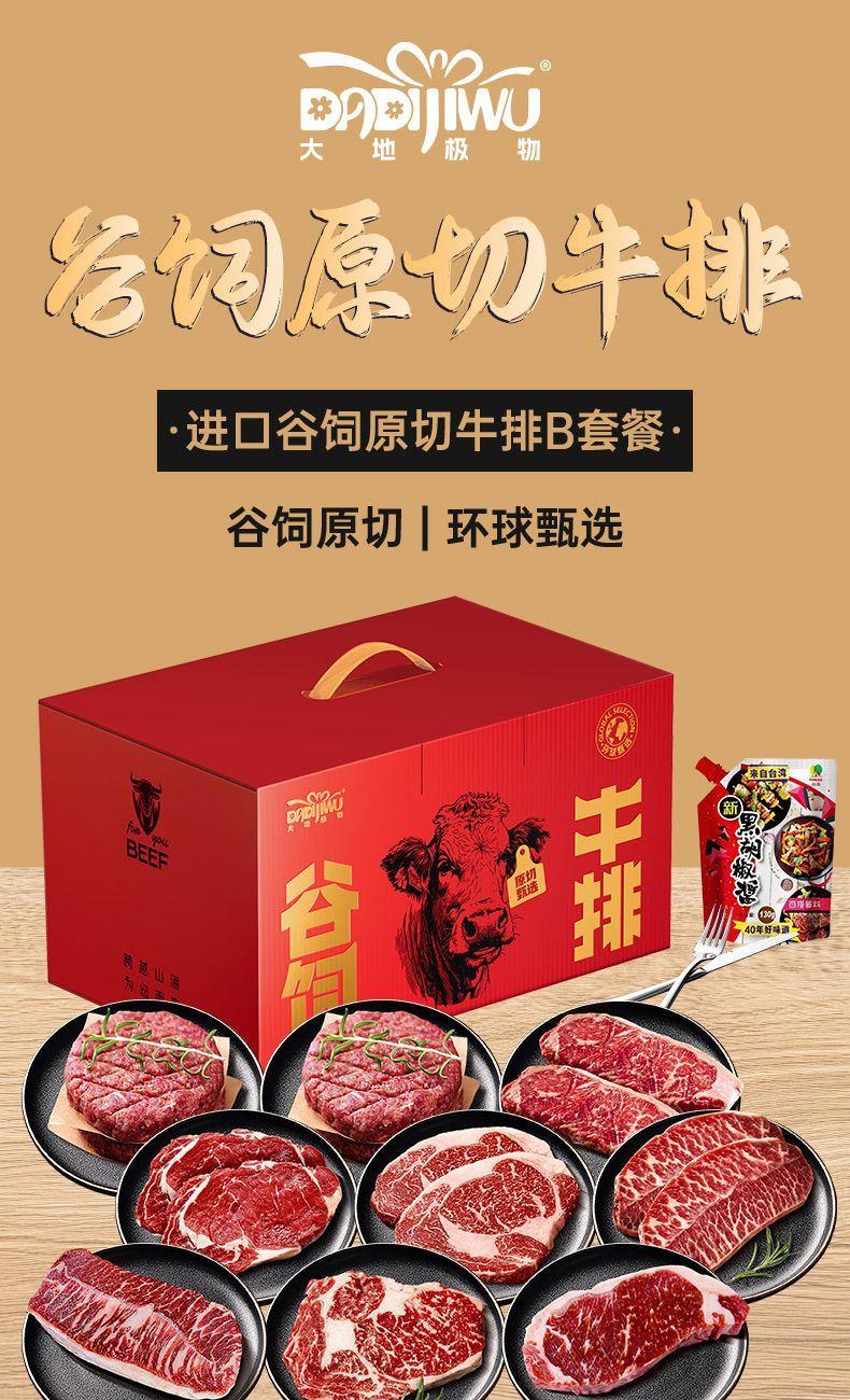「大地极物甄选」进口谷饲原切牛排798型B套餐