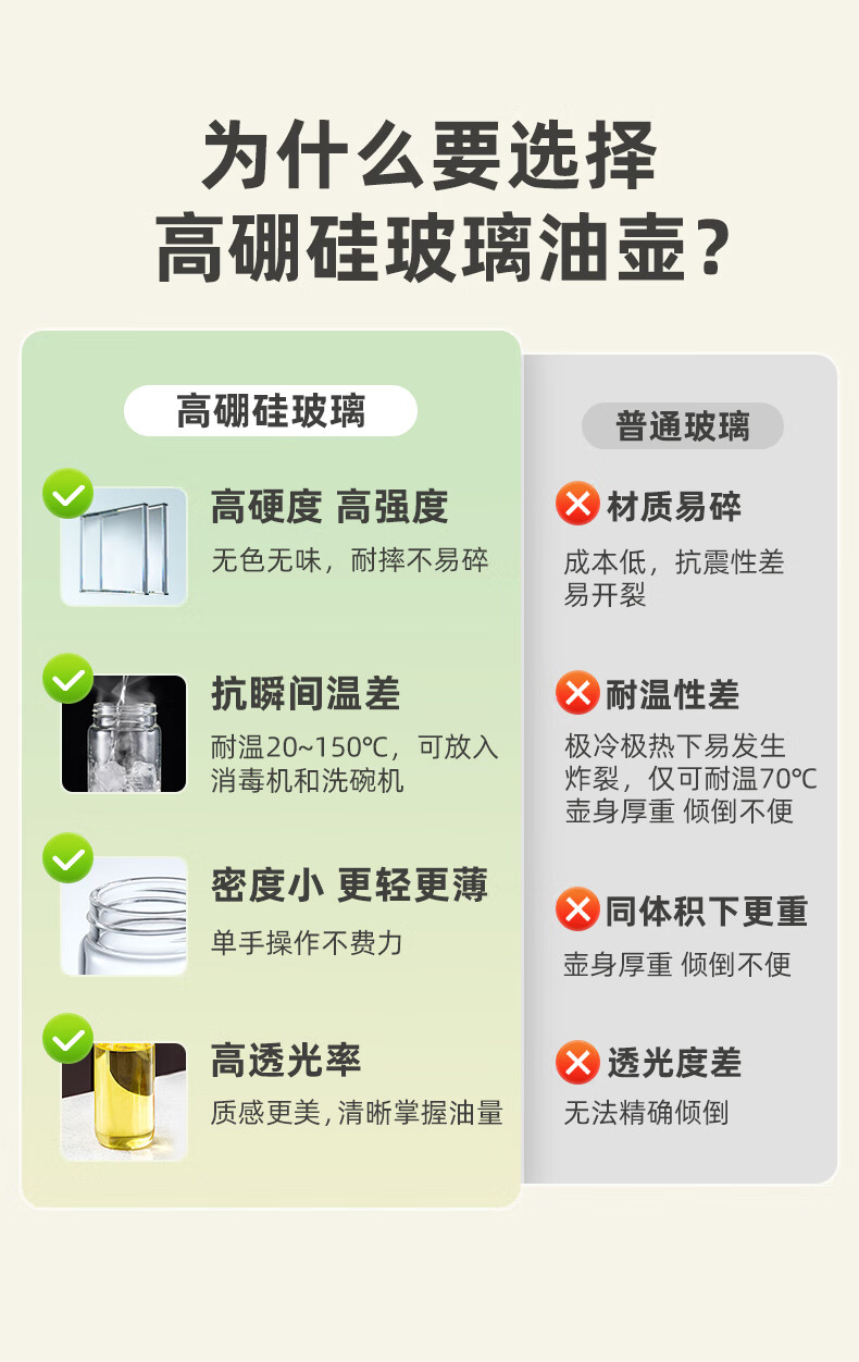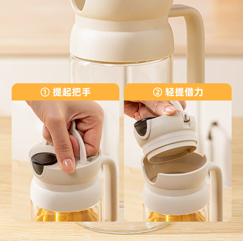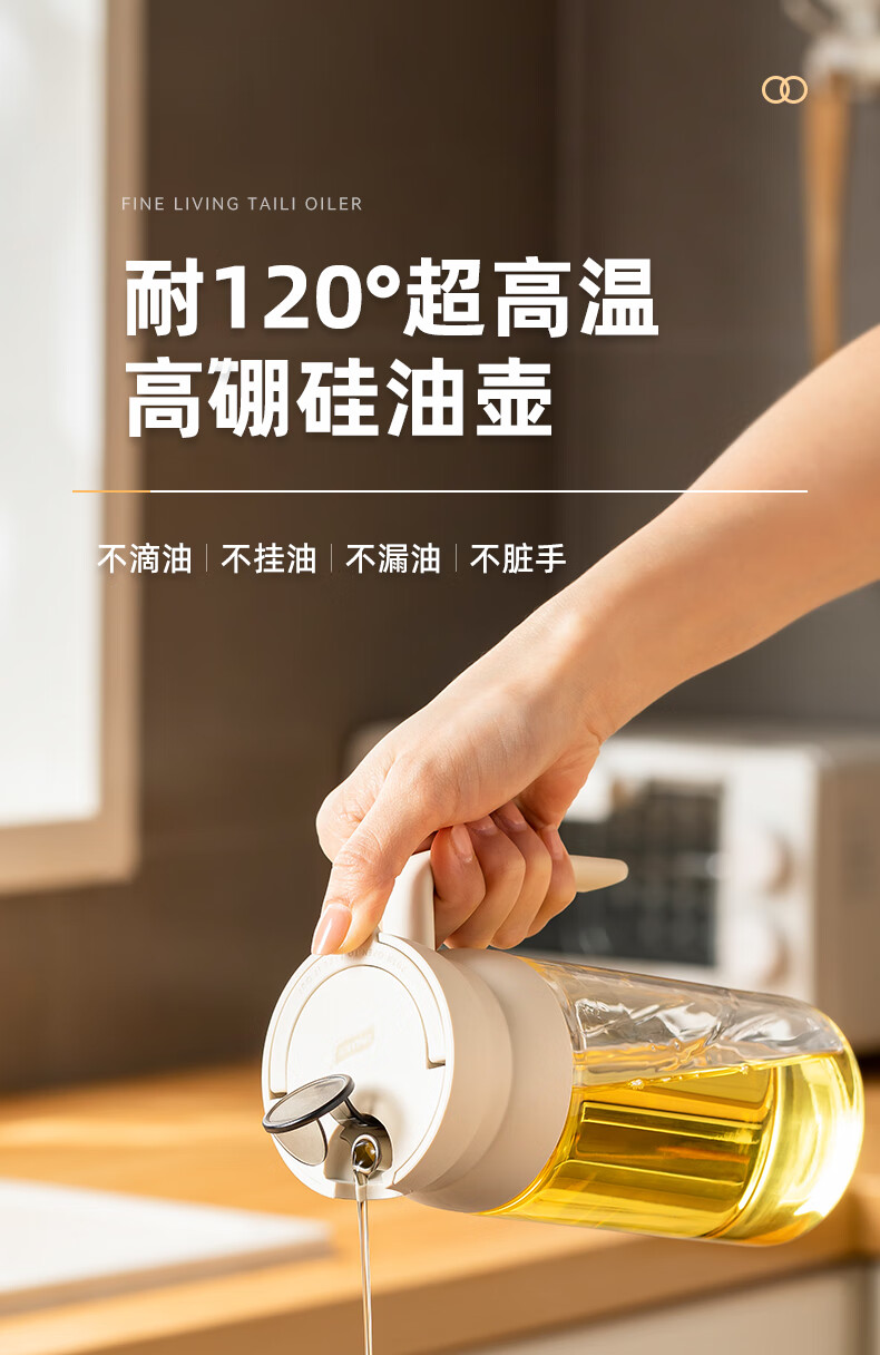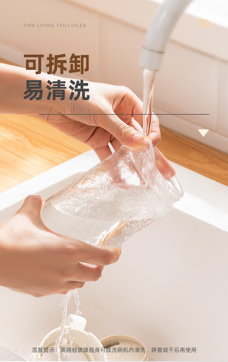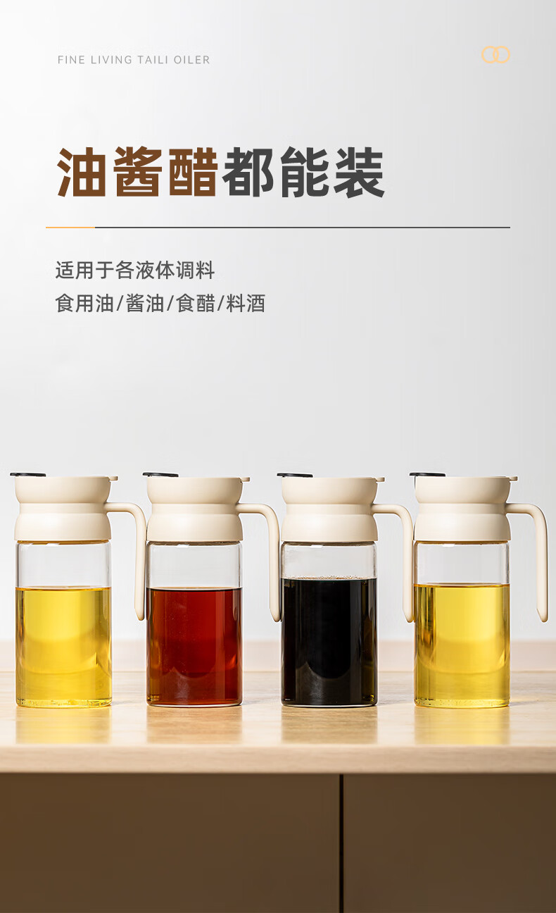 产品尺寸:11.5*8*19cm(1个装) 容量:550ml 材质:PP,ABS,硅胶,高硼硅玻璃 包装清单:高硼硅自动开合油壶550ml*1个 图案:透明 功能:自动出油,自动回油 产品描述:550ml大容量,可拆卸易清洗,高硬度高强度高透光率