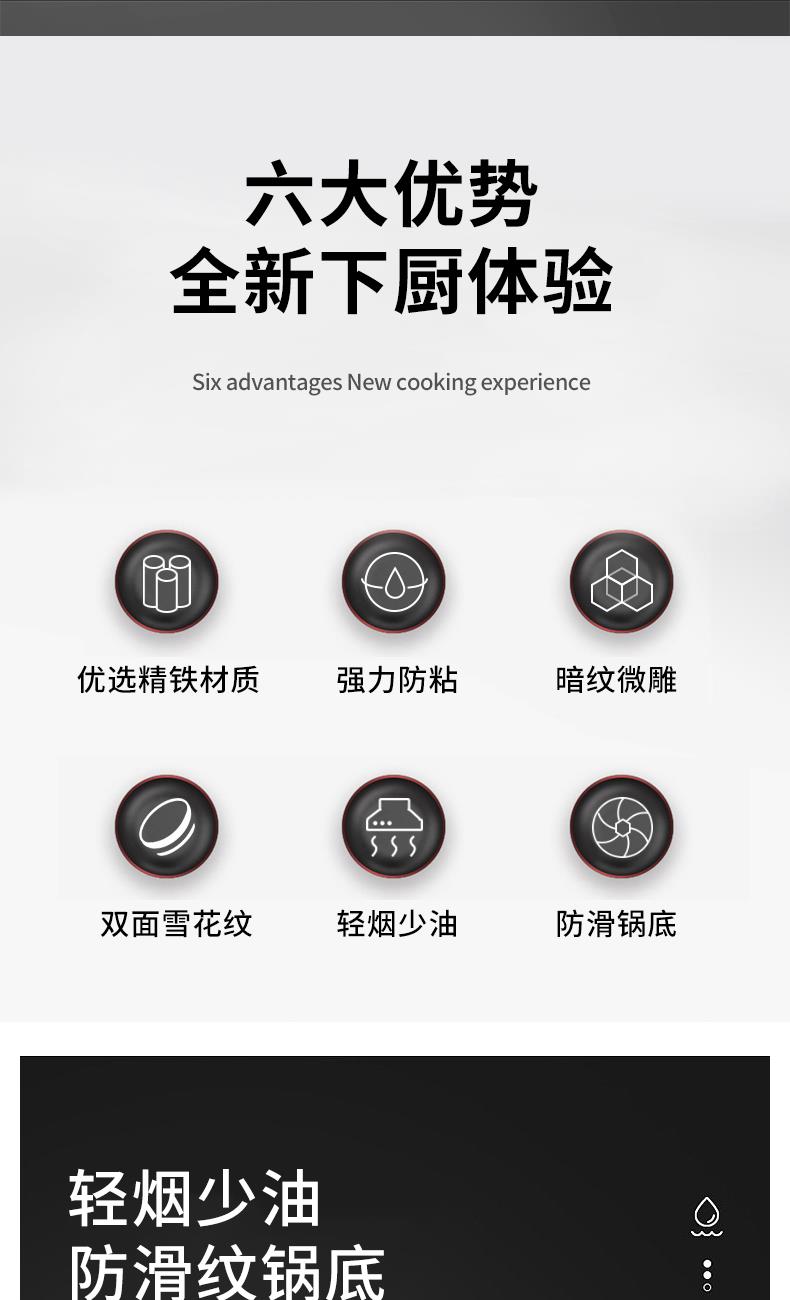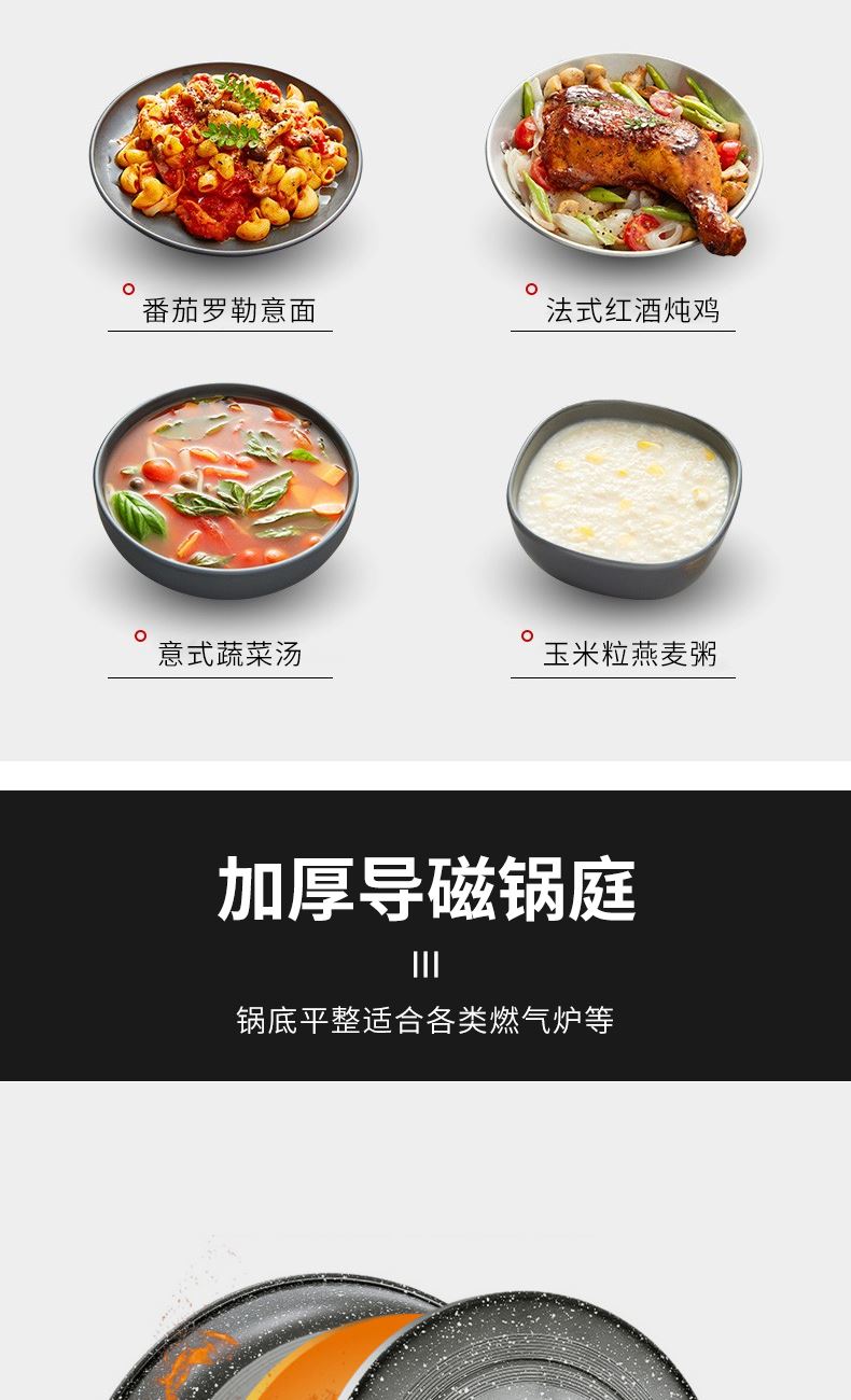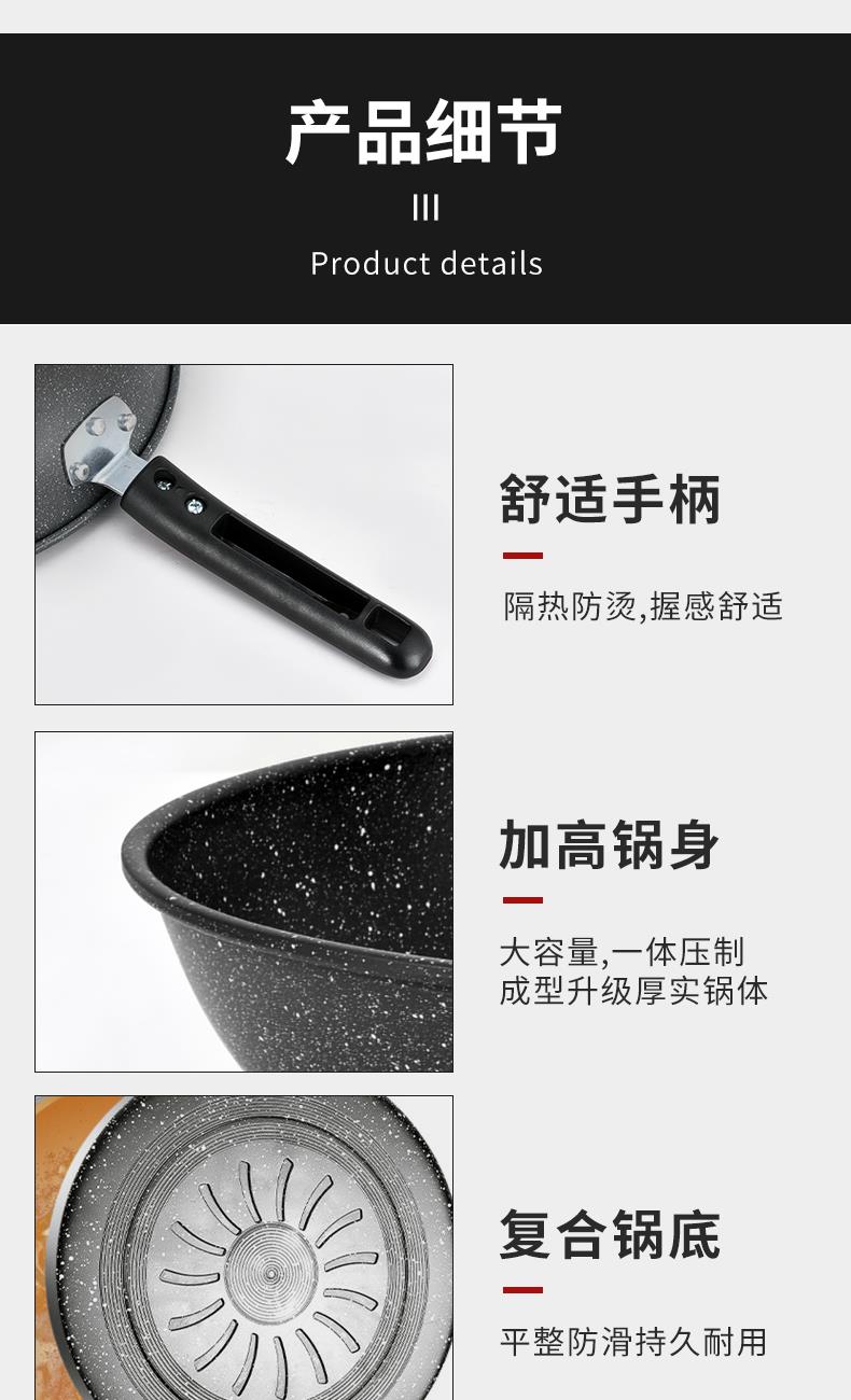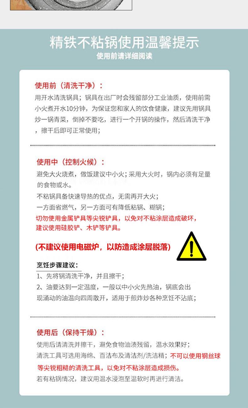 规 格:30cm炒锅+22cm煎锅+18cm奶锅 材 质 :精铁+麦饭石不粘涂层 产品为精铁麦饭石高温熔喷工艺,具有超不沾效果而且少油烟。炒锅30公分大口径加厚锅身防滑锅底配防烫隔热胶木手柄;煎锅为22公分大底煎炒锅多用锅同时可以煎牛排等更多功能,锅身配防烫胶木手柄。奶锅为18公分加深加厚标准口径多用麦饭石不粘奶锅,配可视防爆浮法加厚玻璃及飞燕式防烫盖珠。三套锅适用所有炉具。