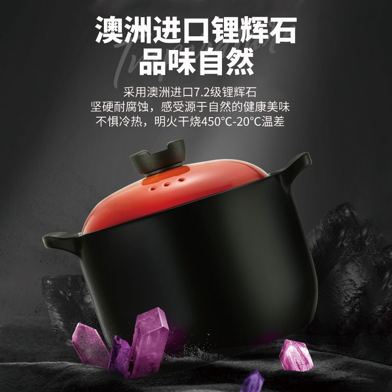 产品货号:RXC60B3Q 产品颜色:焰橙 产品规格:6.0L 外箱尺寸:660*485*350mm 彩盒尺寸:322*235*327mm 1、进口锂辉石满满矿元素 2、渐变锅盖立体美感 3、高温烧制干烧不裂 4、球形锅身节能储热 5、陶瓷釉面不粘易洁 6、上翘双耳端拿不烫手