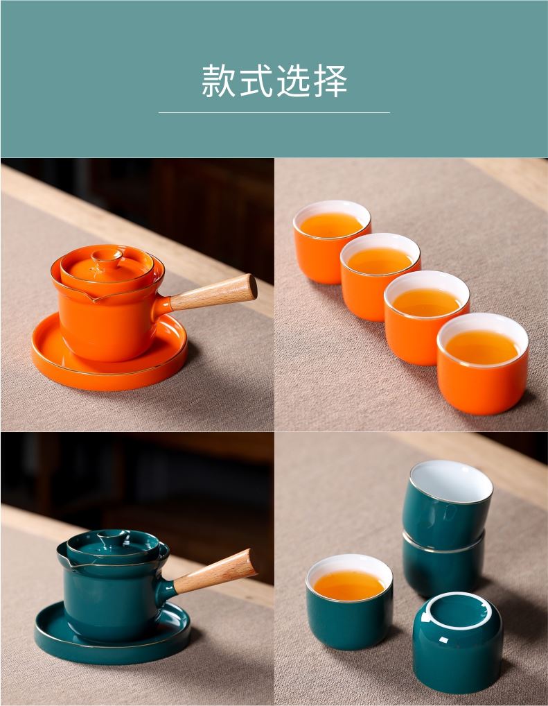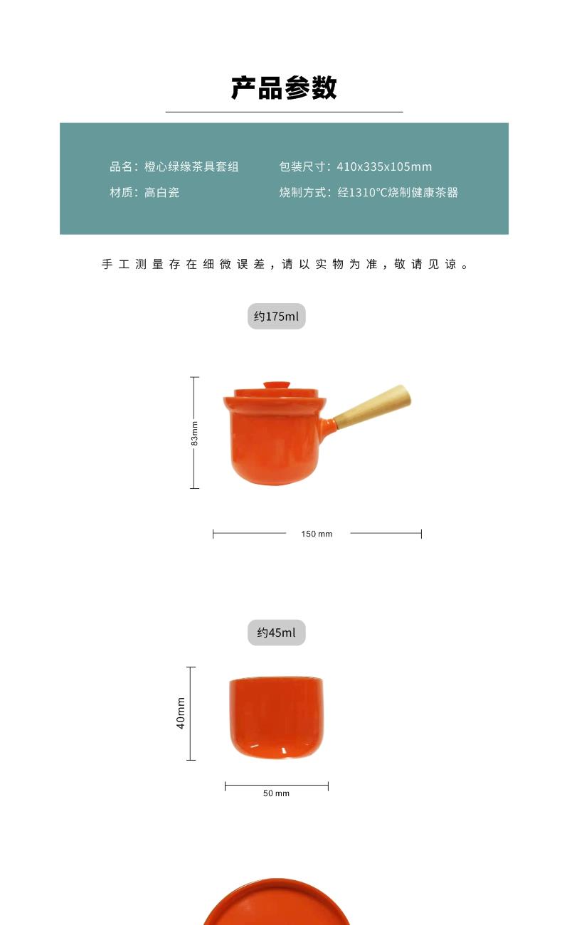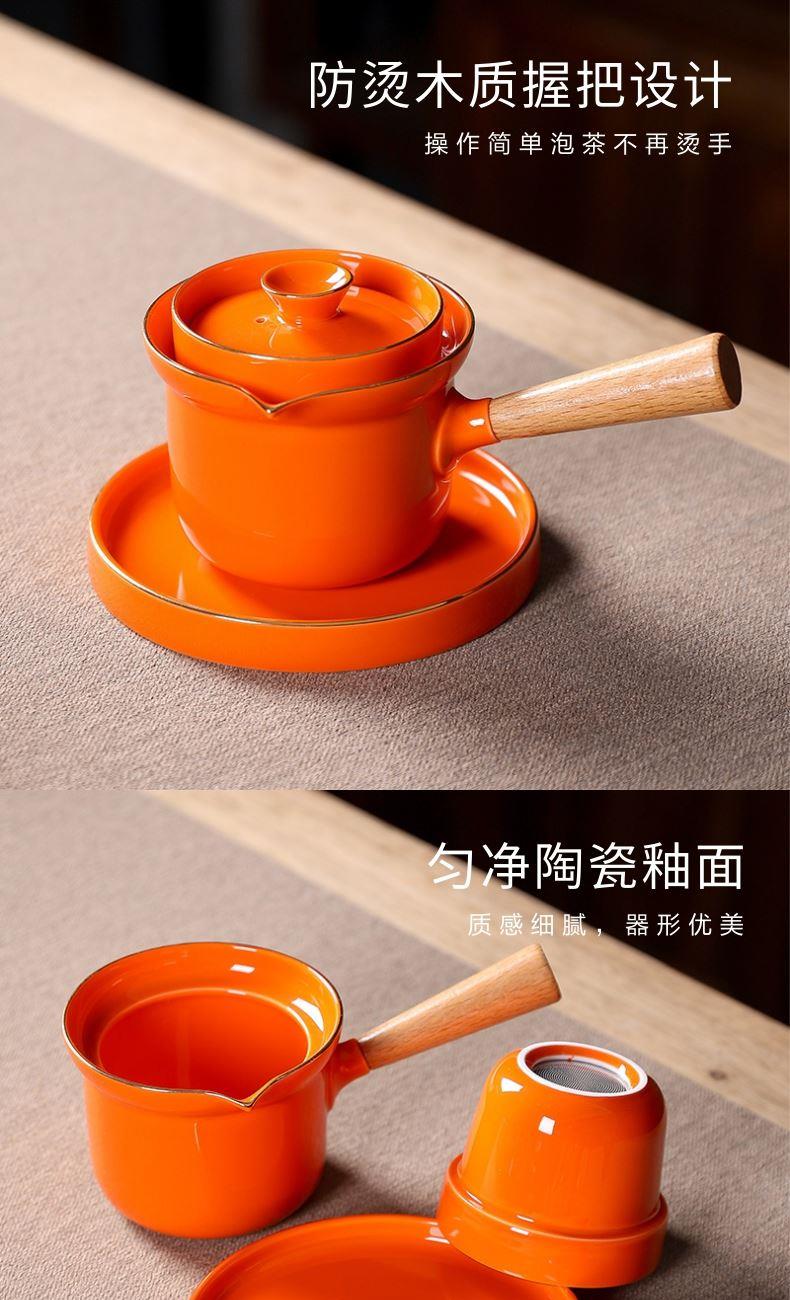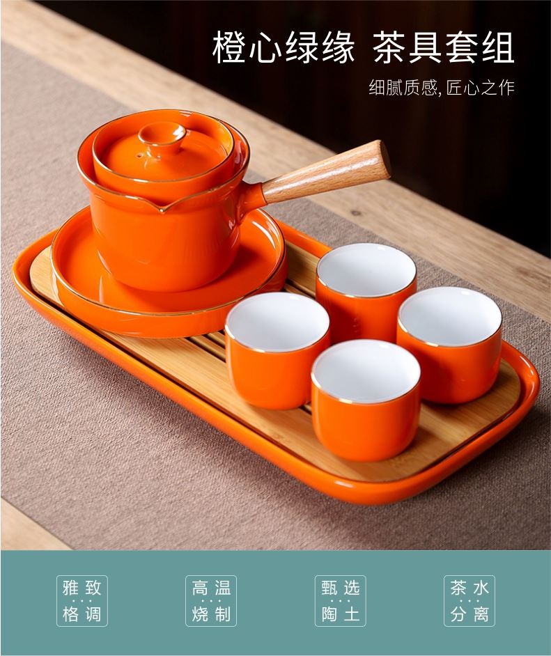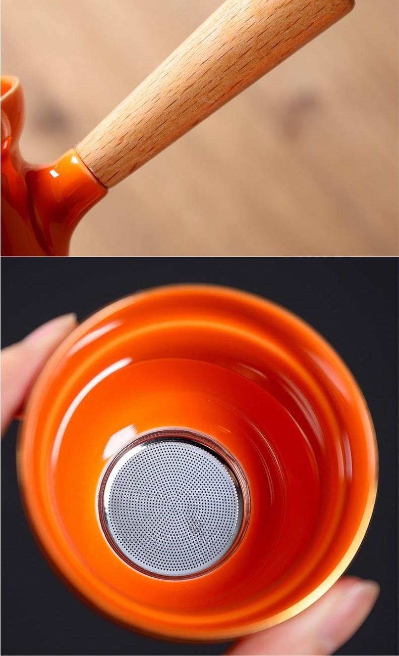 五拾缘-橙心绿缘侧把壶-WSY-20A08